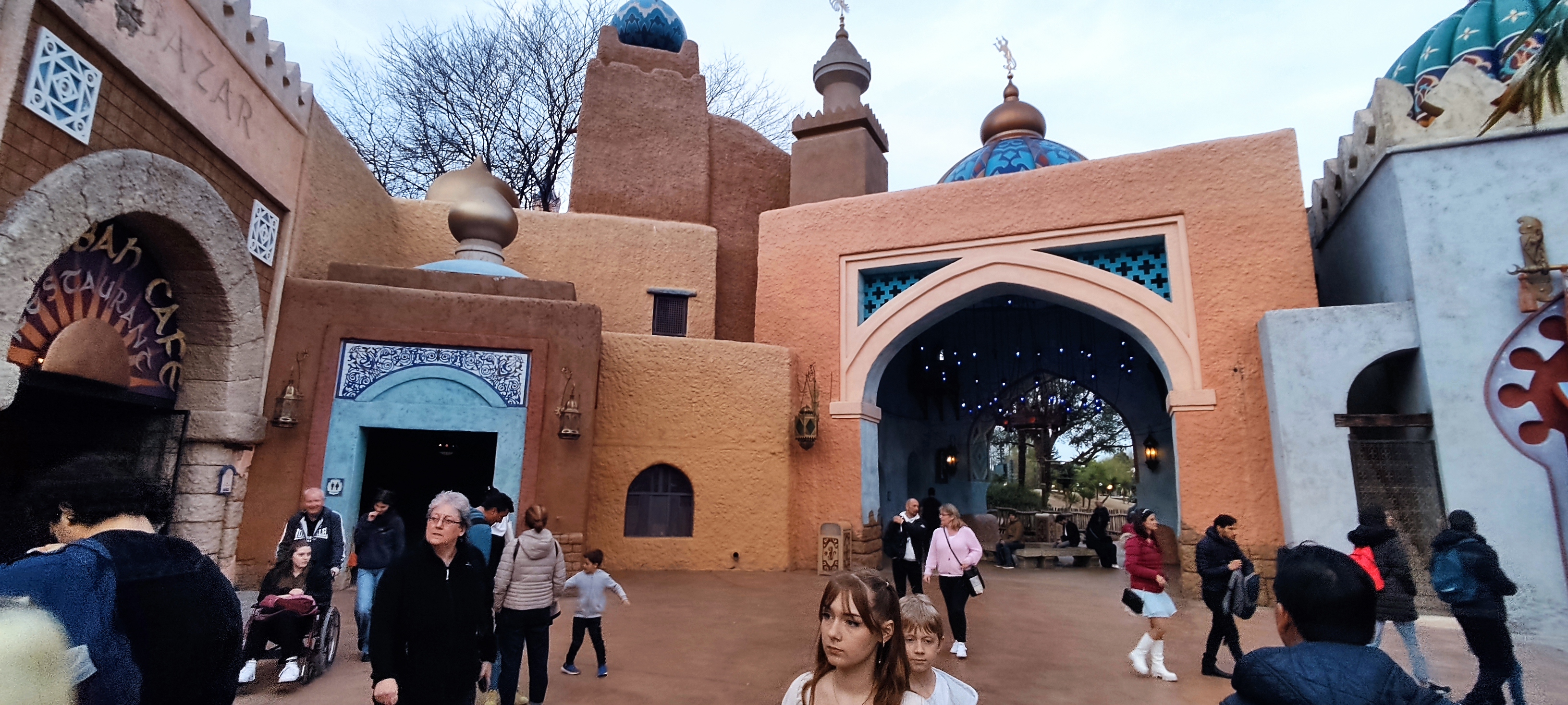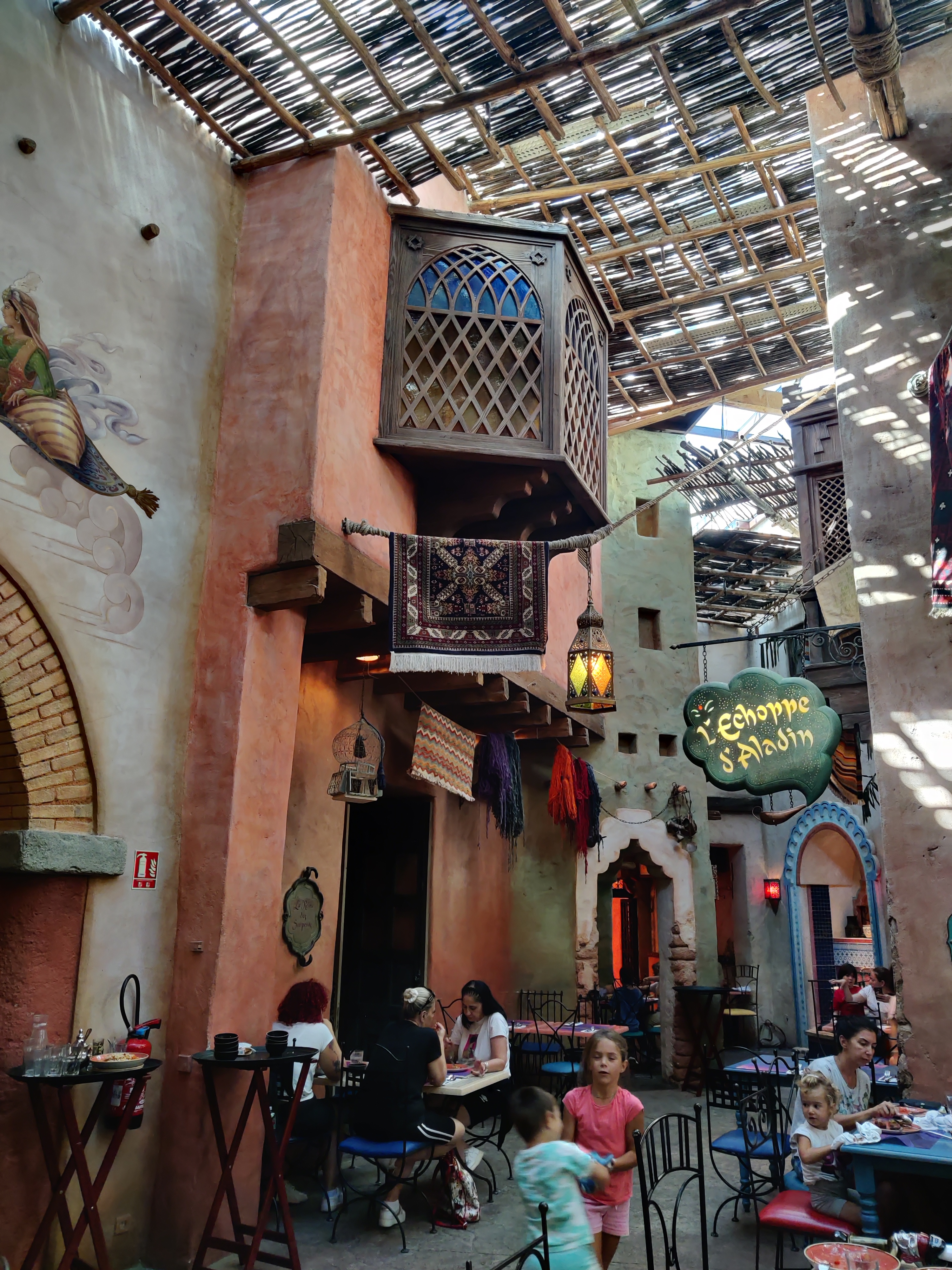 Nous avons pu ce midi nous restaurer et profiter du décor au sein de l'Agrabah café. Ce restaurant propose une entrée à partager, ensuite le choix vous est donné entre 3 plats, j'ai pris le couscous royal qui est vraiment copieux. Je pose un bémol sur le dessert qui est spécial avec un assortiment de pâtisseries orientales ou de l'orange à la cannelle.