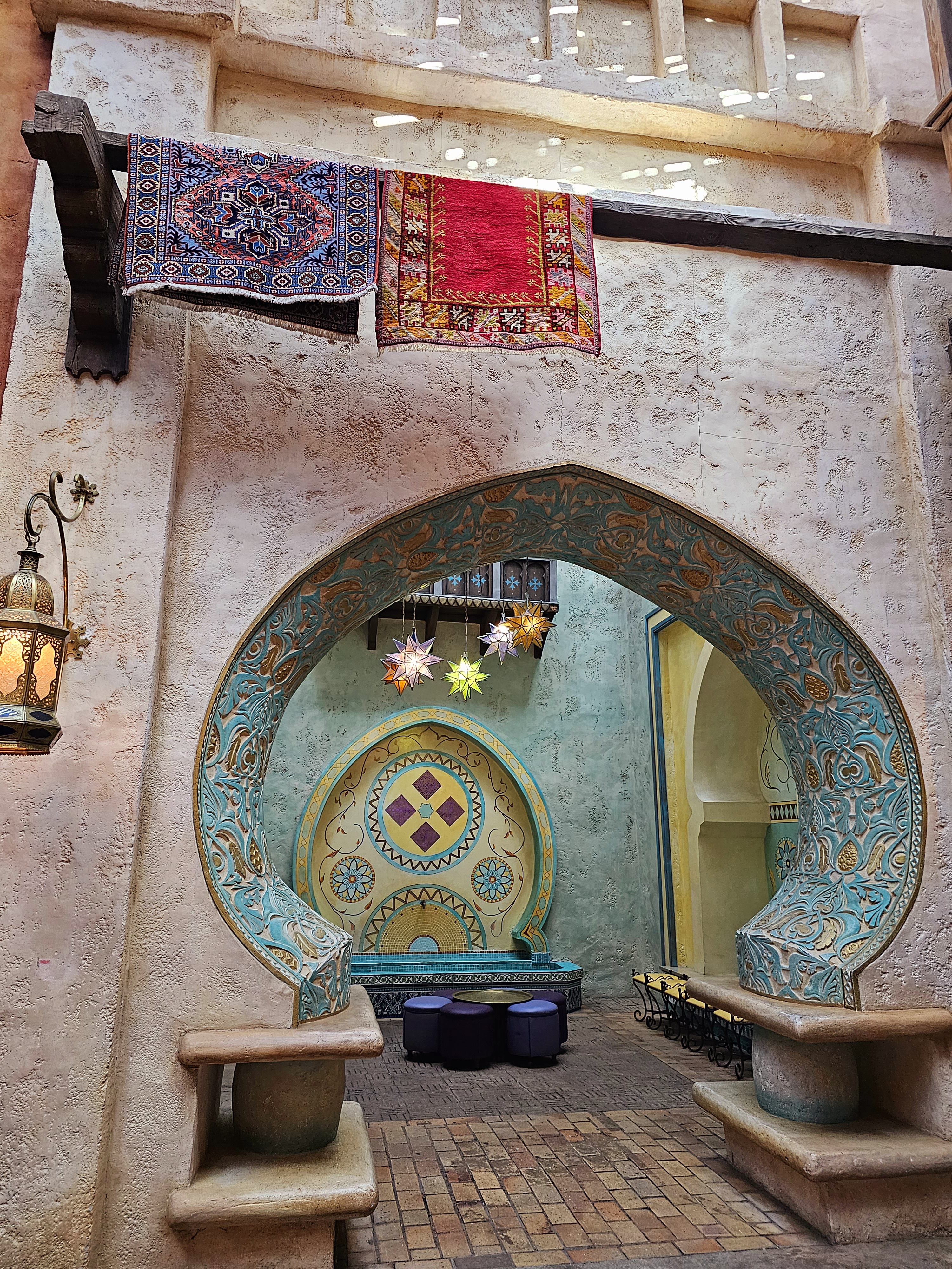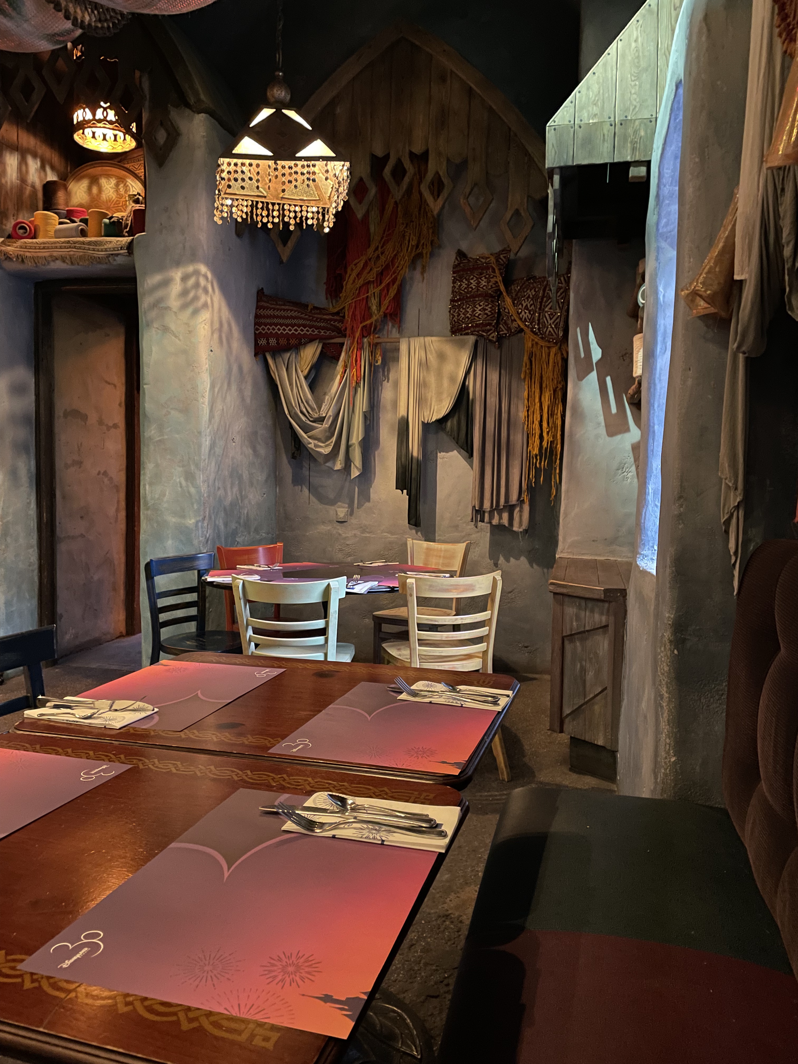 Pour moi le meilleur restaurant de Disney et le plus intéressant niveau qualité / quantité / prix (à volonté). A l'intérieur... et dès l'entrée, nous sommes immédiatement transportés en orient (thème principal des mets). Magique !