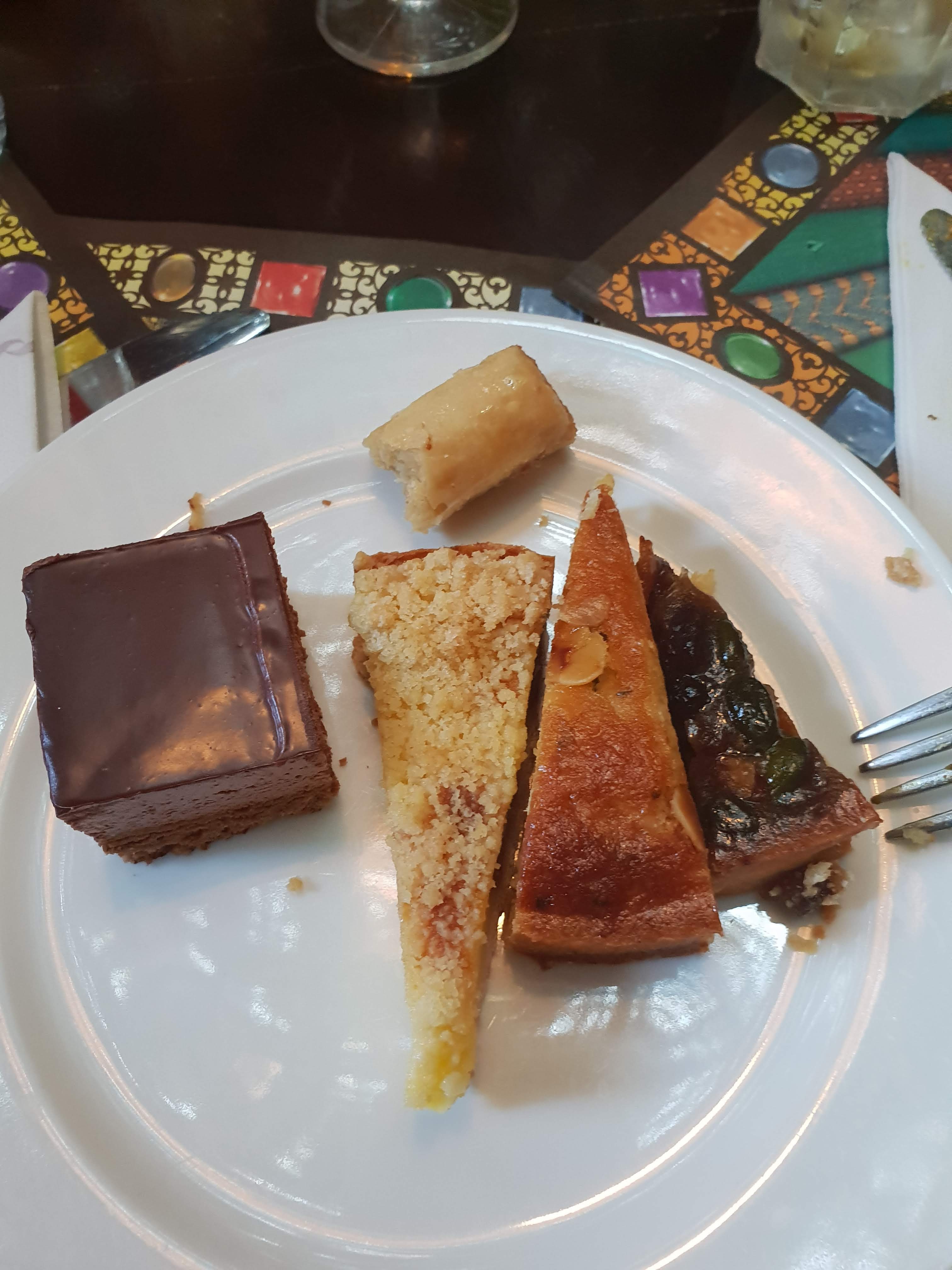 Très bonne ambiance . Le personnel est top! Pas mal de choix au niveau du buffet à volonté dans un sublime décor ( taboulé , samoussas, pain , agneau confit, tajine, boulettes de viande et vegé, pâtes , pomme de terre , couscous ,salade de fruit , fromage , cupcake , entremets , tarte etc ). Le taboulé libanais était plus qu'excellent. Seul bémol : peu de choix au niveau du buffet enfants pours les petits difficiles...