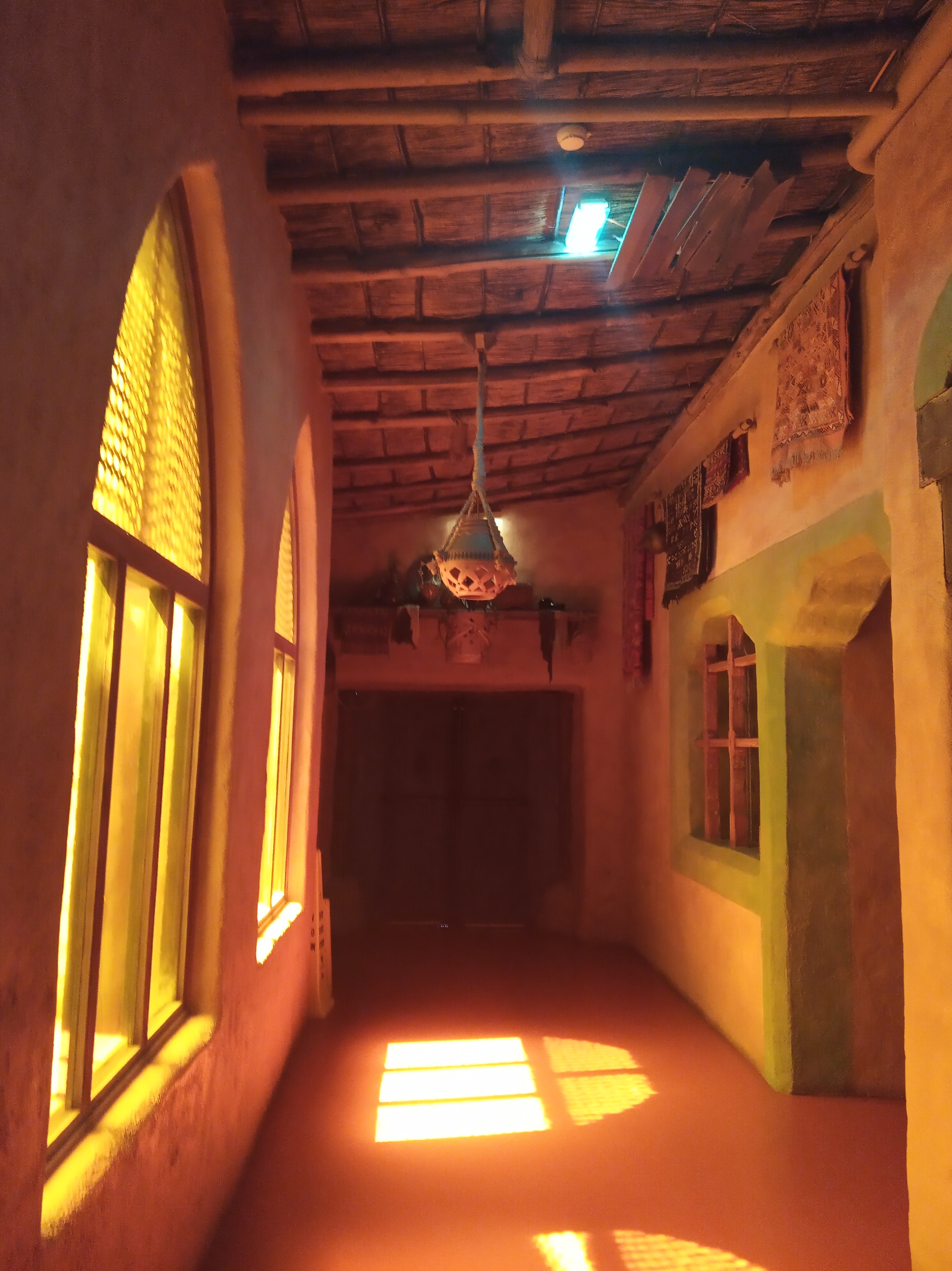 Salle de restaurant très sombre, on distingait à peine nos plats. Un homme était mele aidé par son epouse pour regagner sa place. Le buffet n'était pas du tout achalandé, il y avait à peine le 1/3 de ce qui était annoncé sur l'application. Le couscous supposé royal ne l'était pas. La déco que l'on pouvait distinguer à travers la lumière extra tamisée était jolie. Le seul restaurant à thématique orientale n'entendait pas la route.