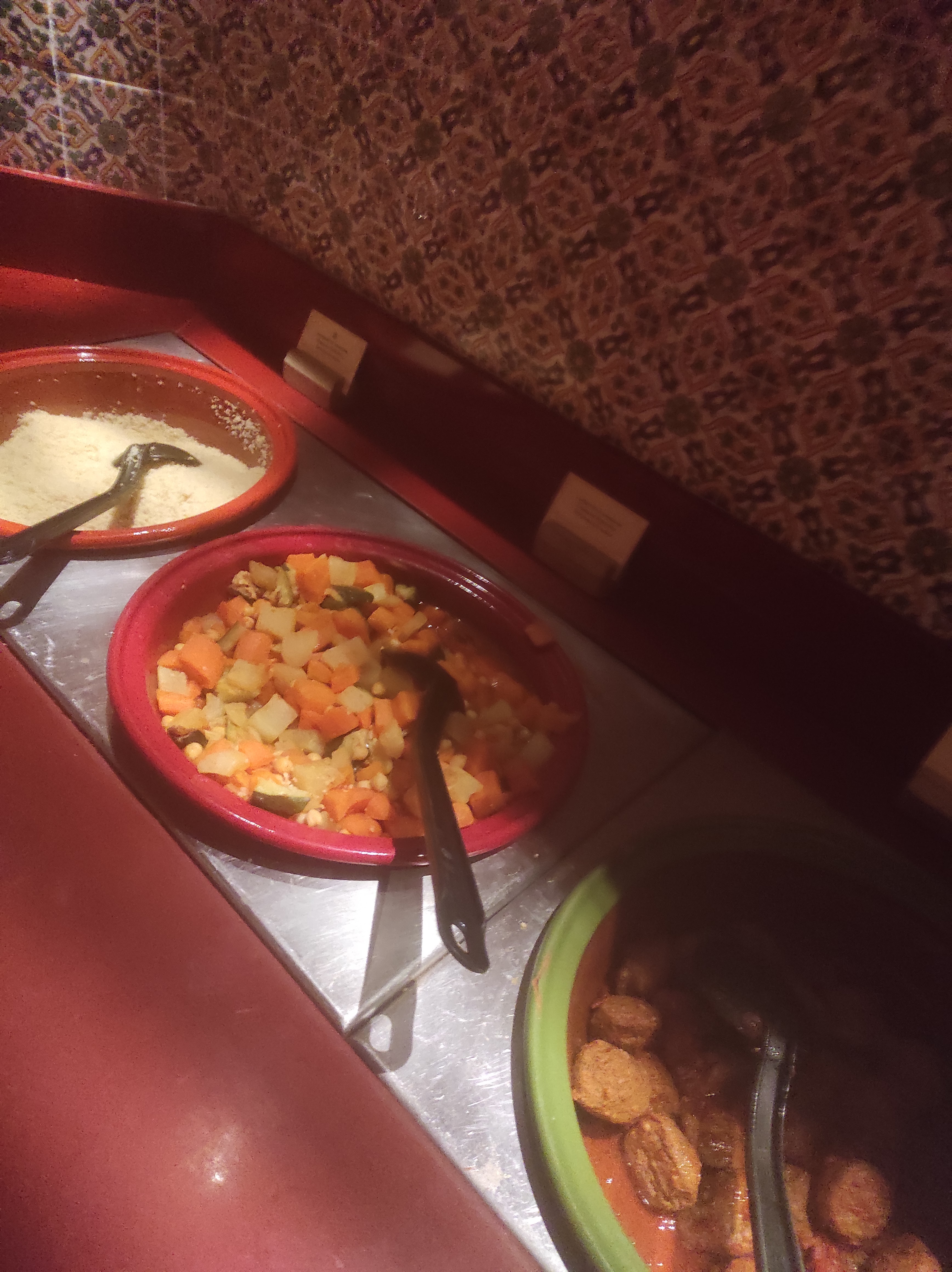 L'un de nos restaurants préférés sur le parc Disney. Nous y sommes allés en période covid avec service à table et c'était déjà pas mal mais maintenant que le buffet à volonté est revenu, c'est à tomber. Il y a vraiment beaucoup de choix et c'est appréciable de pouvoir composé notre couscous comme nous le souhaitons vu que chaque ingrédient est à part des autres.