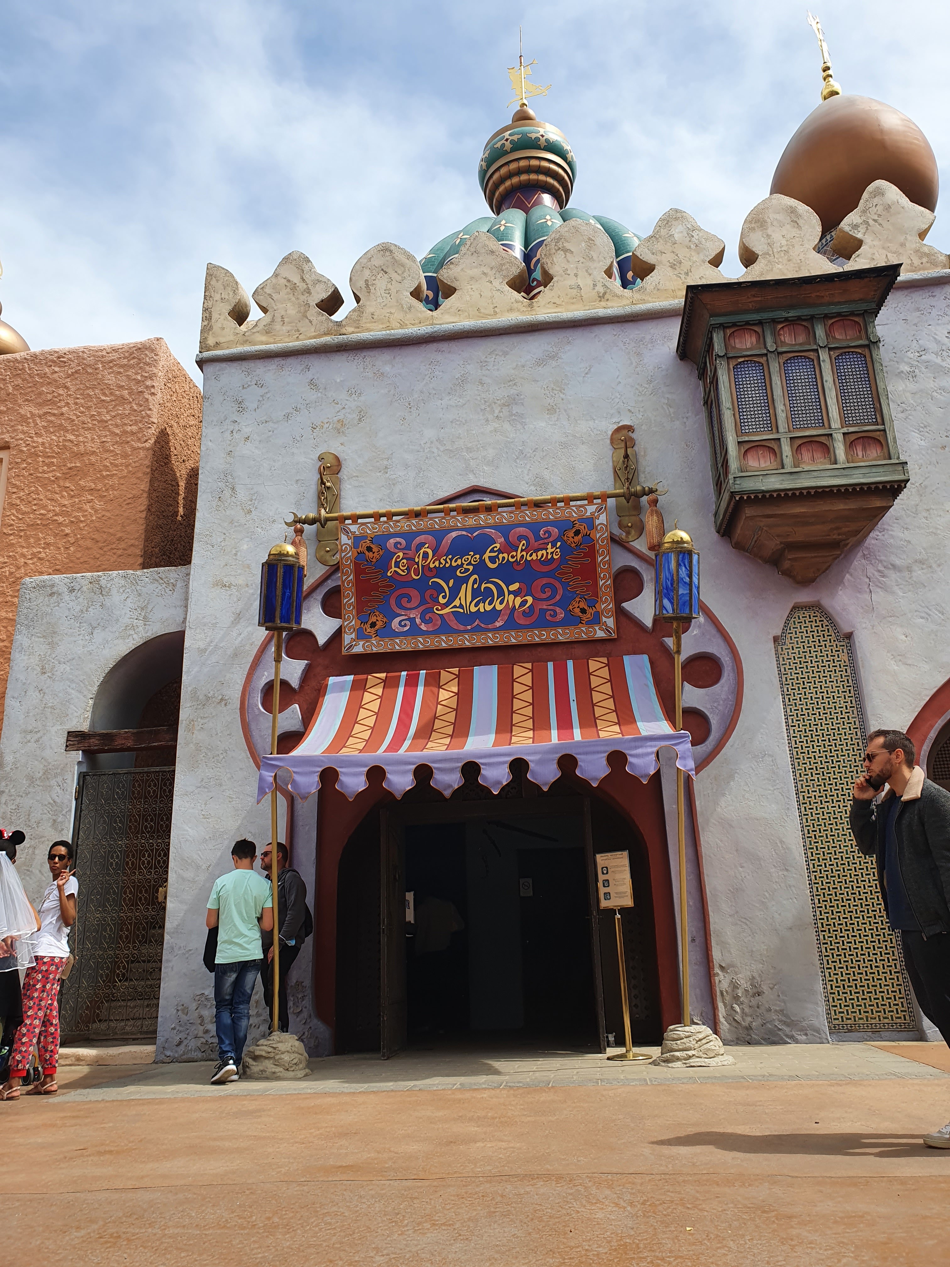 Un restaurant buffet à volonté sur le thème oriental inspiré par le film d'animation d'Aladdin, décoration vraiment magnifique, parfaitement intégré dans l'ambiance d'Adventureland. Paiement à l'entrée avant placement, formule unique avec boisson. Buffet moyennement fourni je trouve pour le prix. Quelques choix en entrées plats et desserts, vaguement dans le thème (le couscous surtout) mais je retire une étoile pour la basse qualité proposée par rapport au prix. pour le même ordre de prix on a le resto des stars dans les studios qui est meilleur et le plazza gardens vaut ses quelques euros en plus pour une meilleur qualité gustative. à Agrabah on a vraiment la sensation de manger le couscous de la cantine du lycée.... c'est un peu triste et sans saveur. Du décongelé probablement, présenté comme à la cantine d'ailleurs dans des bacs métalliques posés au bain marie. En général le service est toujours rapide et agréable. On a parfois pu y croiser un face character un peu étonnant : le chef du restaurant. Honnêtement on a eu la sensation un peu du faux. Étant donné la présentation (et le manque de saveur, rehaussé de piment pour faire semblant d'apporter du goût) des plats chauds comme à la cantine du lycée, on a la sensation que c'est un acteur avec une toque qui vient souhaiter bon appétit et serrer des mains comme un homme politique.... Dommage l'ambiance de l'endroit mérite pourtant le détour, c'est vraiment très joli et ça dépayse. Visites régulières (pass annuel) donc je mets une note sur la globalité des expériences, en toute objectivité car il y a parfois des imprévus, de fortes affluences et des déceptions mais de manière générale il faut reconnaitre que la magie est toujours assurée et qu'ils savent faire face à tellement de circonstances avec professionnalisme.-