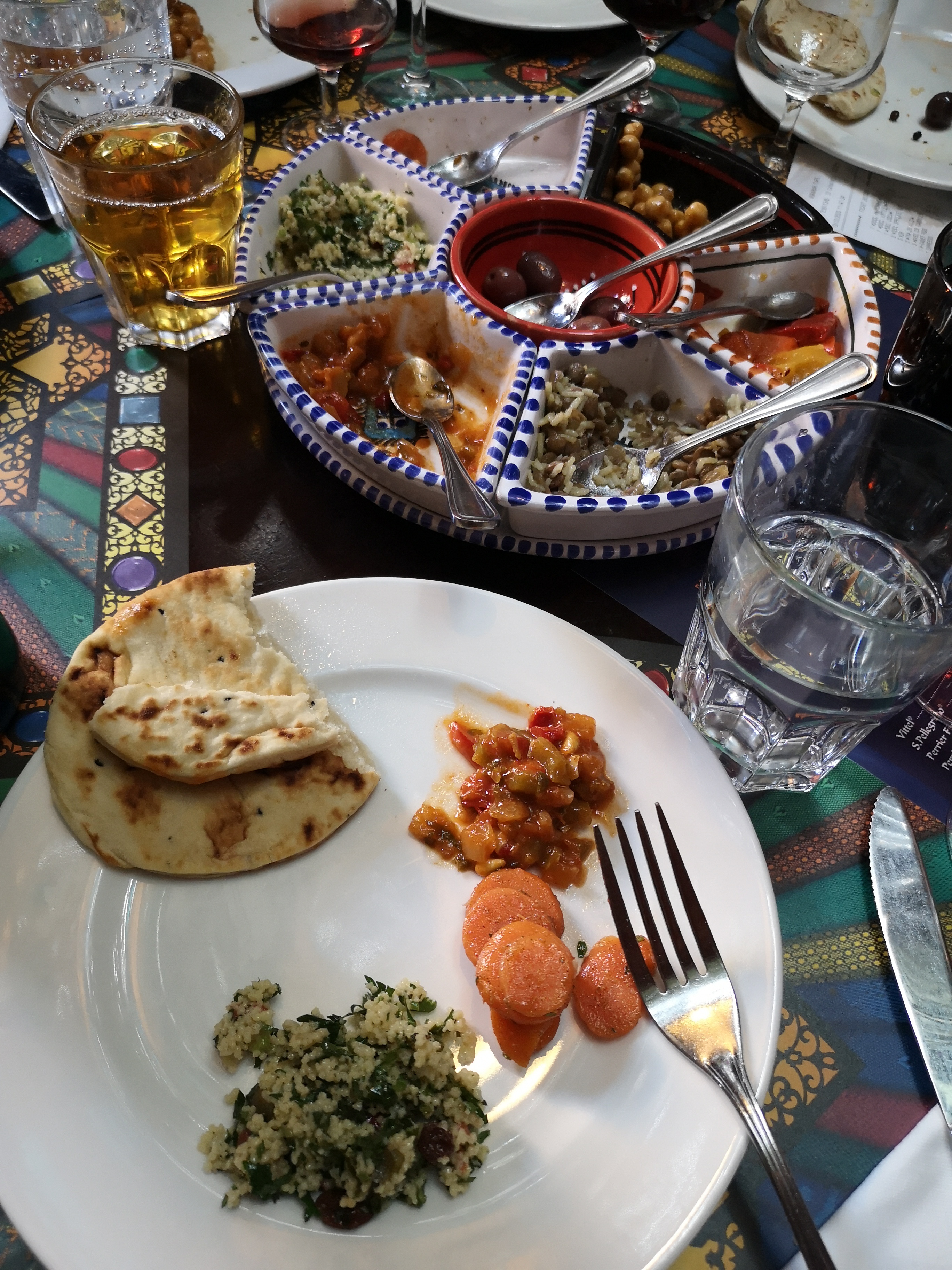 Cuisine atypique, ambiance bien travaillée et quelques musiciens qui se baladent de temps en temps. Les entrées, les plats, le couscous, les desserts, tous les plats nous amènent en orient. Pour du restaurant buffet c’est très sympa même si le prix du menu reste assez onéreux.