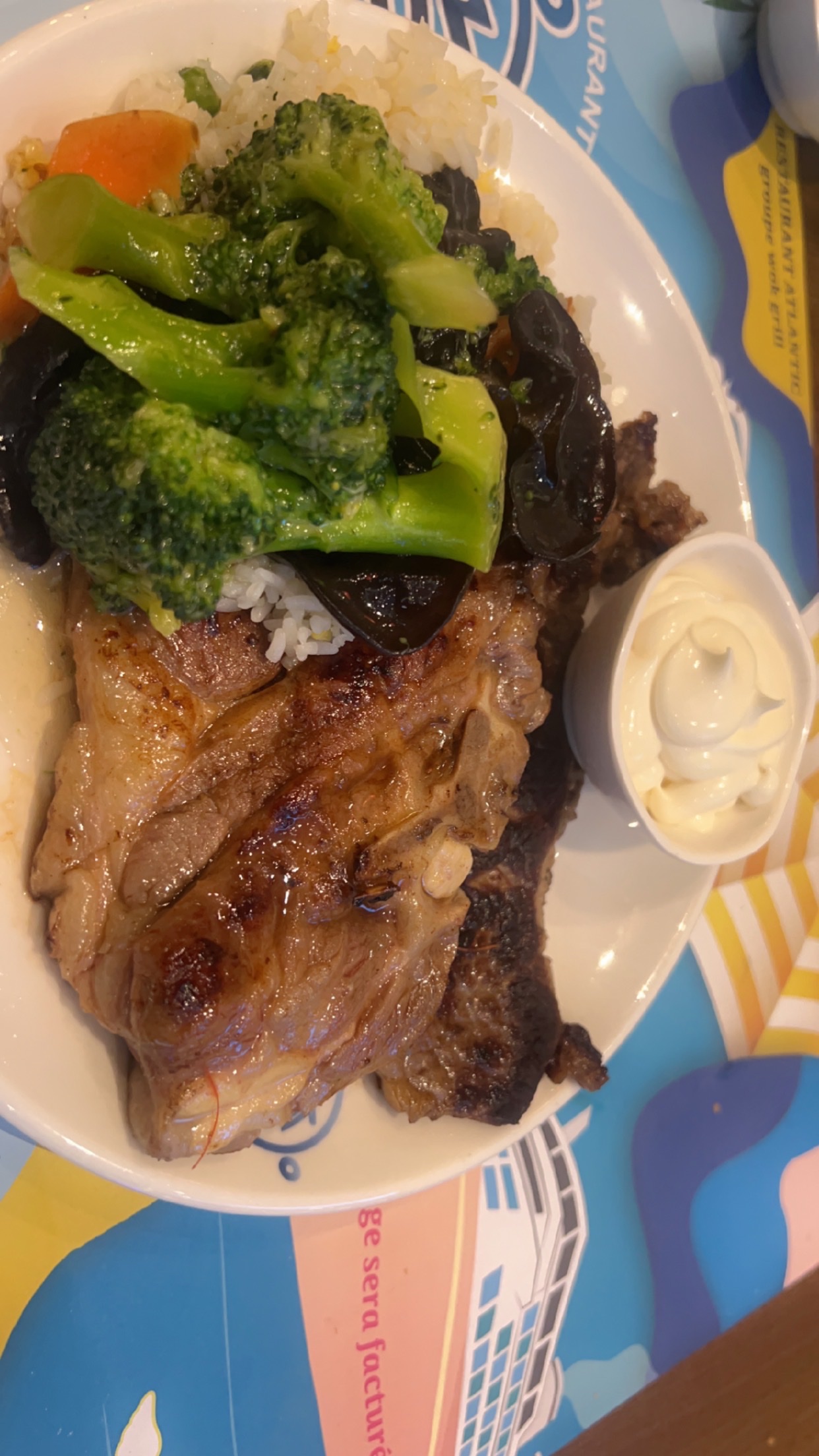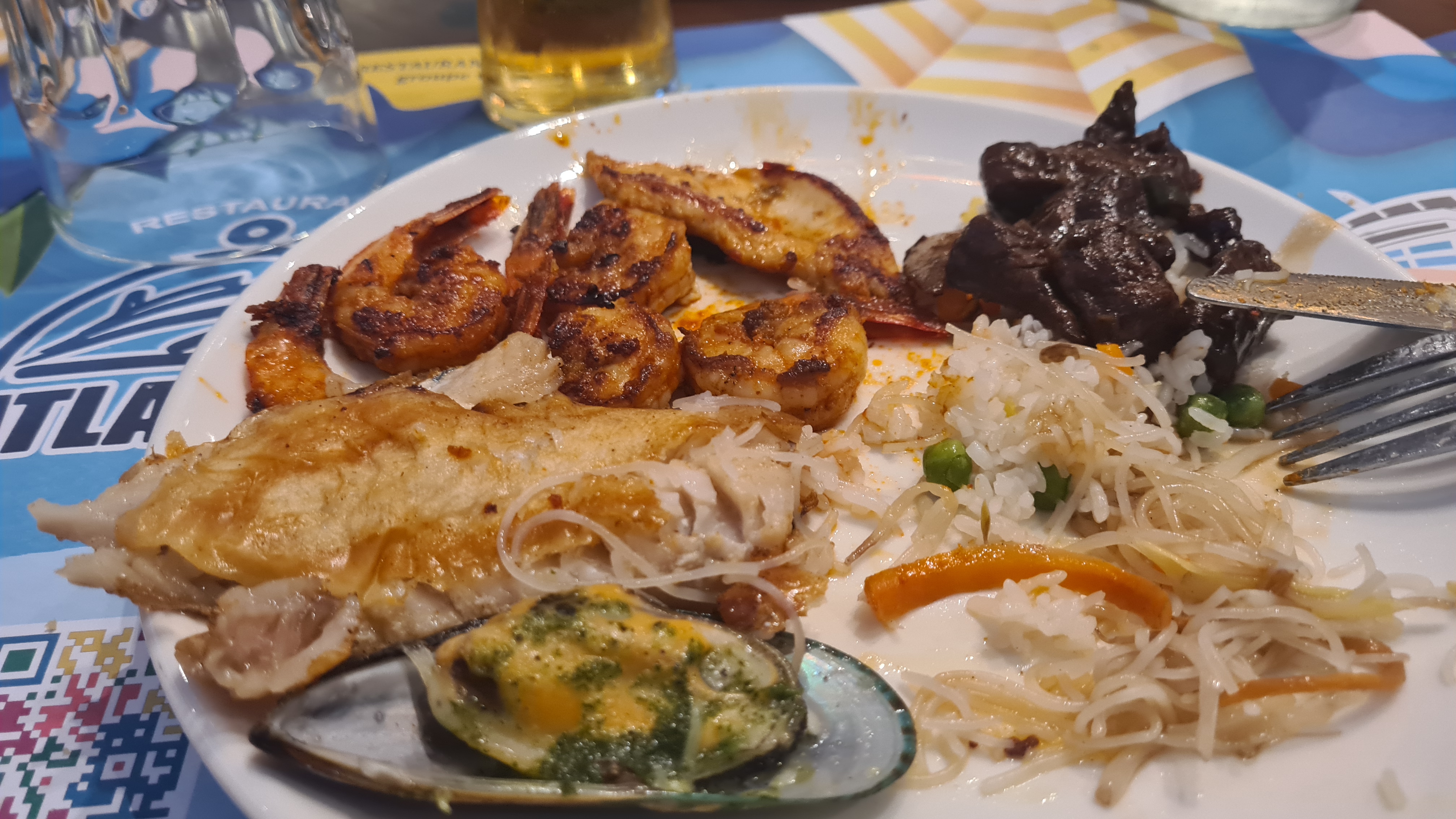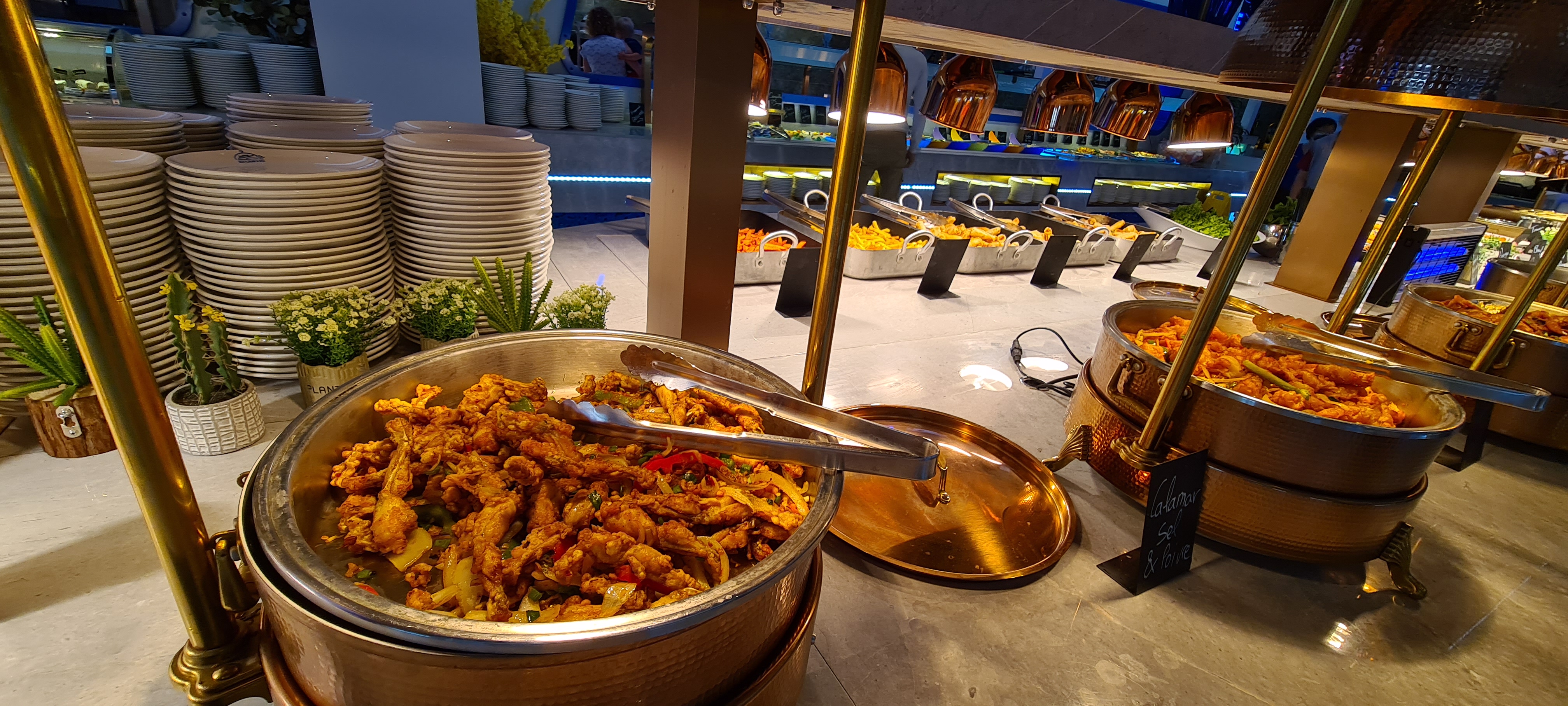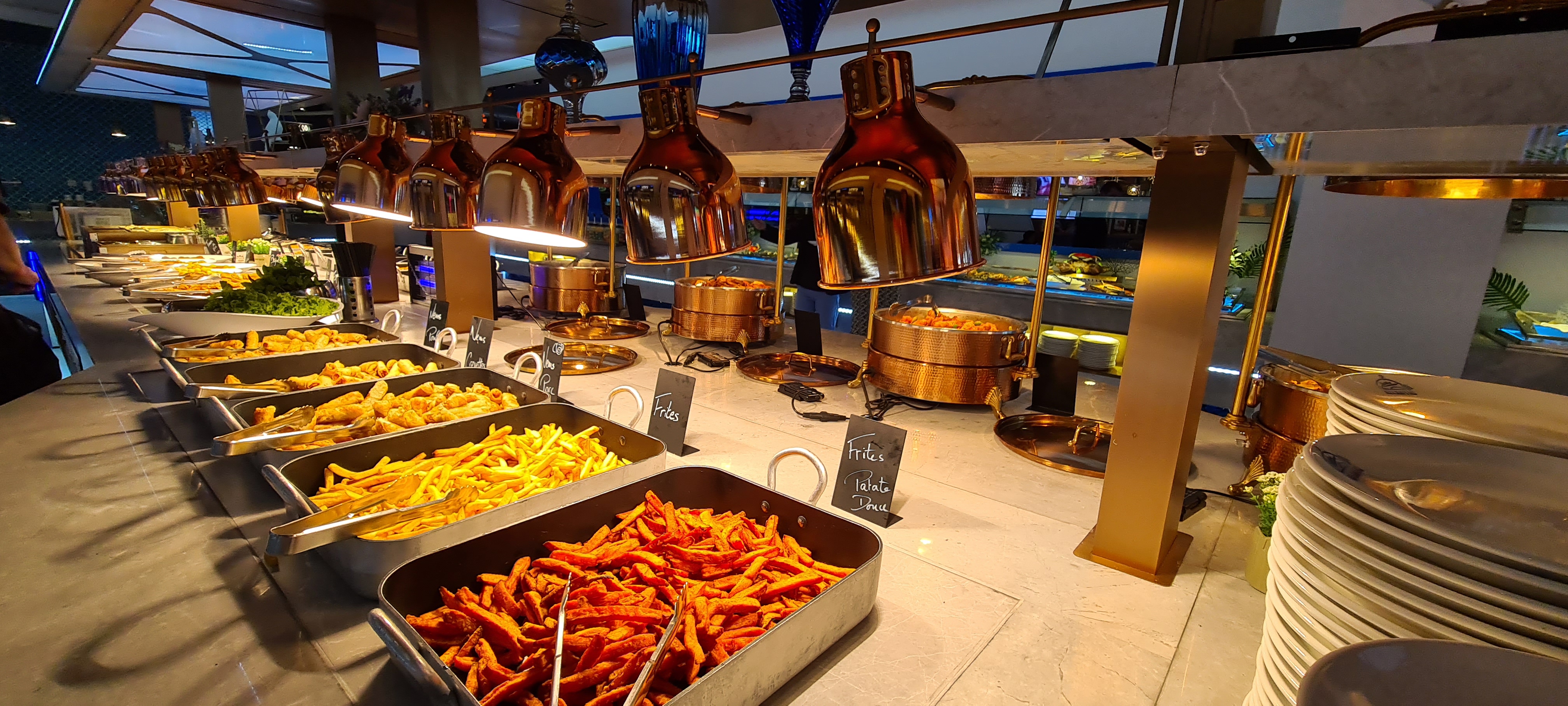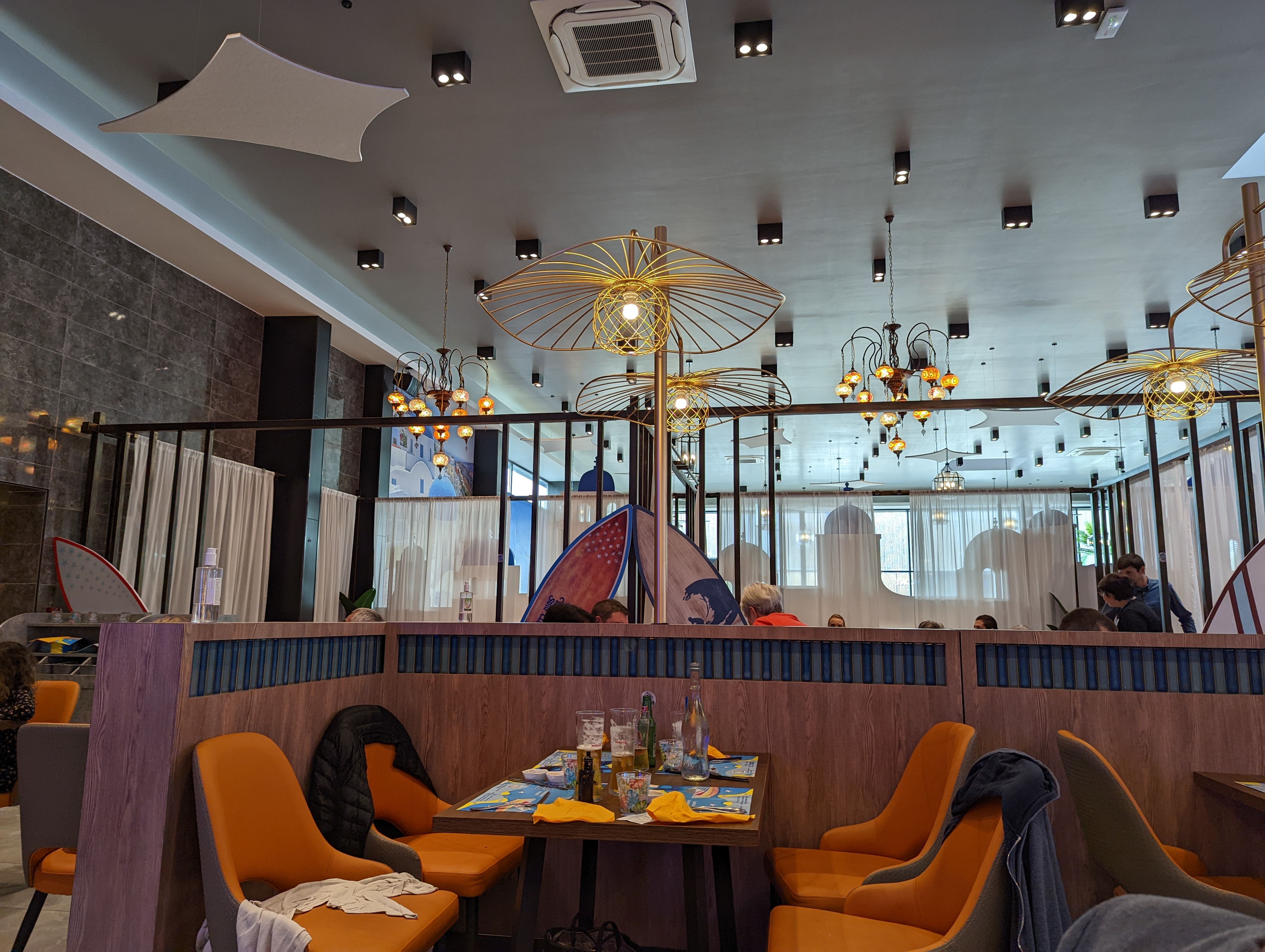 La décoration est très jolie. Aire de jeux pour les enfants qui est une très bonne idée. Cependant beaucoup de quantité et peu de qualité. La nourriture est trop salé pour qu’on boit beaucoup d’eau et qu’on consomme moins et les desserts trop sucré. Les fruits de mer n’ont pas de goût de la mer. Je me demande d’où ils viennent….