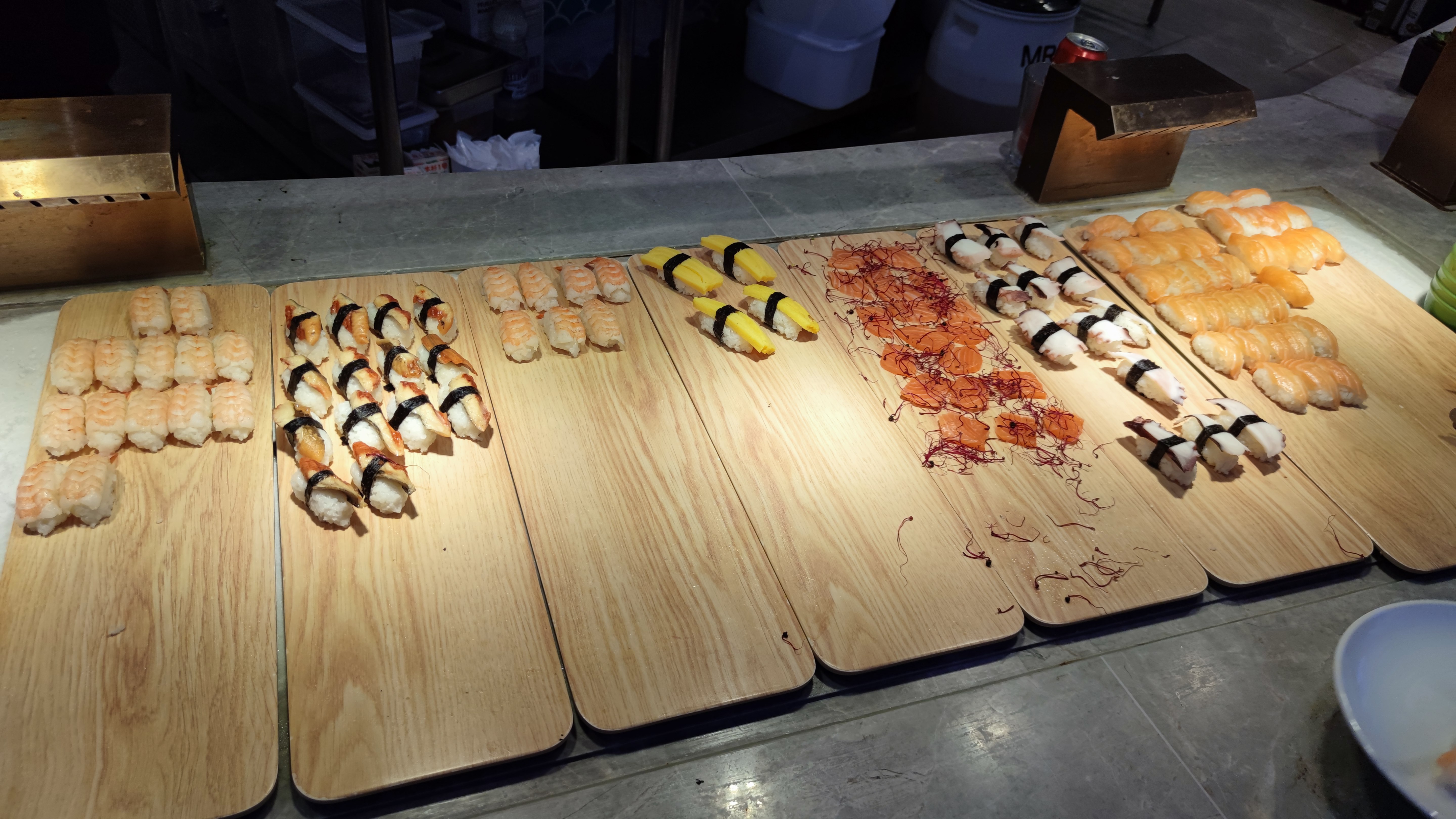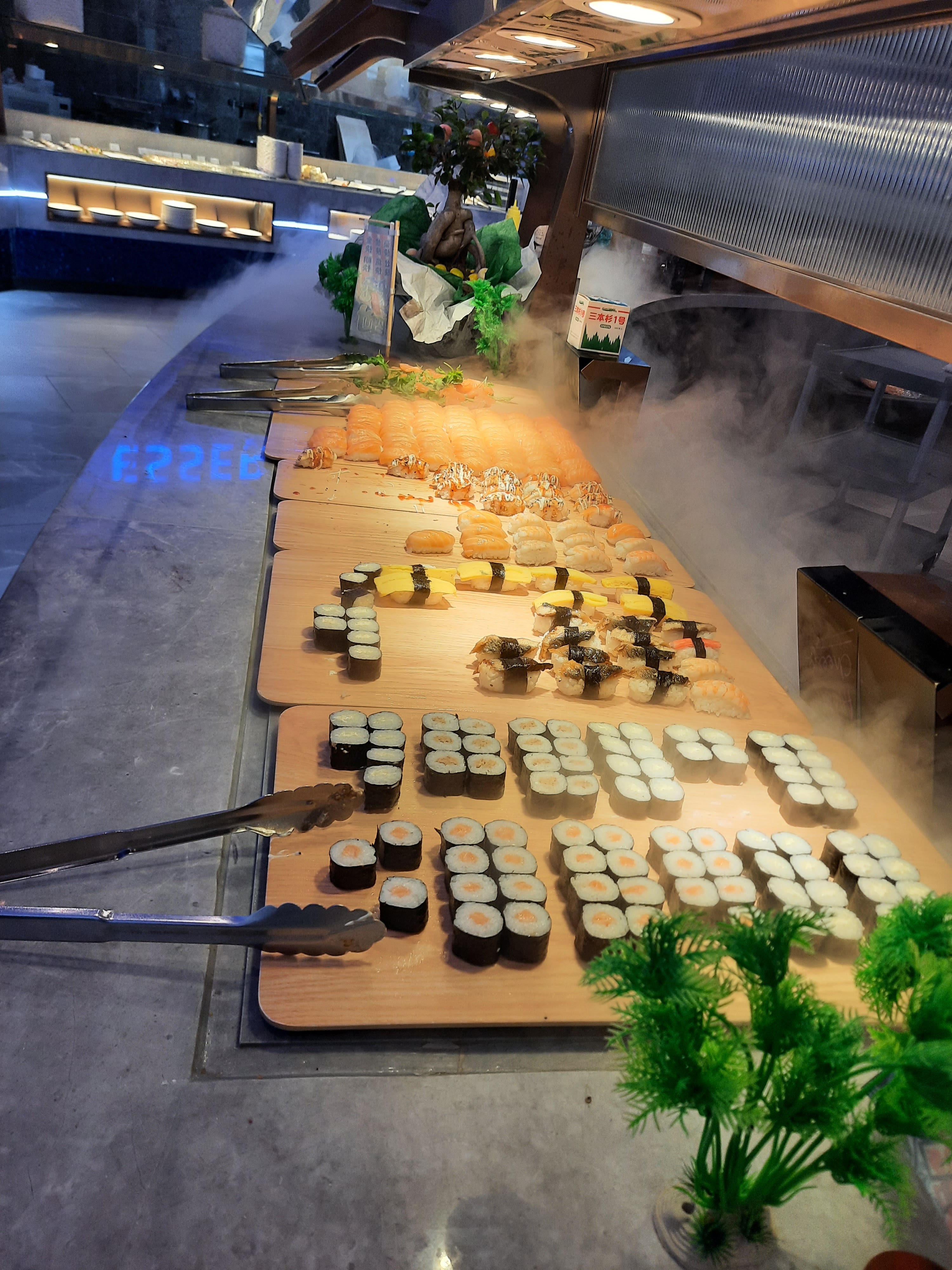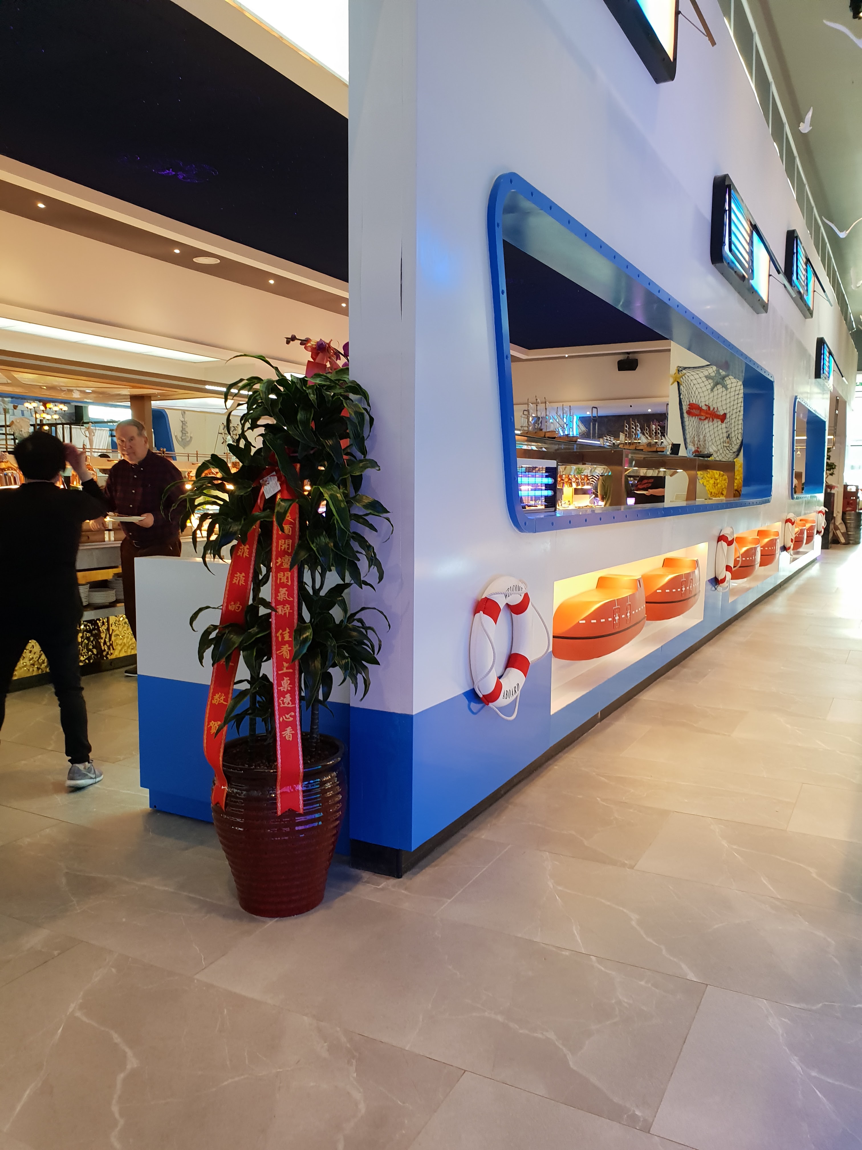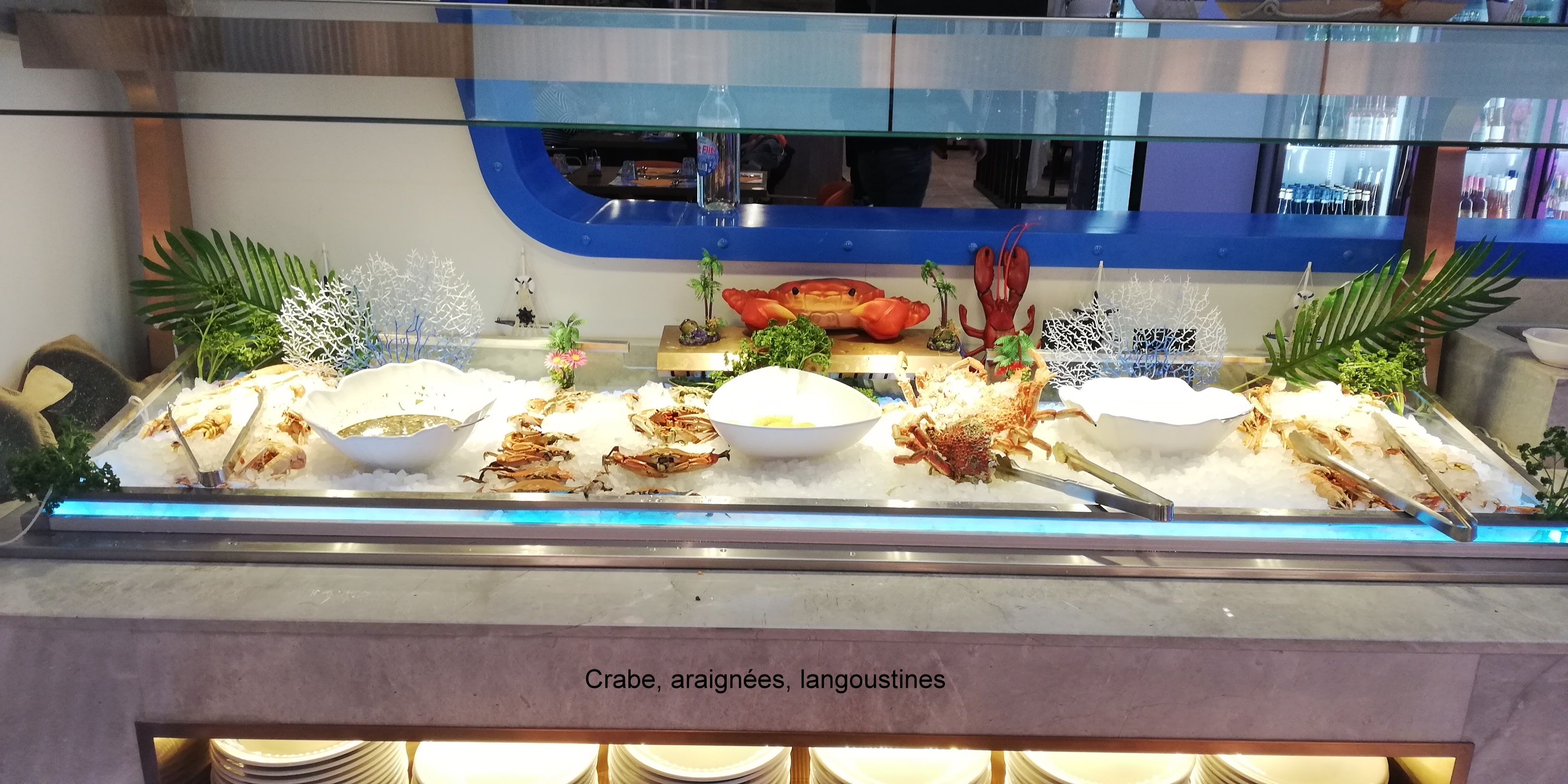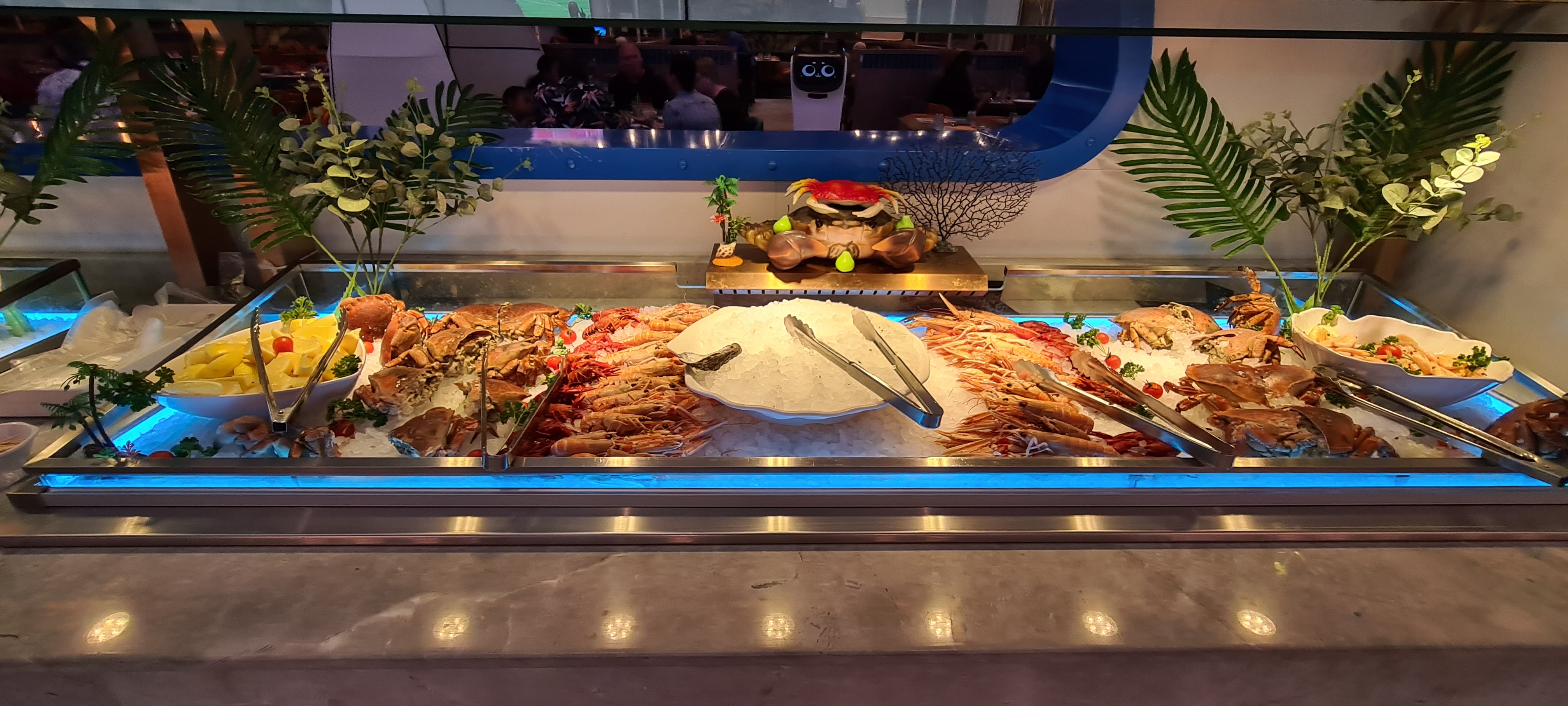 Rares sont les restaurants asiatiques à proposer autant de produits de la mer et tous bien frais (saumon, crabe, huîtres, moules et coques...). Énormément de choix de plats. C'est l'abondance dans un décor de paquebot très bien agencé et d'une grande propreté. Original, le robot assurant le service des boissons. J'y retournerai. Comme tous les établissements à forte affluence, ça peut assez bruyant.