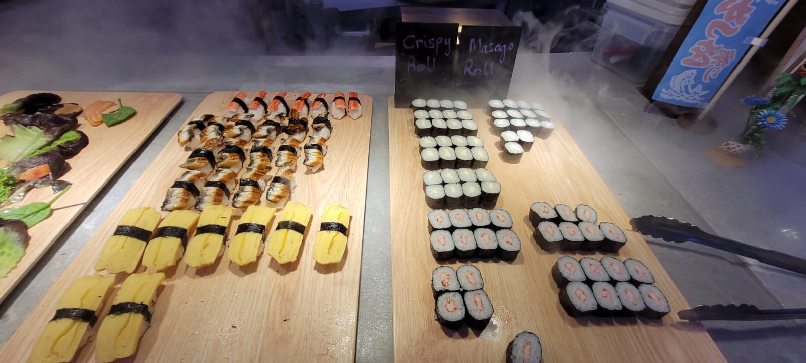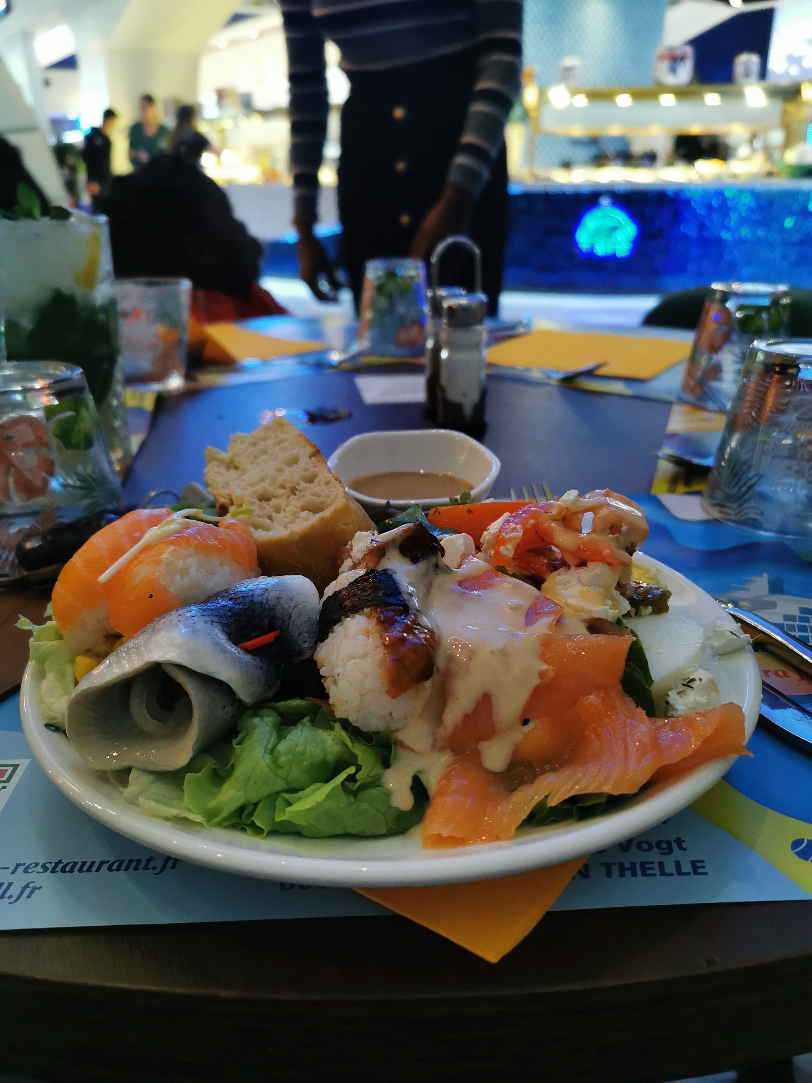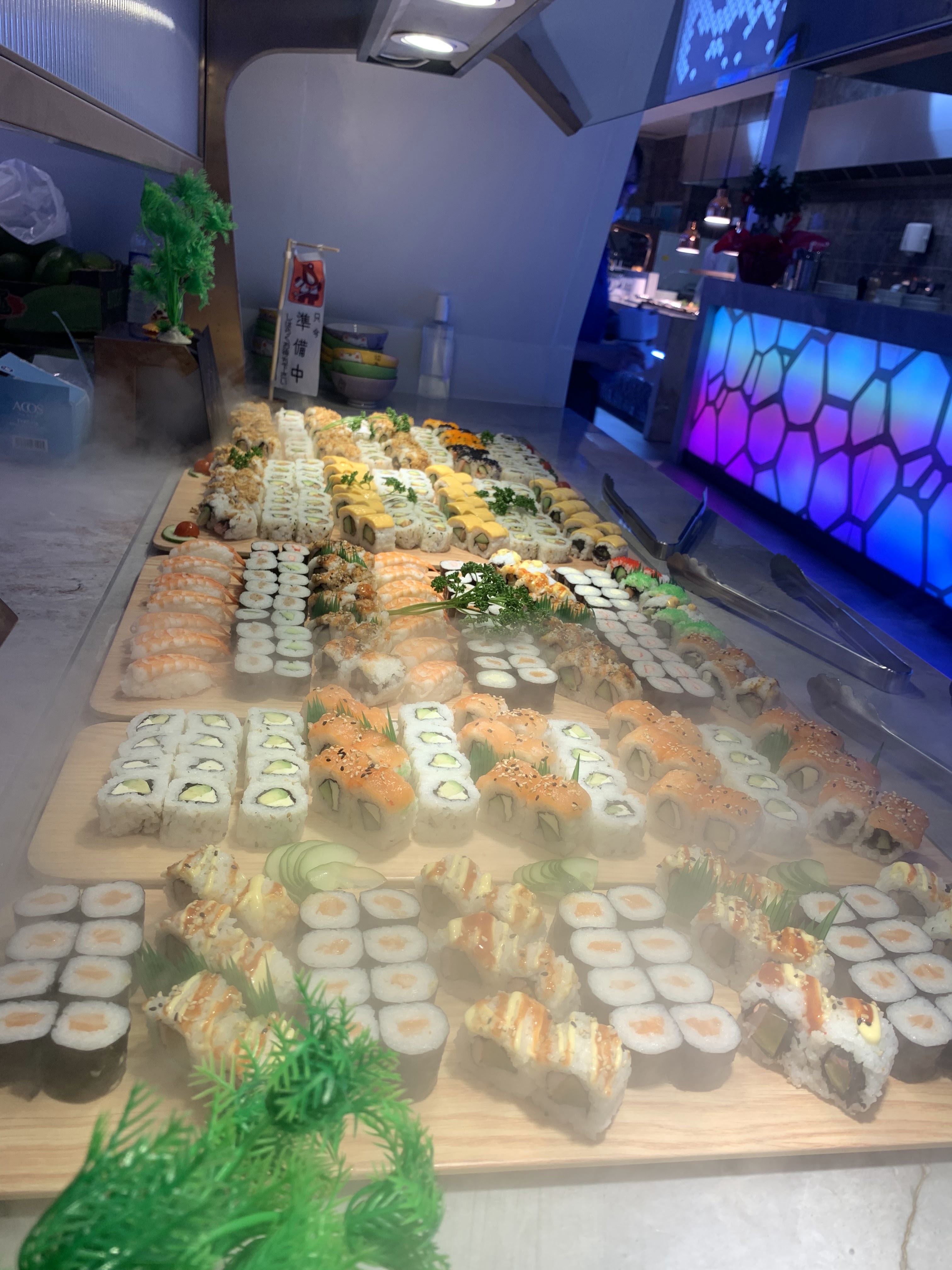 Décoration très sympa, très grand choix de plats (trop même !!!!). Le personnel est serviable. Le petit robot qui apporte les boissons 👍. Prix assez élevé par contre. Il vaut mieux y aller le midi en semaine 16€90 car le soir c est 23€90 et encore plus cher le weekend.