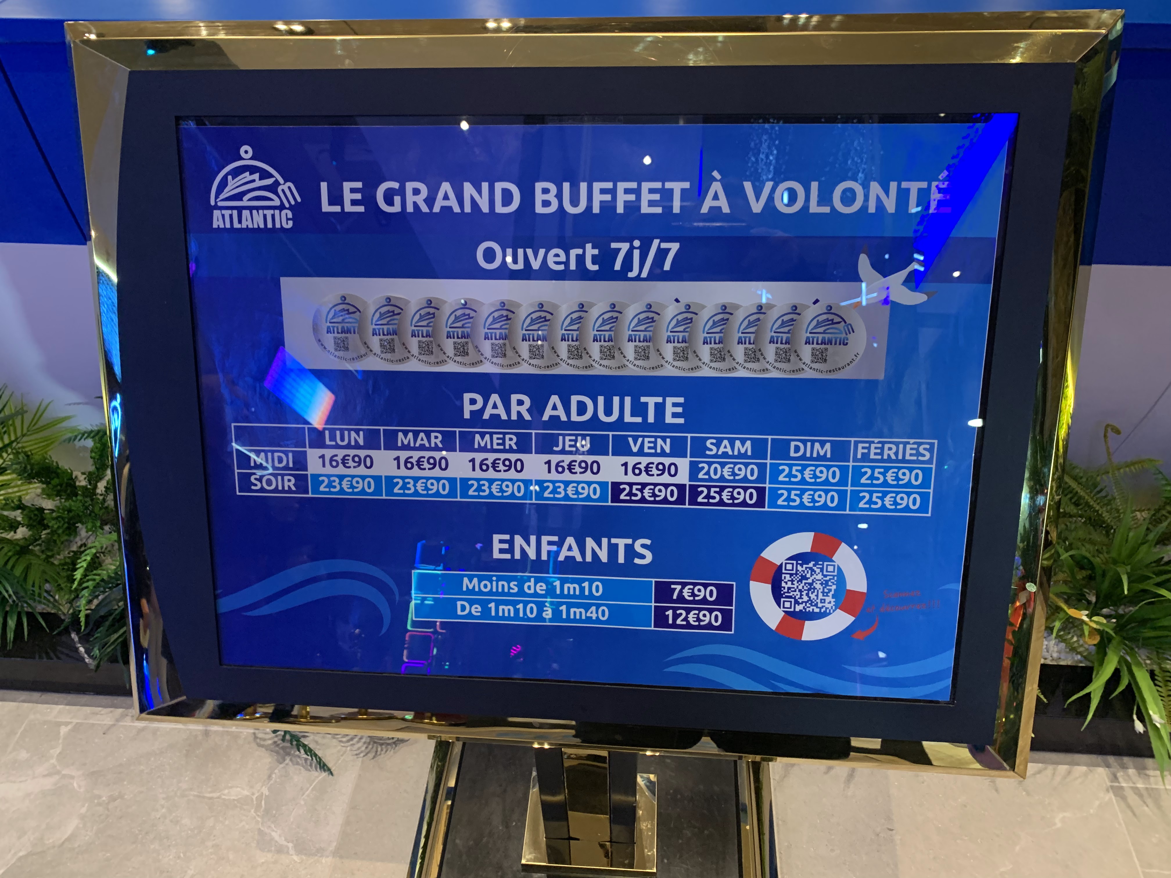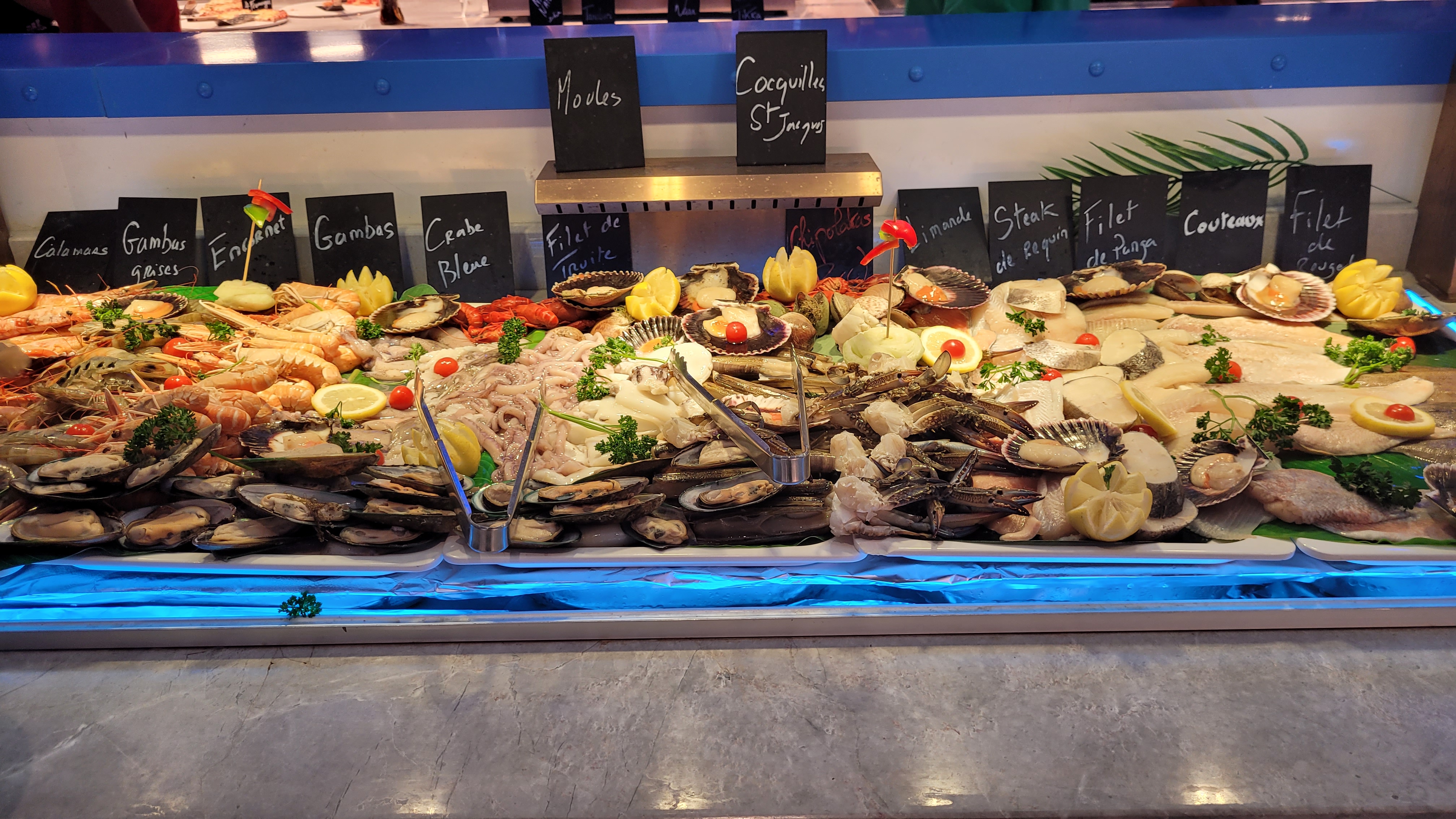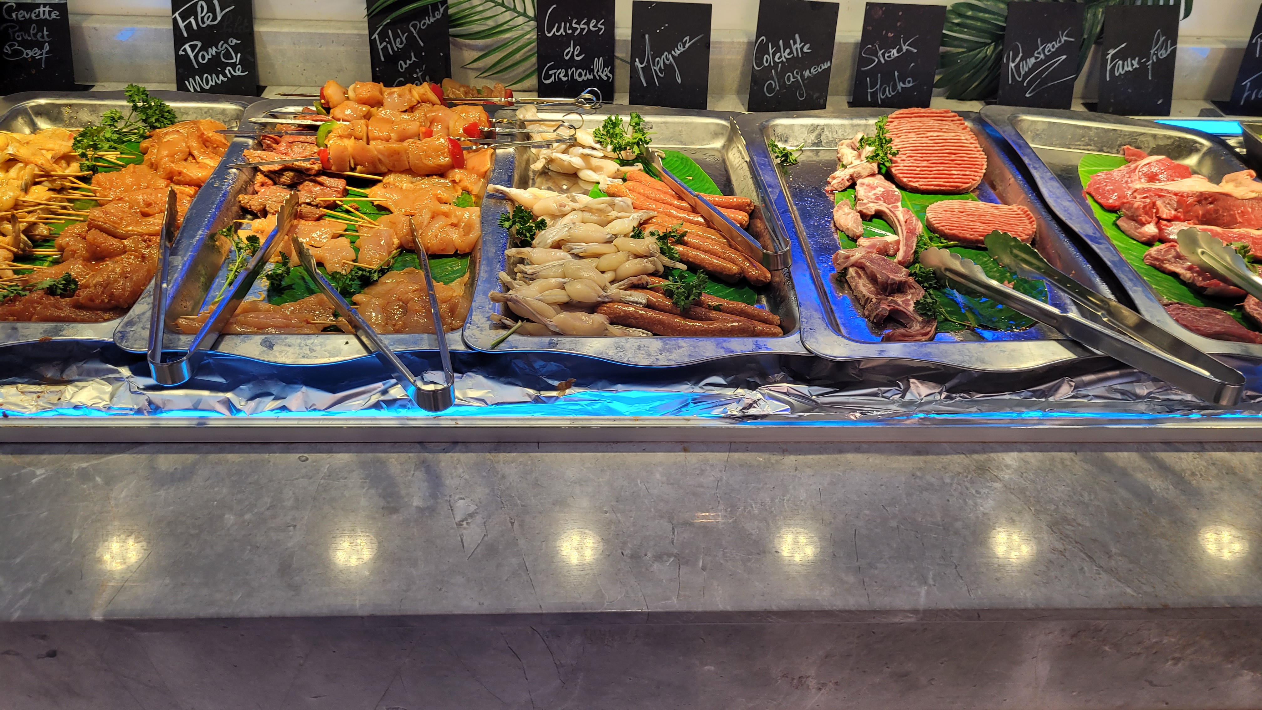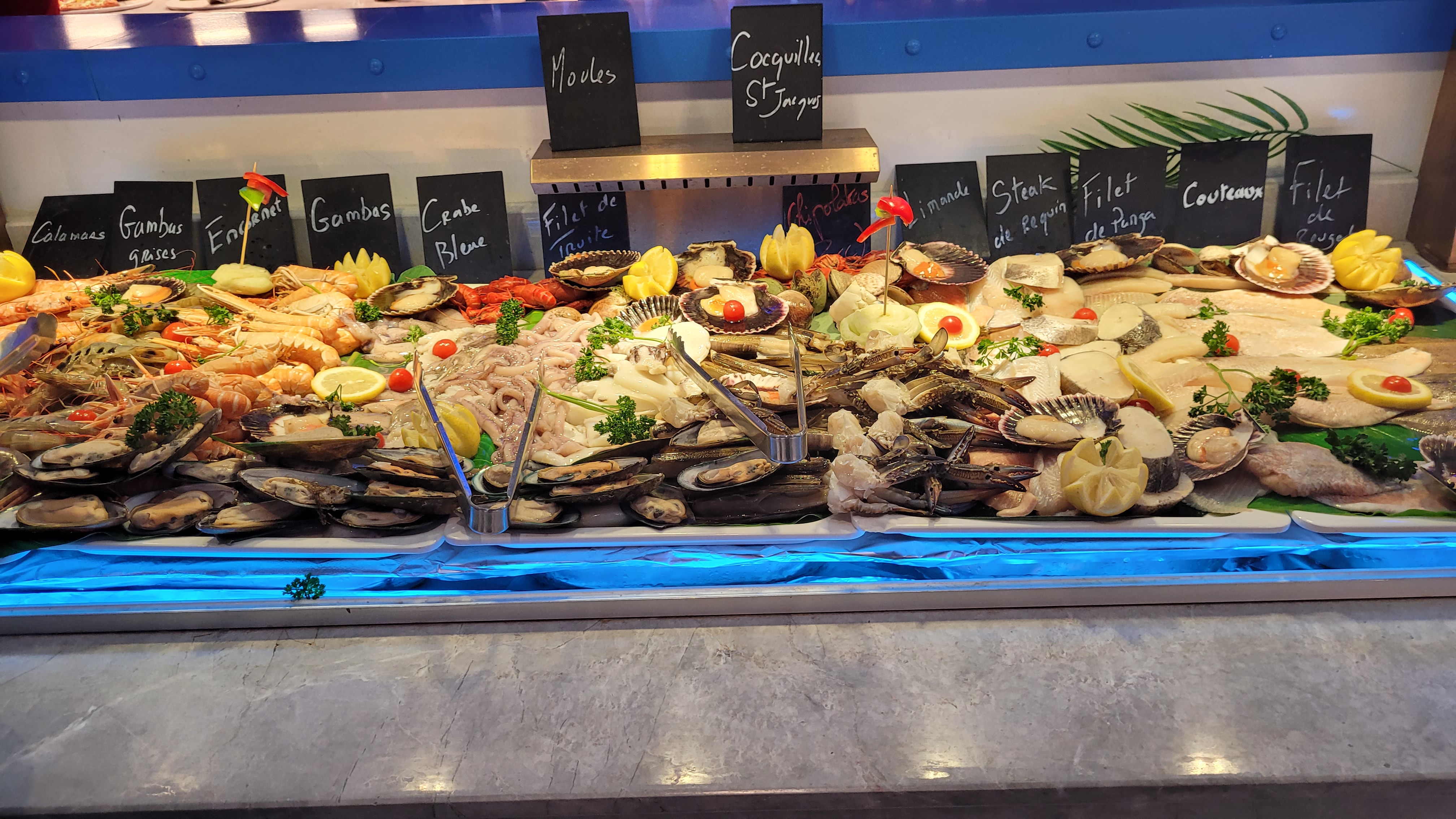 J'étais septique mais franchement on a très bien mangé, énormément de choix, il y en a pour tout les goûts: poisson entier, sushi, fruit de mer, cuisse de grenouille, beaucoup de dessert et de fruit. On reviendra sans problème.