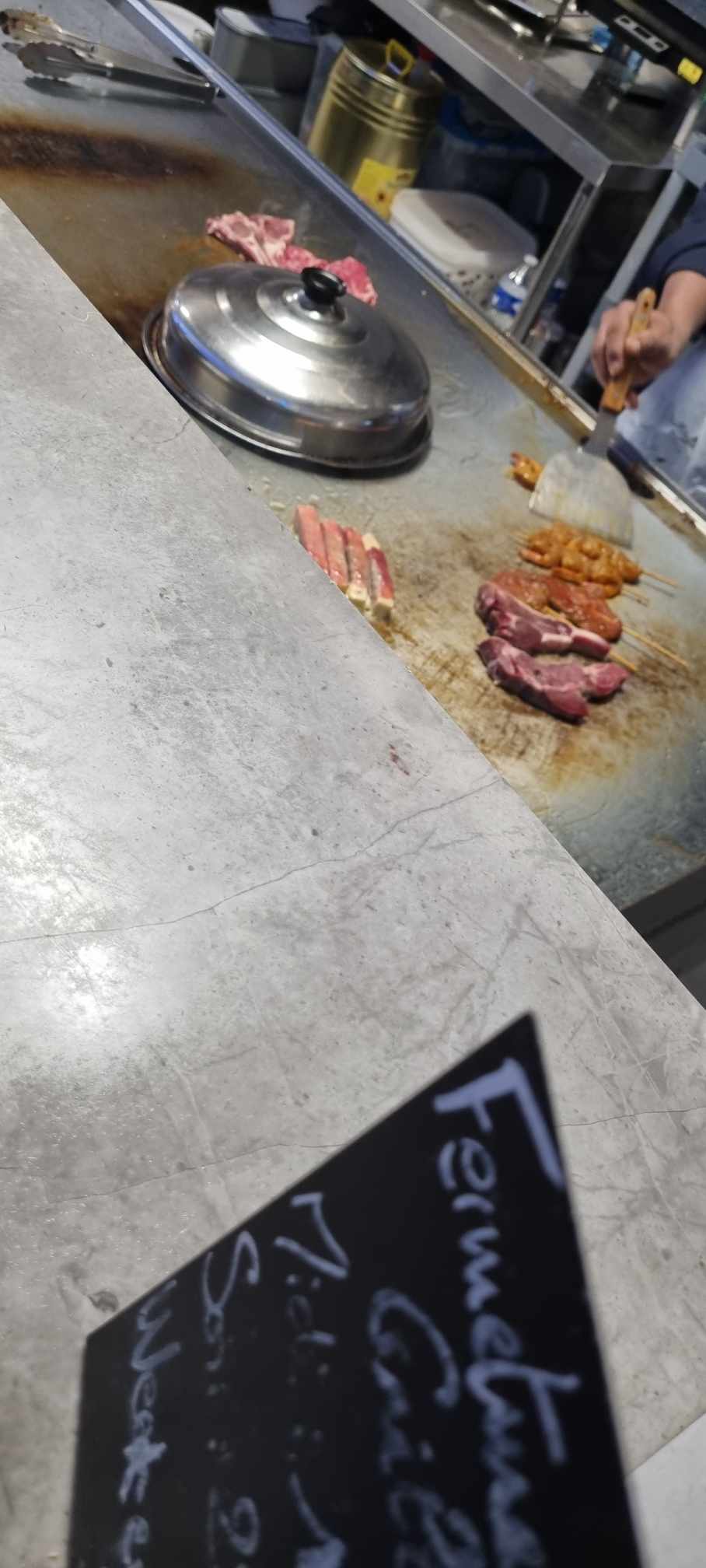Je n’ai pas apprécié le goût des plats,les plats sont tiède voir froid.Il n’y avait pas grand monde ce soir là. J’ai eu également un problème avec un cuisinier qui s’est montré impoli lié à une erreur qu’il avait fait. Le rapport qualité prix n’est pas bon ,25 e c’est trop chère. Le seul point positif c’est le décor ,chaises confortable. Bref très mauvaise expérience ,à déconseiller sauf si amélioration du repas et du service de grillade (un cuisinier en question).