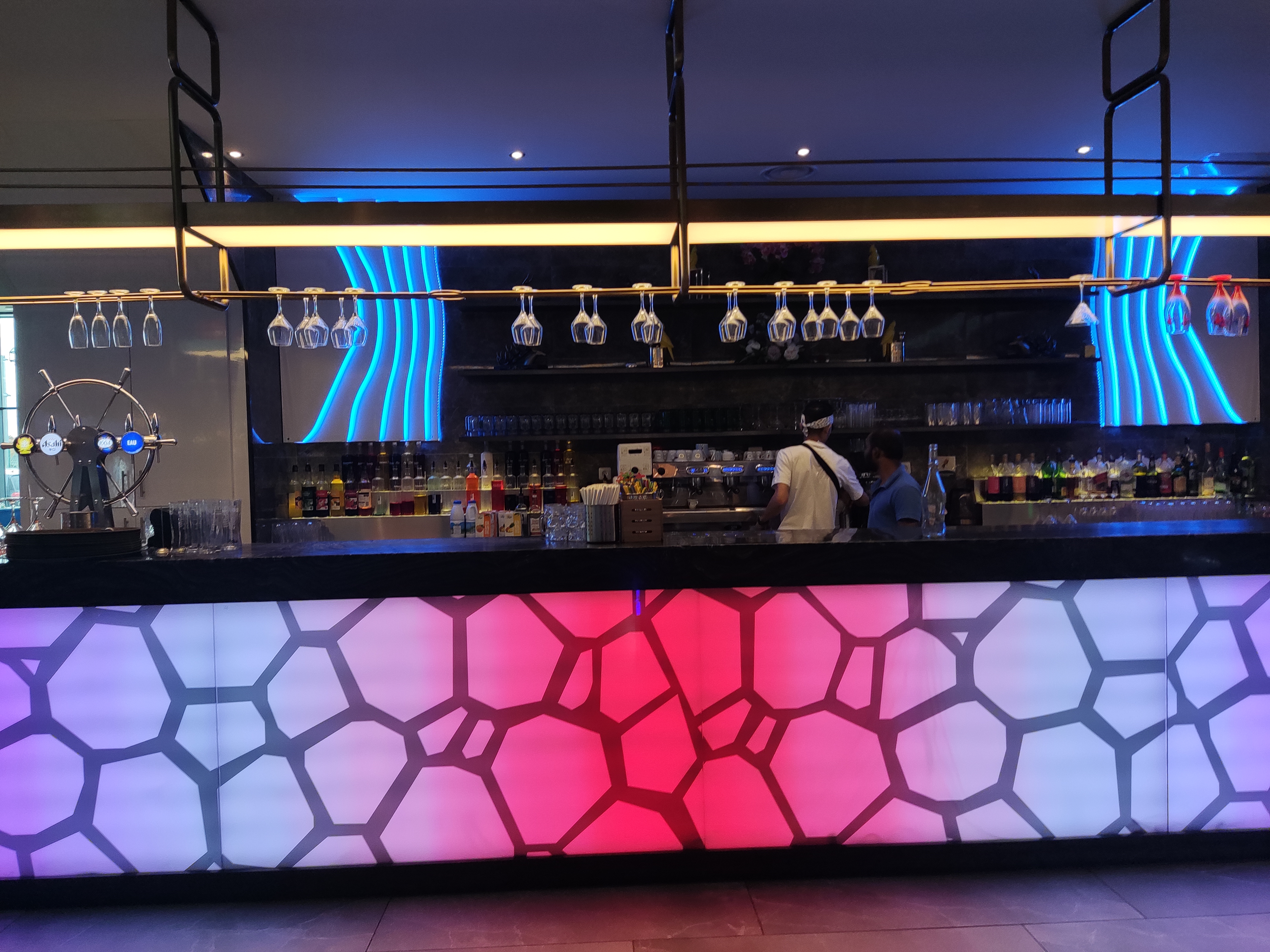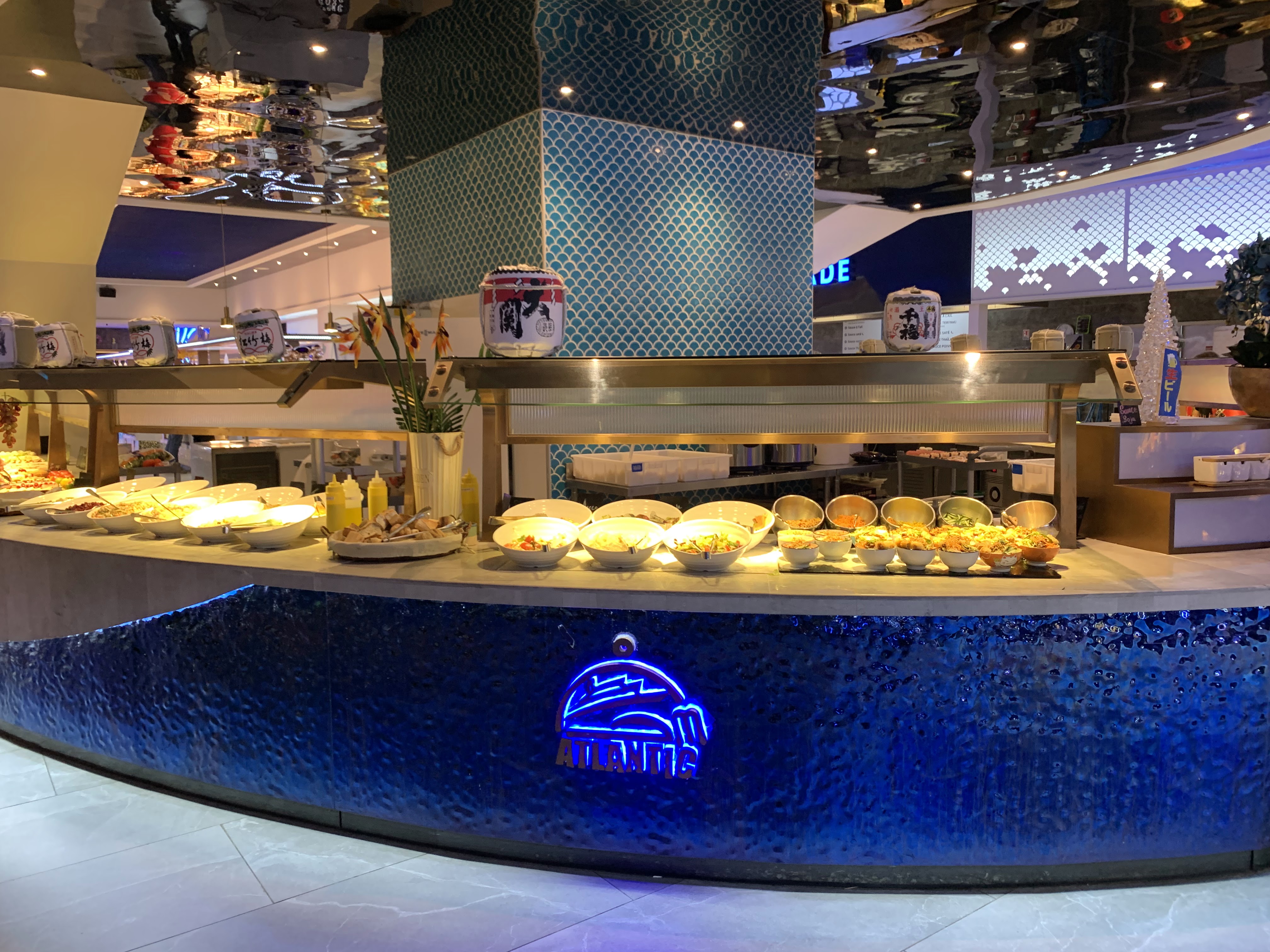 J'adore! Généralement je n'aime pas les buffets à volonté. Mais là il y a énormément de choix. Le décor est tel que l'on a l'impression d'être sur un bateau de croisière. Et le petit plus amusant, c'est que les boissons nous sont servi par des automates roulant 😻. A refaire.