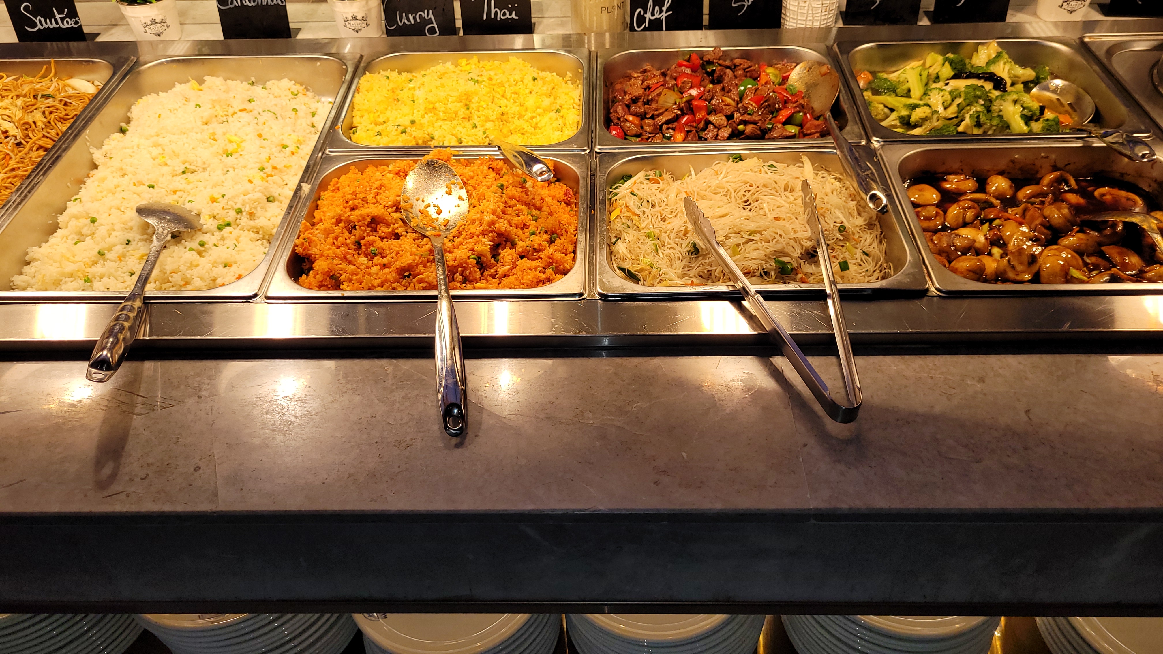 Étonnamment, très bon buffet. Végétarienne je ne peux juger la qualité des viandes et poissons mais parmi tous le reste que j'ai pu goûter tout était bon. Il y en a pour tous les goûts (asiatique, pizza, indiens, européens, salades, beaucoup de fait sur place) et plein de desserts variés, même des fontaines au chocolat et bonbons)