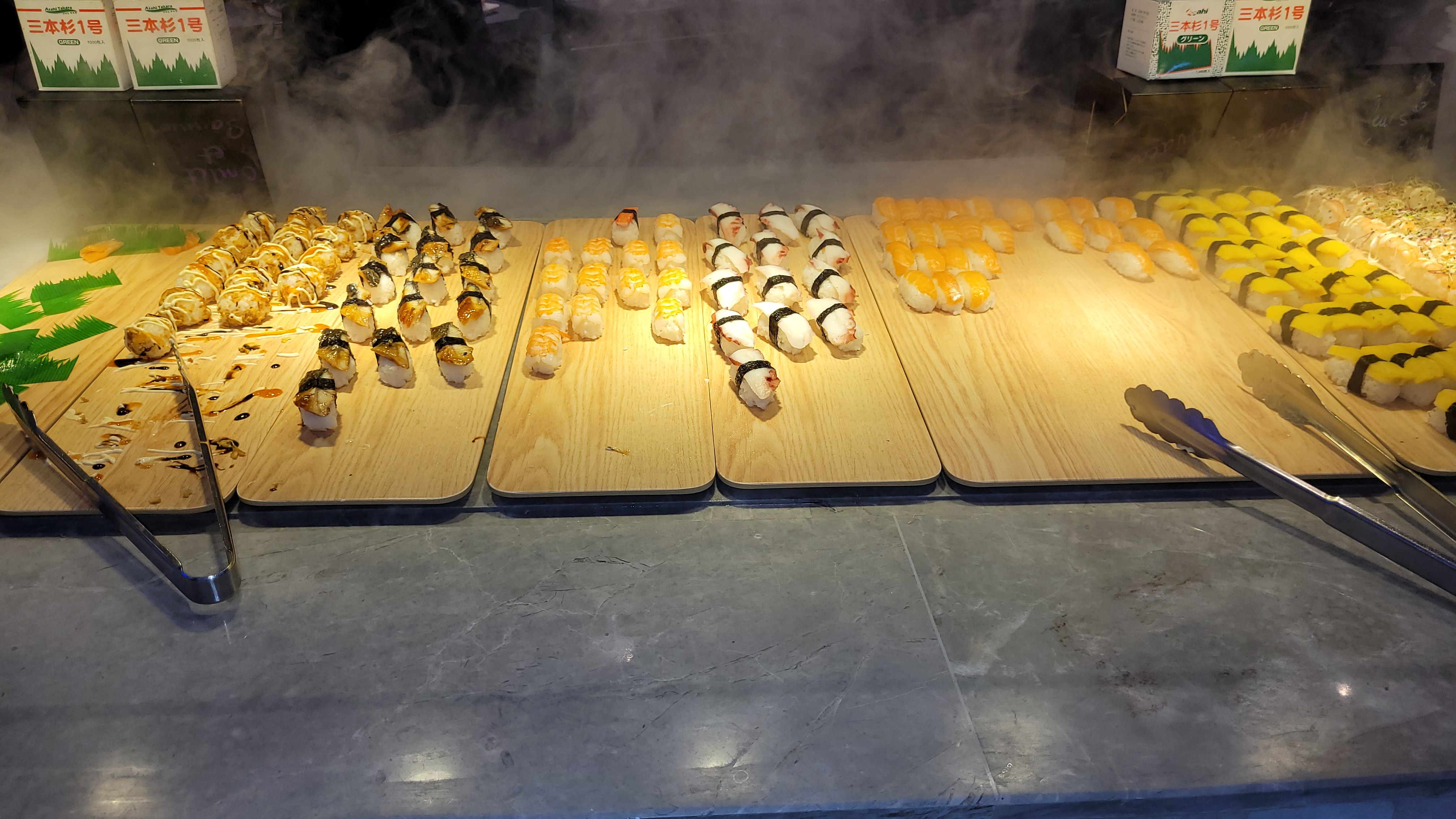 Beaucoup de choix. Les petits robots vous apportent vos boissons. Le buffet indien est particulièrement bon !