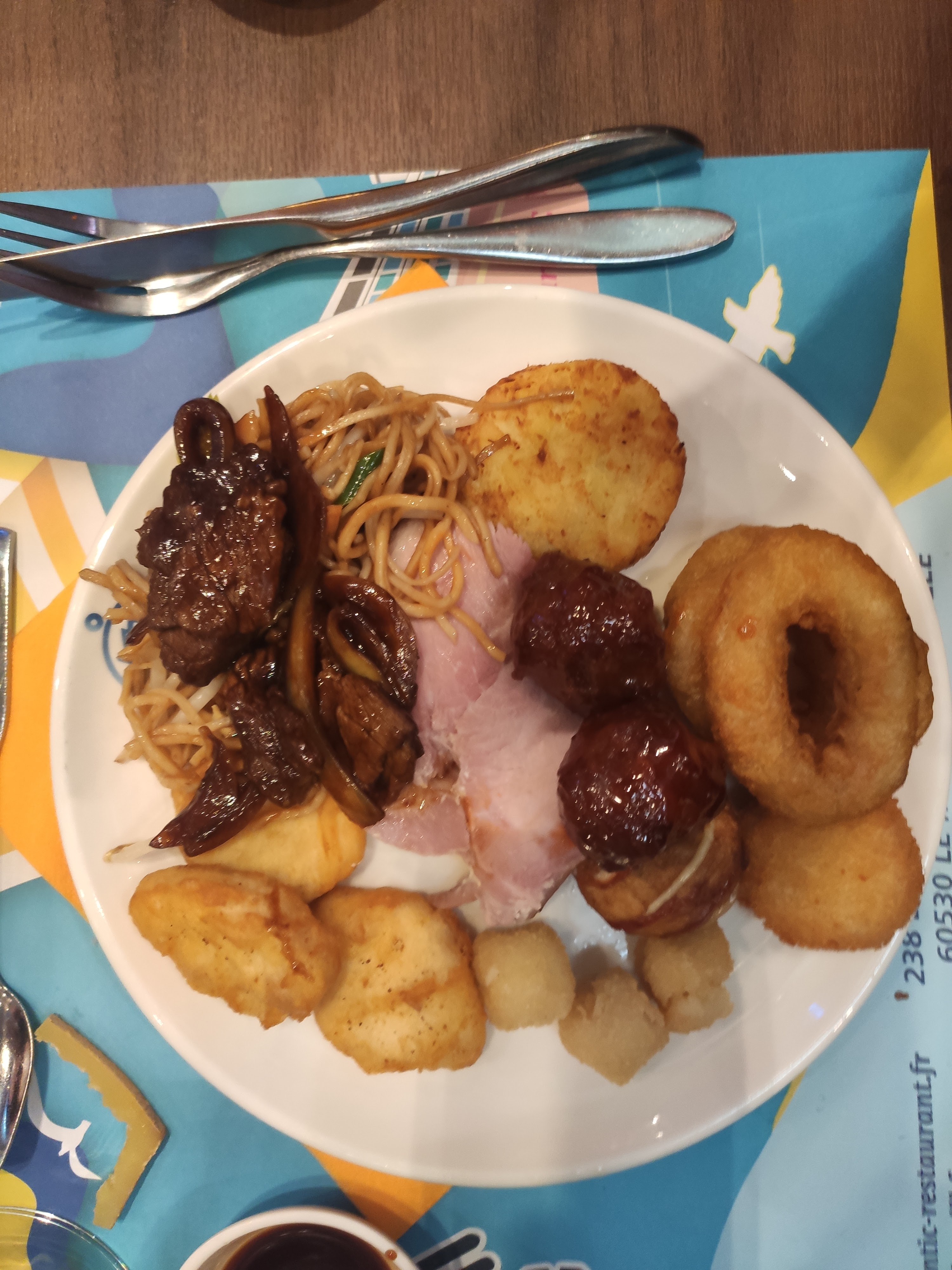Beaucoup trop de personnes d'une certaine religion, ils en ont retiré les dès de jambon du riz c'est honteux !!! De plus le buffet est trop occidentale et je n'ose même pas me renseigner si c'est de la viande hallal histoire de descendre encore plus dans la bêtise d'une certaine classe de la population sous-développé