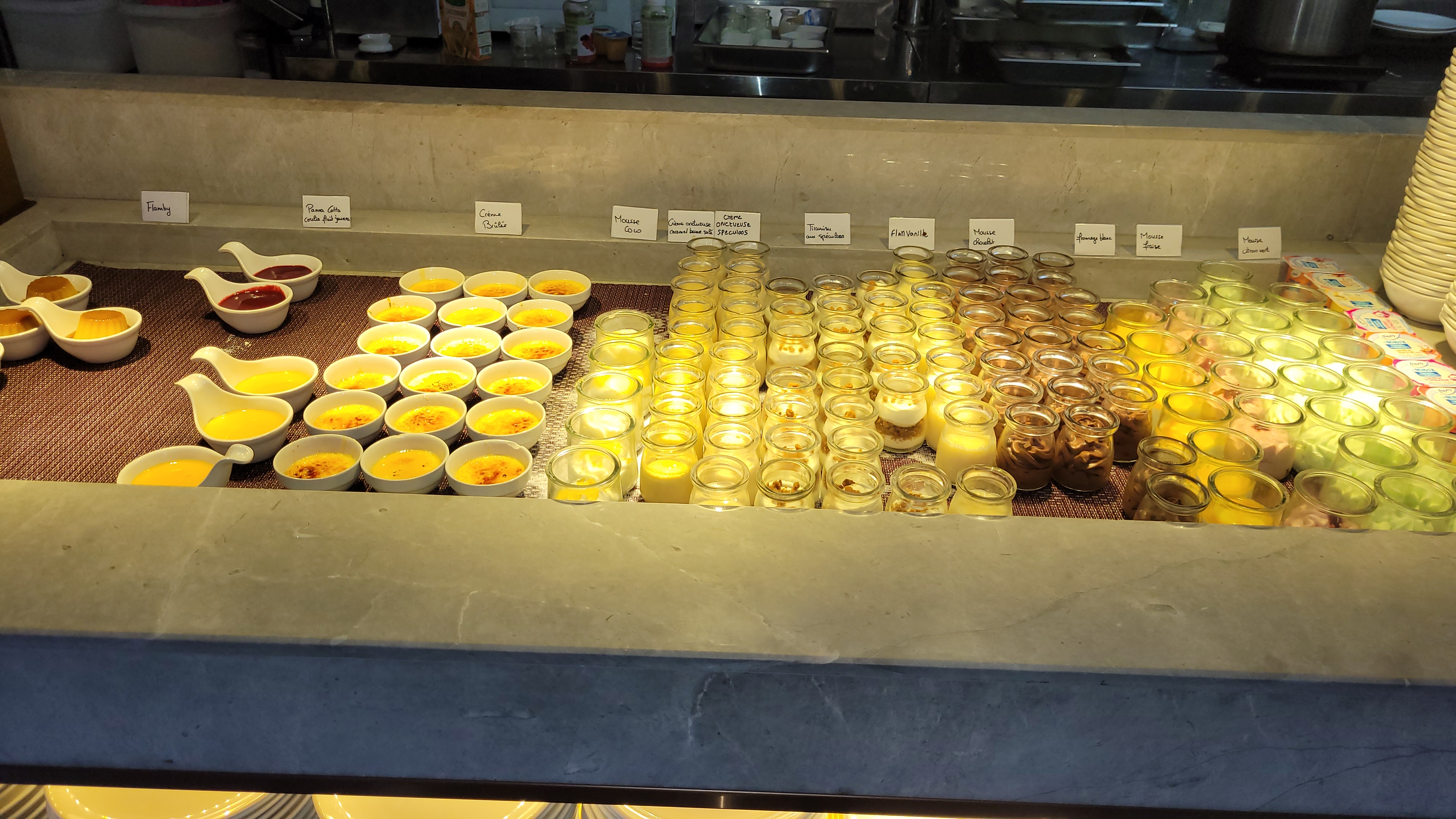 J'ai bien aimé, il ya vraiment du choix et du coup c'est pour tout les goûts petits et grand. C'est très grand donc sa fait vraiment cantine et bruyant quand ya du monde mais vu le buffet c'est logique sa reste cohérent. La petite machine qui dépose les verres fait sensation.