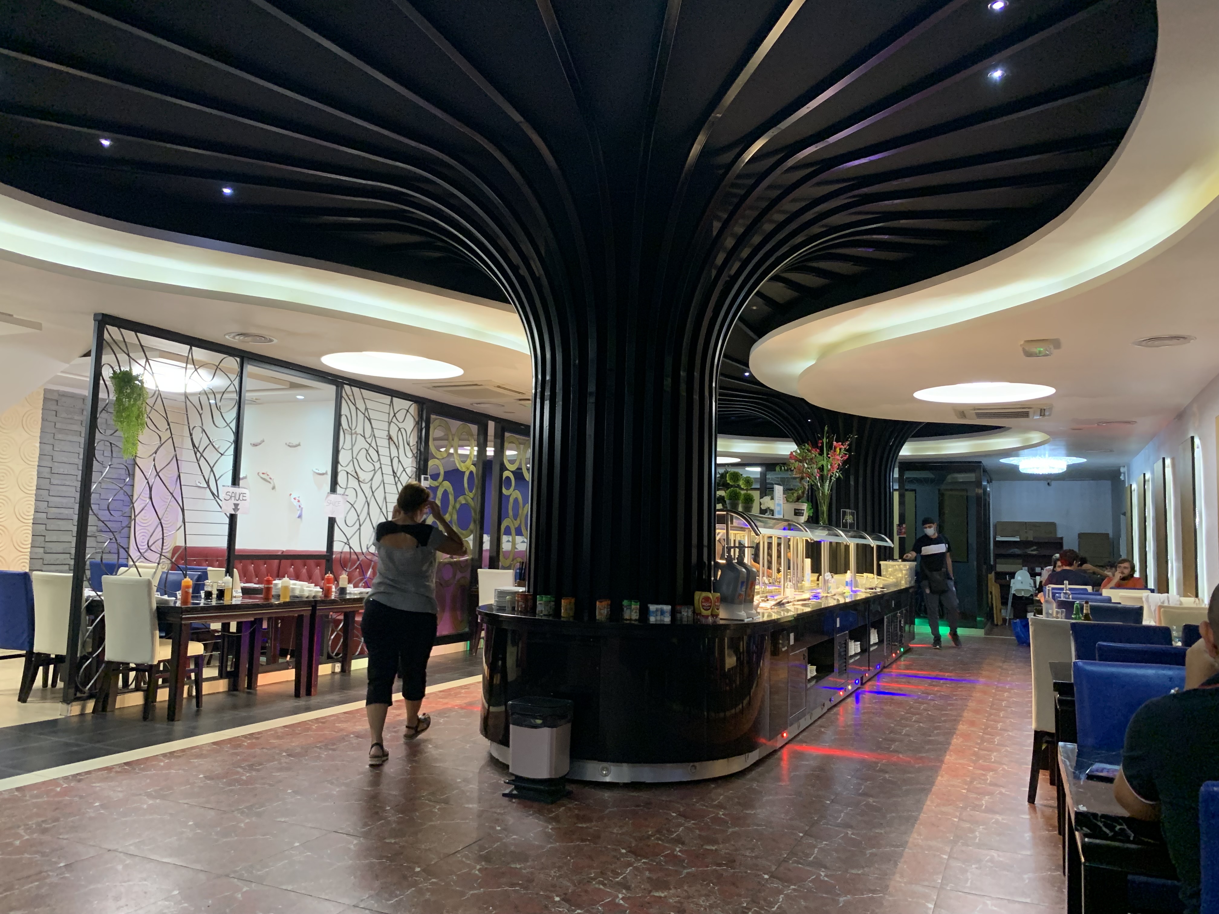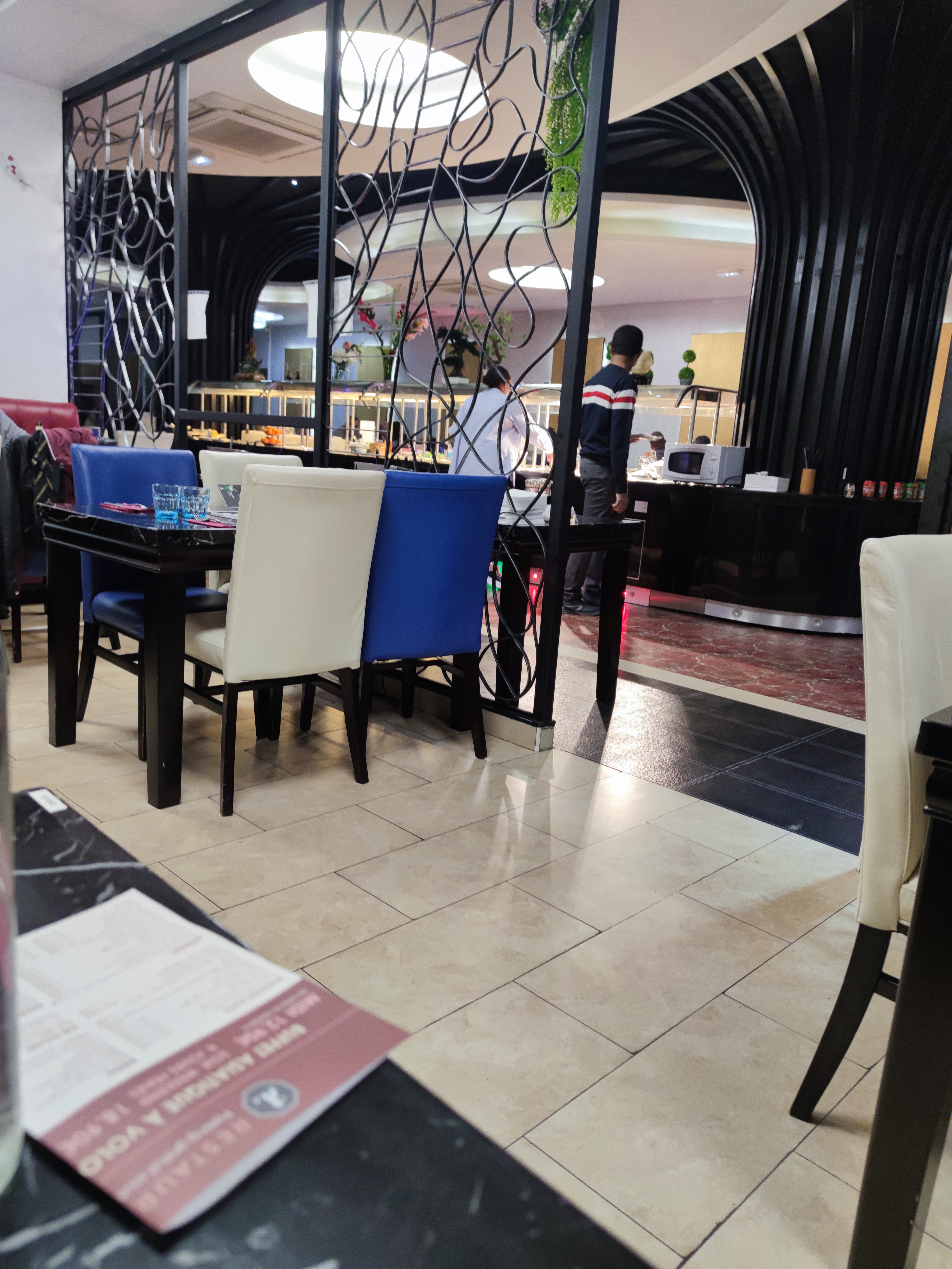 Le restaurant lui-même est magnifique il y a plusieurs variétés super très belle salle l'accueil et bien chaleureux elle mérite vraiment 5 étoiles et je vous conseille à y faire un tour non c'était la première fois d'y aller là-bas j'ai trouvé le cadre agréable