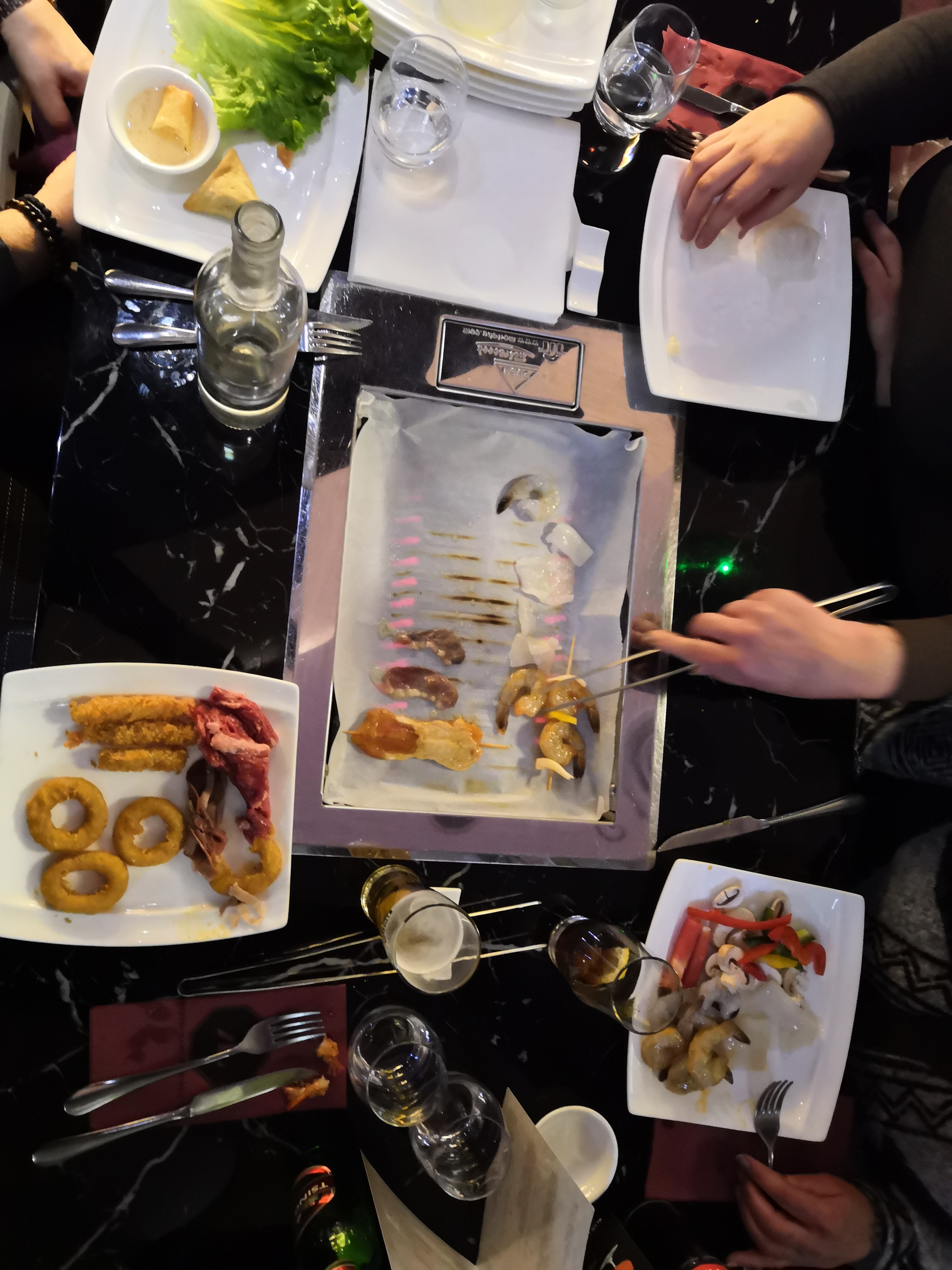 Intérieur et ambiance très sympa, moderne même futuriste ! On a aimé la plancha que l’on a par défaut sur les tables pour griller les brochettes et les quelques fruits de mer. Par contre comme tous buffets à volonté on se pose des questions sur la fraîcheur des plats. Tout ce que l’on a pris était mangeable et on n’est pas tombé malade mais on sent que la qualité n’est pas spécialement au rdv ! Buffet correct pour un peu plus de 10 euros à volonté il ne faut pas s’attendre à un repas de luxe..