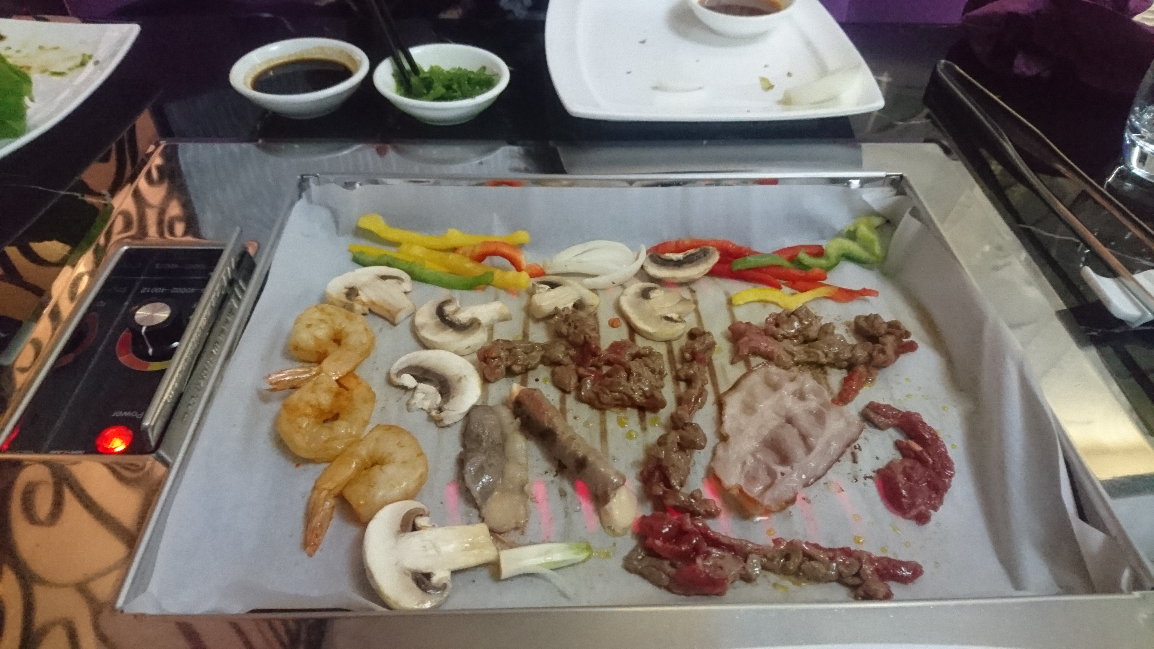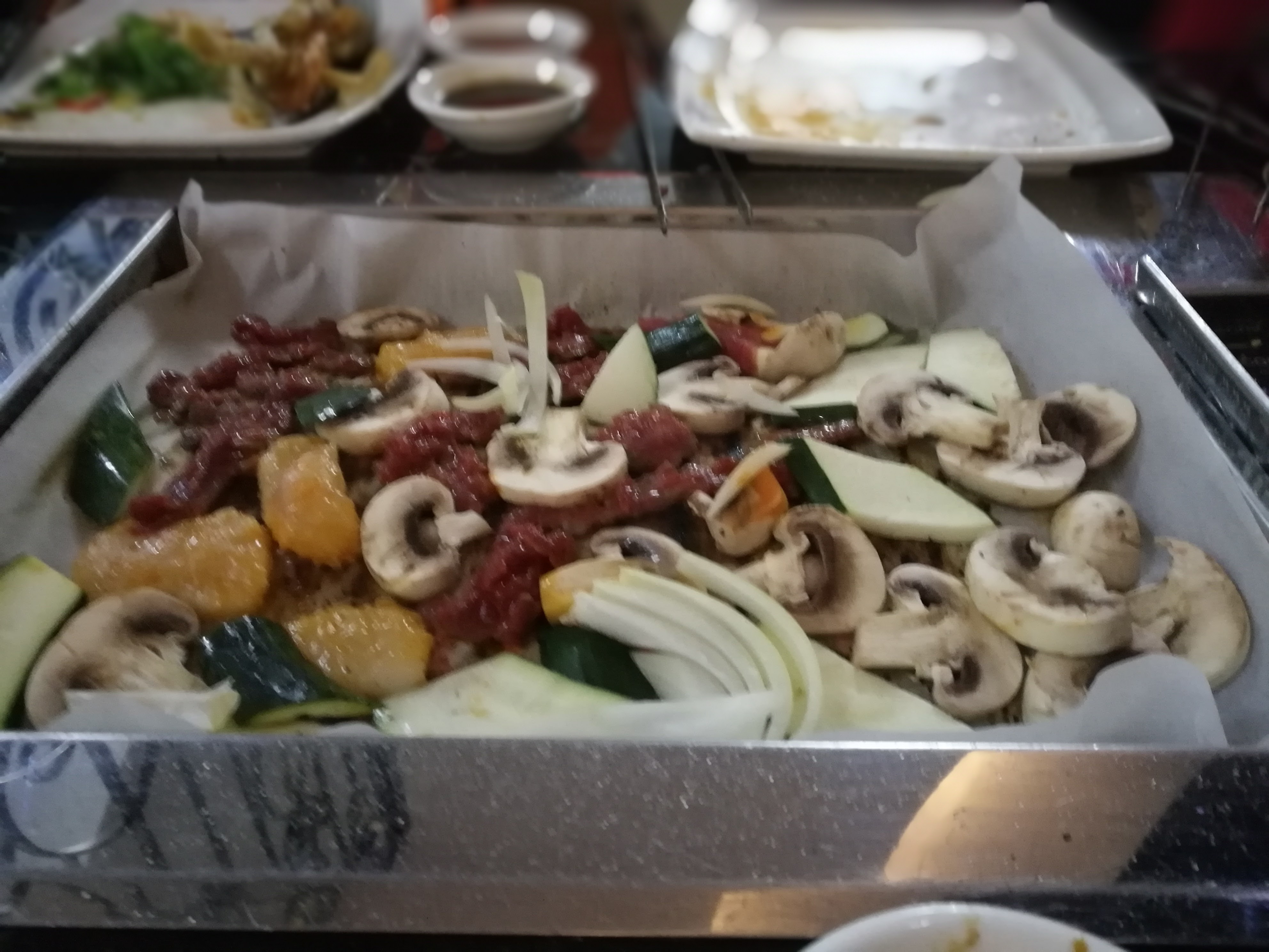 Un peu déçue du buffet qui manque de choix, surtout du côté des desserts. La présence d'une plaque chauffante au milieu de chaque table est plutôt conviviale.