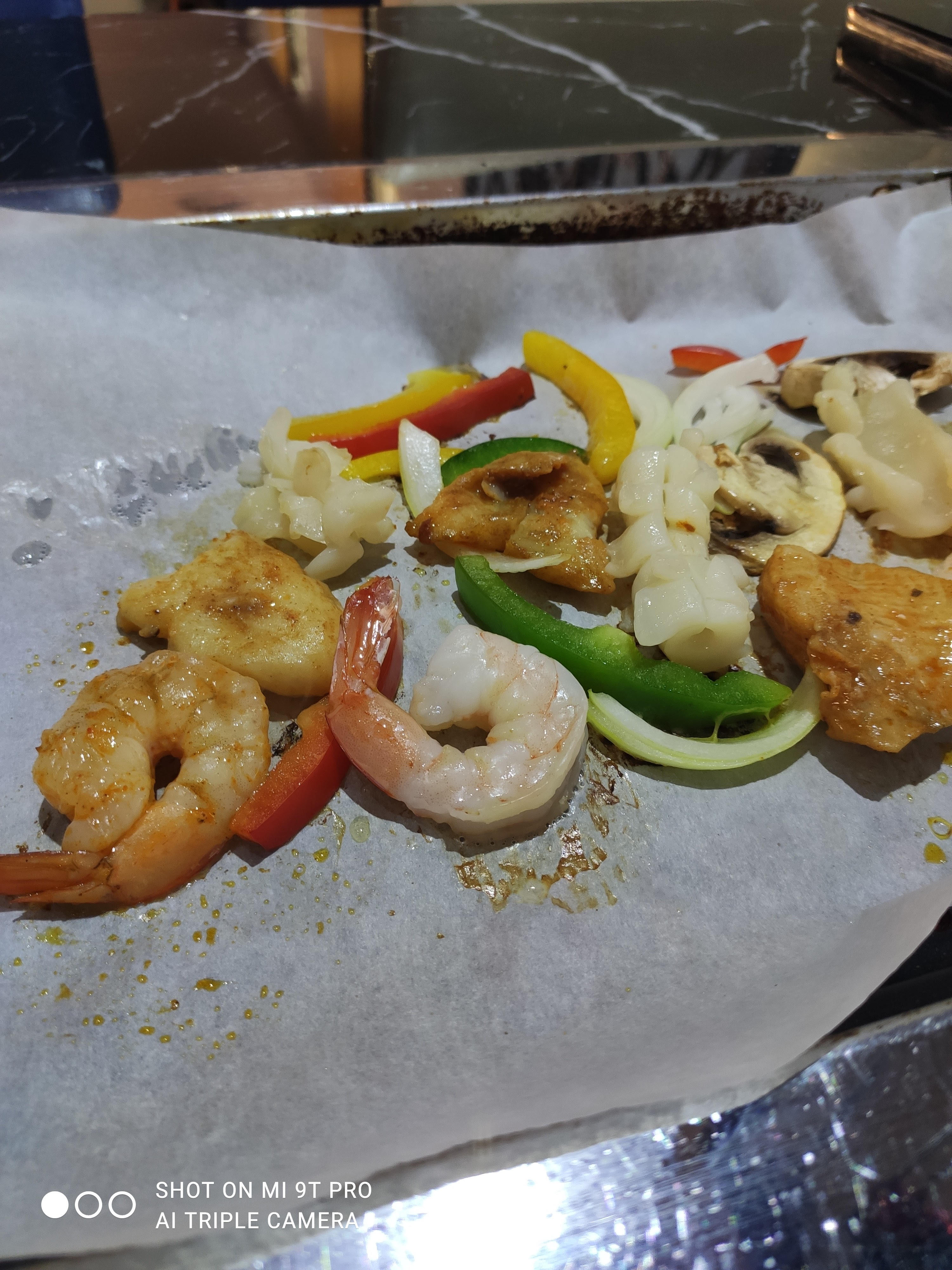 La nourriture était bonne mais dommage pour le grill un seul papier à plusieurs sa devient un peu messy surtout si vous avez des régime alimentaire différent (allergie crevette ex) le rapport qualité prix est ok