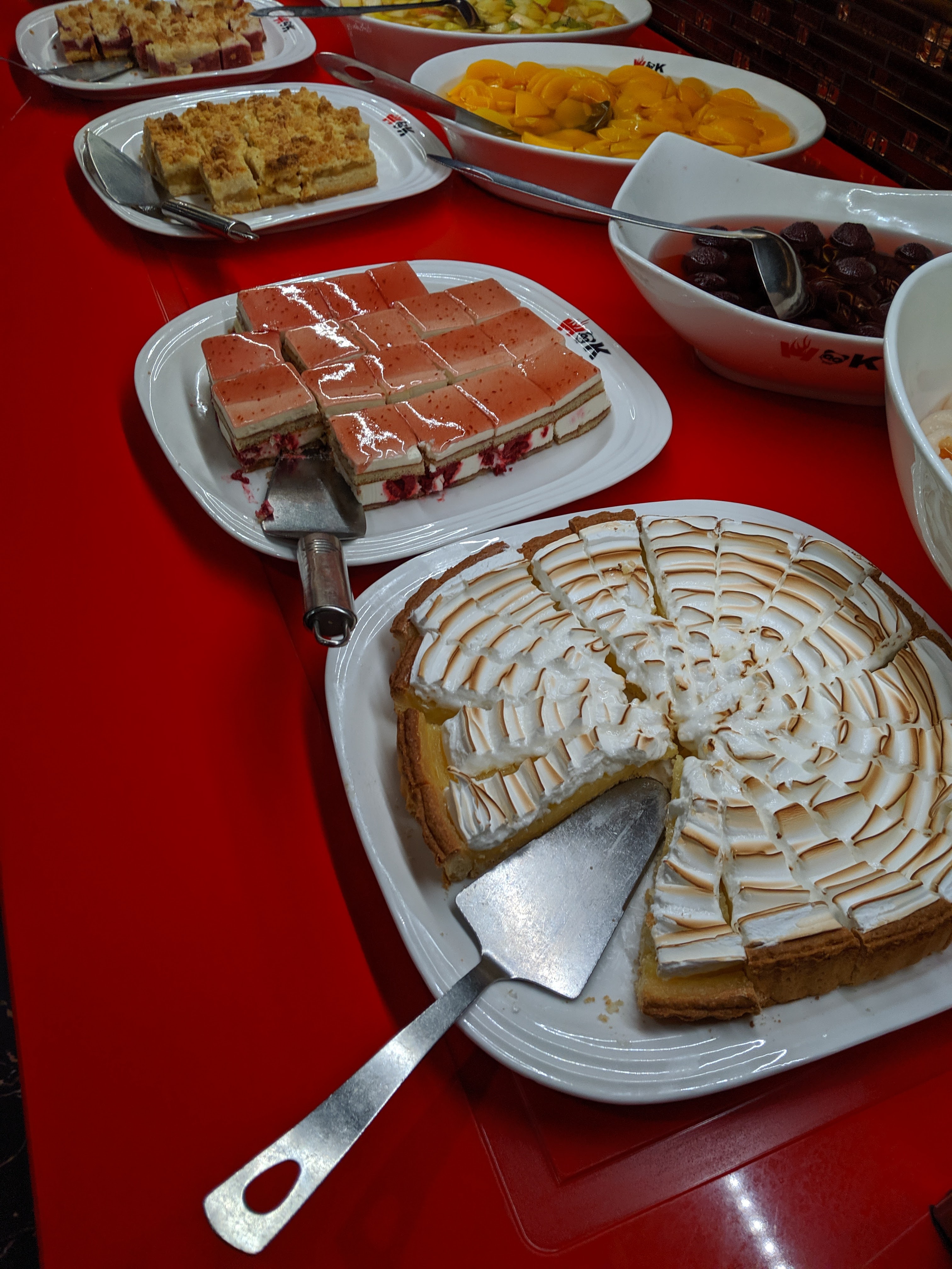 Grand buffet. Malheureusement tout n’est pas bon. Assez déçue par le wok (mais cuisinier sympa). La sauce aigre douce a plutôt le goût de ketchup. Large choix de desserts même s’ils sont quasiment tous surgelés, les petits muffins au chocolat sont bons. Rapport qualité/prix pas terrible.