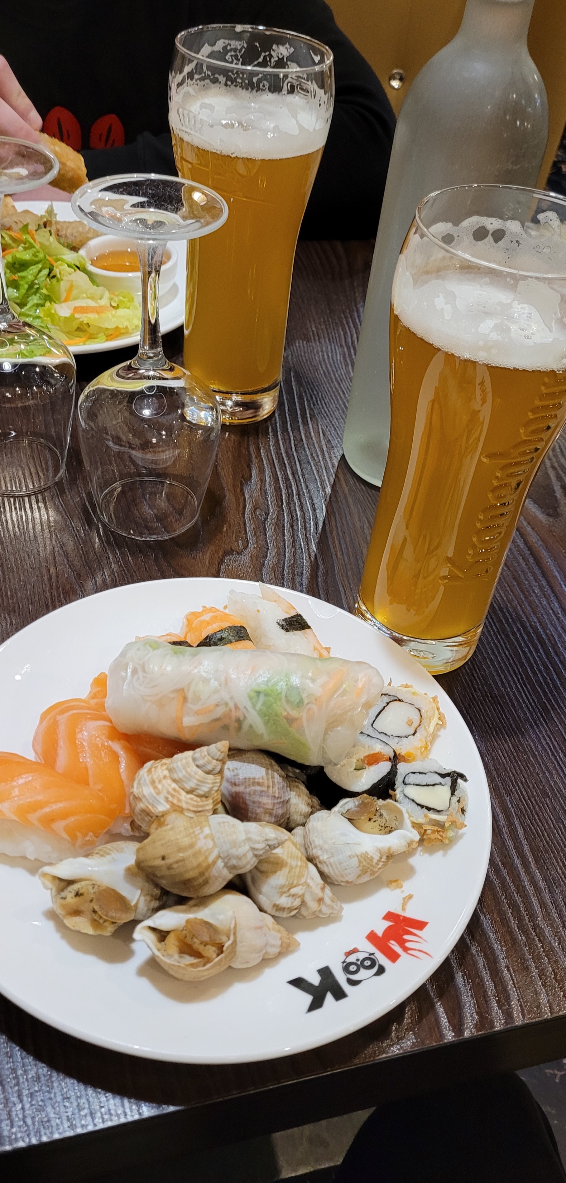 Dîner pour six juste avant Noel - Sushi et wok, très bien, vraiment, grand choix de viande et légumes frais, le reste hélas pas du tout au niveau.. Beaucoup de choix mais des plats à base de produits industriels et de viande bas de gamme, les trois quarts des fritures viennent directement du congélateur d'un grossiste - heureusement parmi les nombreux dessert, certains relèvent le niveau - évitez les bacs de glace premier prix - les cocktails sont très bons et préparés devant vous, ceux sans alcool sortent d'un bidon. Dommage car équipe très sympathique, lieu de même - même si très mal insonorisé - gagnerait à proposer moins de plats de meilleur qualité, car on se perd avant de trouver le bon !