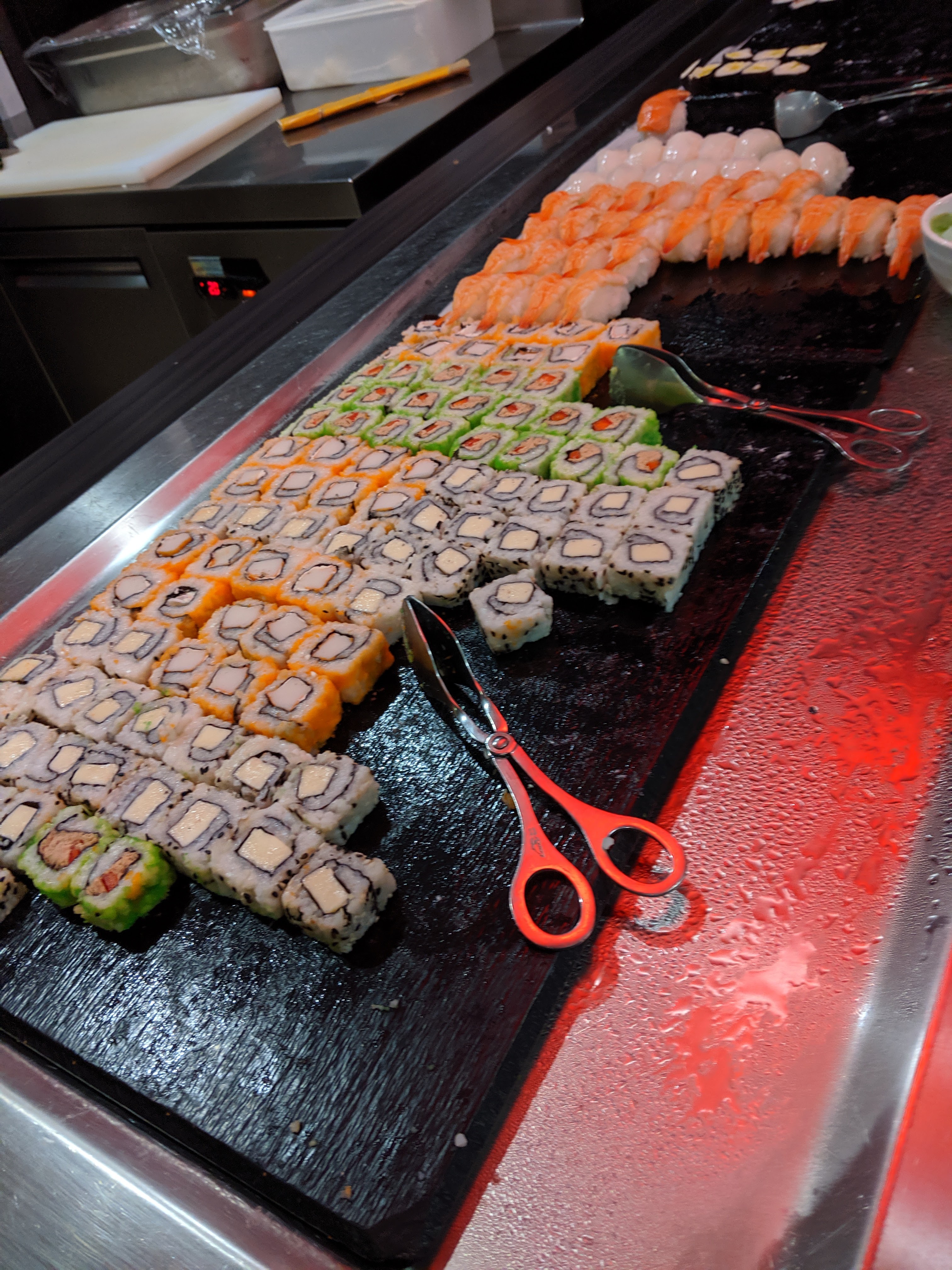 Énormément de choix des produits frais et des produits décongelés. Les sushis et des makis sont immangeable. On s'étouffe avec c'est tellement sec. Rapport qualité prix est justifié, on mange pas cher...