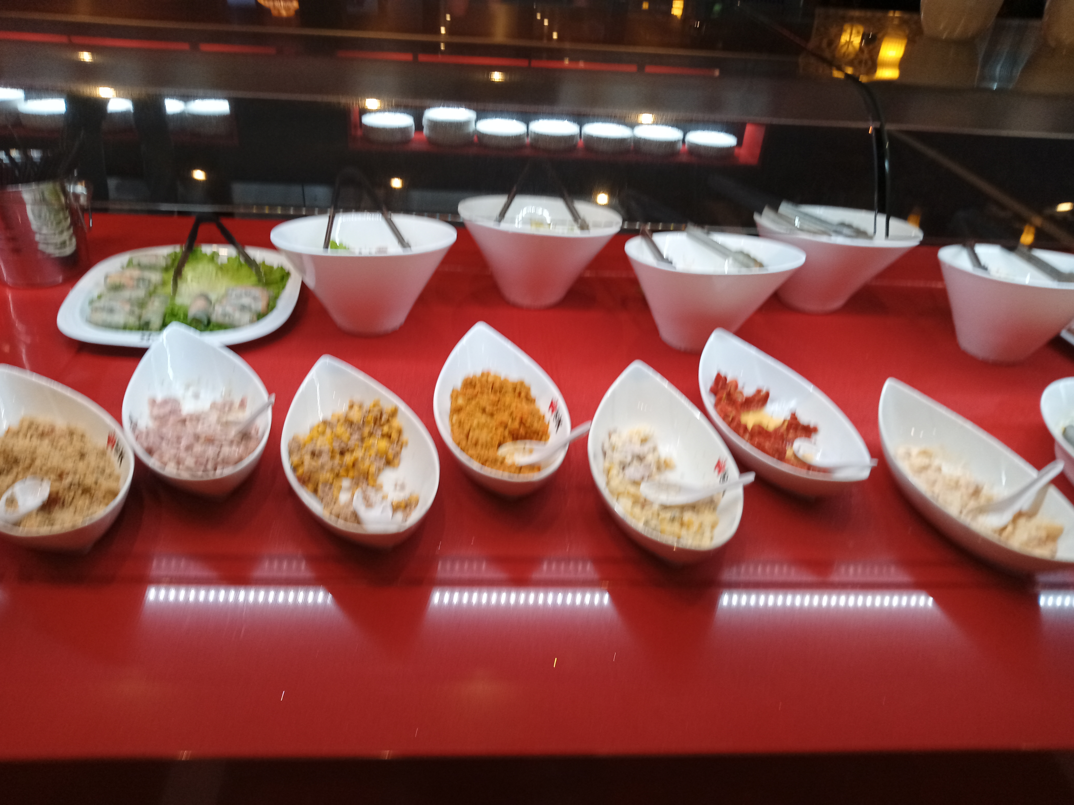 Plats assez variés. Bémol sur les entrées traditionnelles ( piemontaise, charcuterie, taboulé) qu'on a partout. Dans l'ensemble, les plats sont bons mais relativement gras et reaction allergique le lendemain sur 2 personnes, alors que ça nous été jamais arrivé sur les autres buffets asiatiques. Accueil agréable. Bémol sur un service trop rapide, les serveurs veulent débarrasser avant même les assiettes finies ou mises de côté.