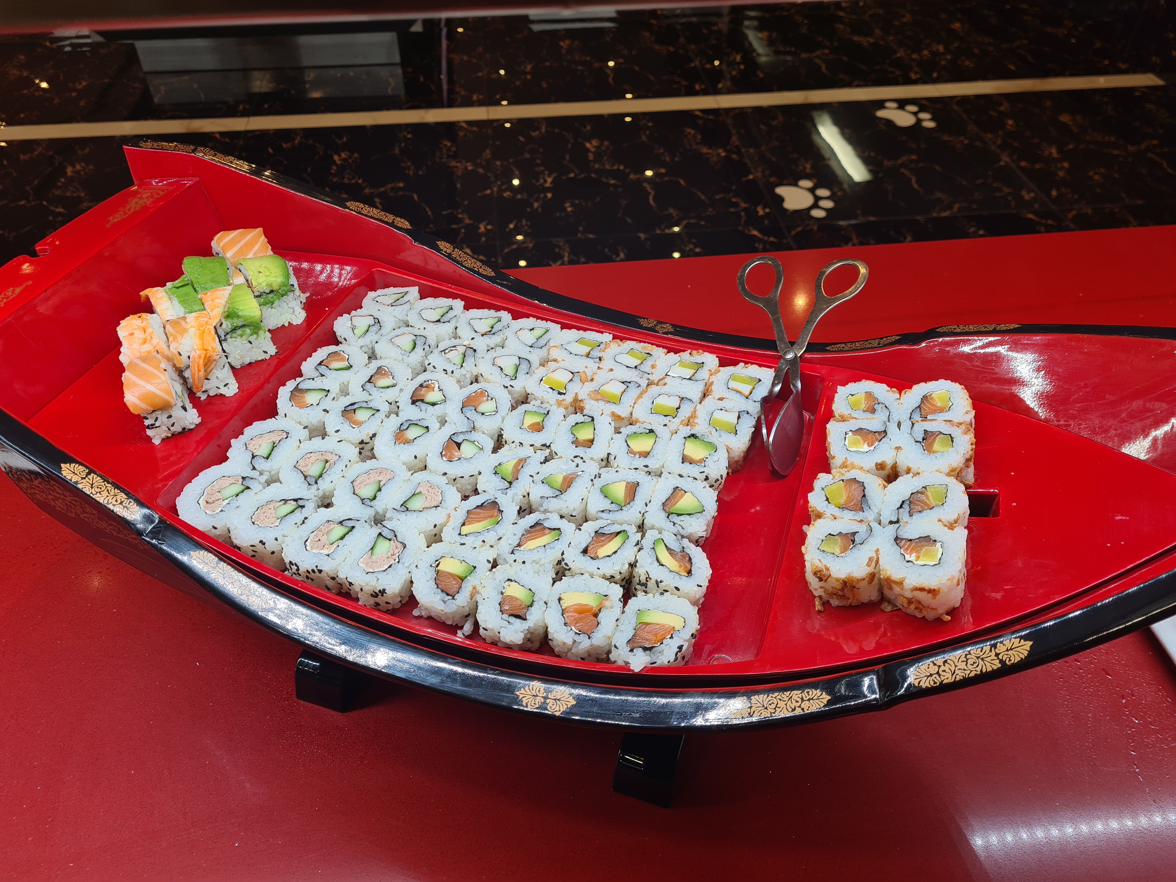 Nous arrivons à 4 à 21h. Nous attendons patiemment environ 10 min afin que l’ont nous propose une table . Nous partons directement au buffet afin de nous servir mais malheureusement avec regret nous constatons que la plupart des plats sont vides ou juste quelques restes … nous retournons à notre table et nous nous adressons à un serveur afin de le prévenir que les plats sont vides .. réponse de ce dernier sur un ton moqueur nous sommes samedi c’est le rush et en plus un manque de personnel il faut patienter le temps de faire cuire … nous patientons jusqu’à 22h15 mais à notre grand regret les plats sont vides pas de saumon, plus de riz et pas de sushis… quand aux desserts une catastrophe. Très déçu de cet endroit avec un personnel désagréable et qui n’écoute pas ses clients . A éviter
