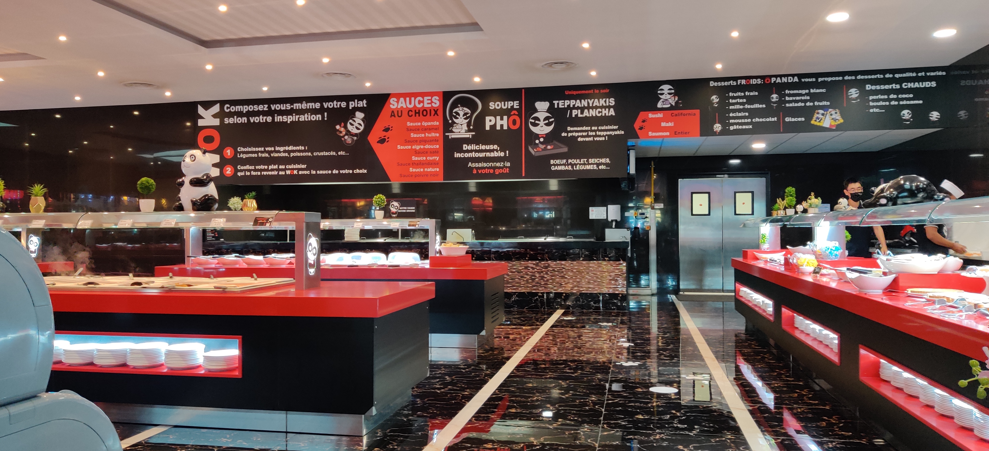 Un lieu bien agréable pour passer un bon moment en famille. Un buffet à volonté, un serveur très sympathique, un espace jeu pour les enfants qui peuvent aller et venir sans problème dans un espace ouvert et joliment décoré de multiples pandas. Cerise sur le gâteau un petit cadeau à la fin de la carte fidélité. Seul petit bémol beaucoup de produits surgelés sur le buffet.... Mais le chef peut vous faire virevolter des légumes frais dans son wok endiablé.... A conseiller !