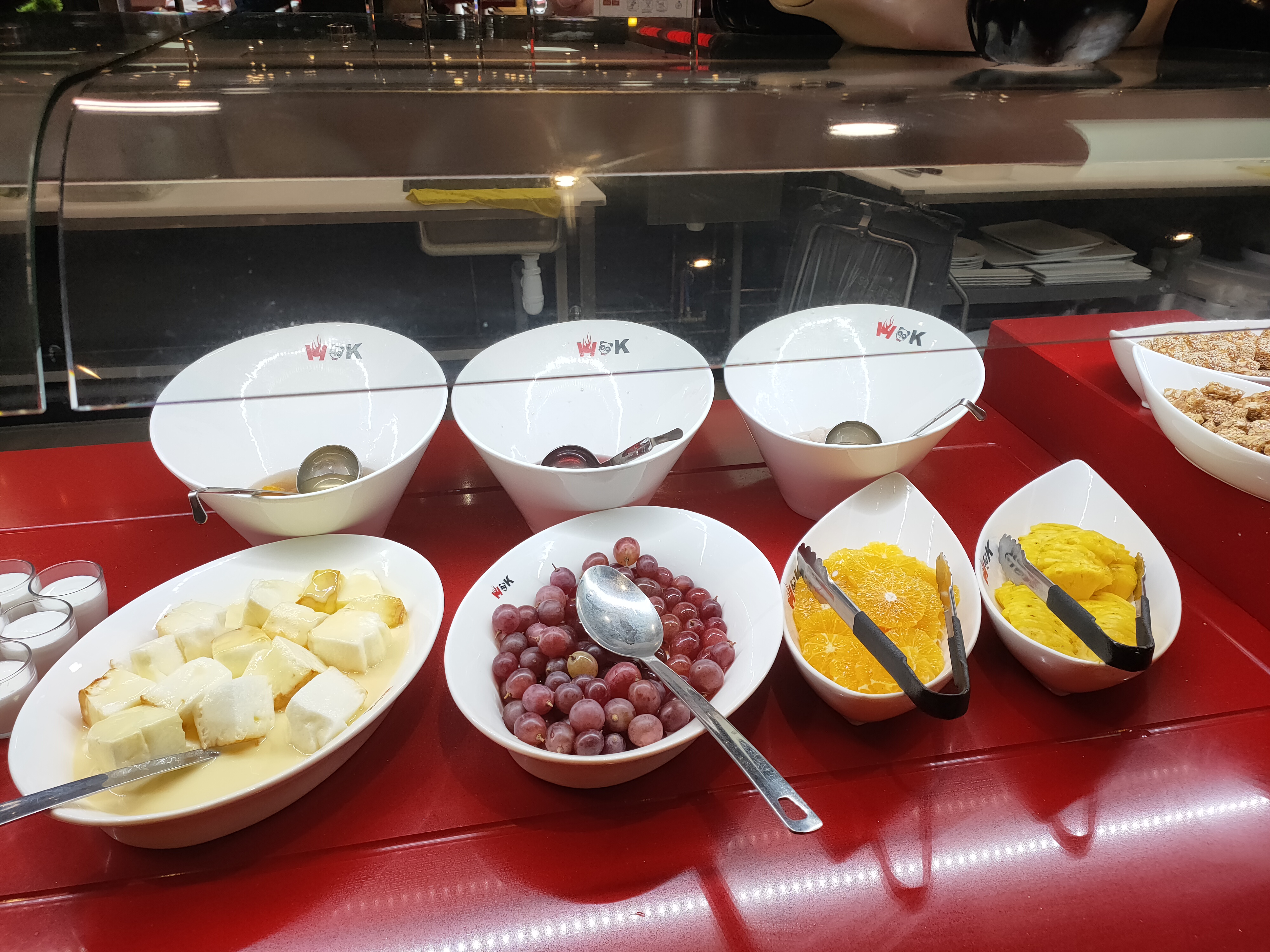 Frais et bon. Les plats et desserts sont bien maintenus et restent en bon état sans sécher. Le choix est plutôt satisfaisant. Très joli décor. Le wok n'est pas parfait mais ça suffit. Le personnel est très sympa. 14€ un midi en semaine, ce n'est pas excessif du tout. Les toilettes sont propres. Gel désinfectant disponible partout.