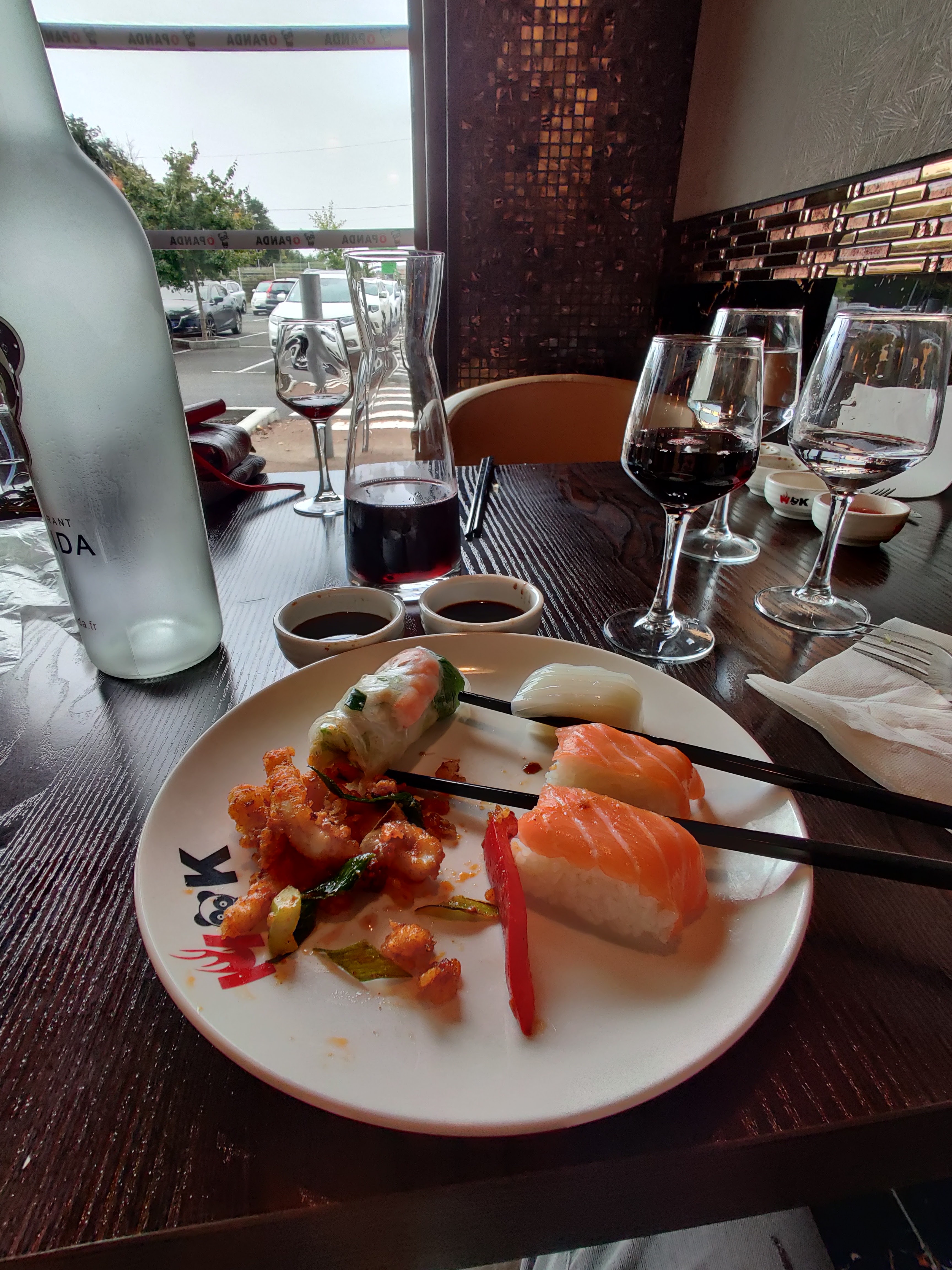 Le cadre est sympas... Trop kiki les petits pandas 🐼🐼🐼 Les plats sont bons dans l'ensemble, manque de choix dans les sushis, les viandes du boeuf aux oignons et du porc caramel sont décevantes, manque de goût. J'aurais également aimé savoir que le poulet o panda était piquant avant de me servir. En revanche les toilettes sont propres et le grand Monsieur un peu chauve avec des lunettes est très agréable, serviable et amusant.. Il faut le garder !!!!! (l'eau evian était bien à 20.9°) 😋