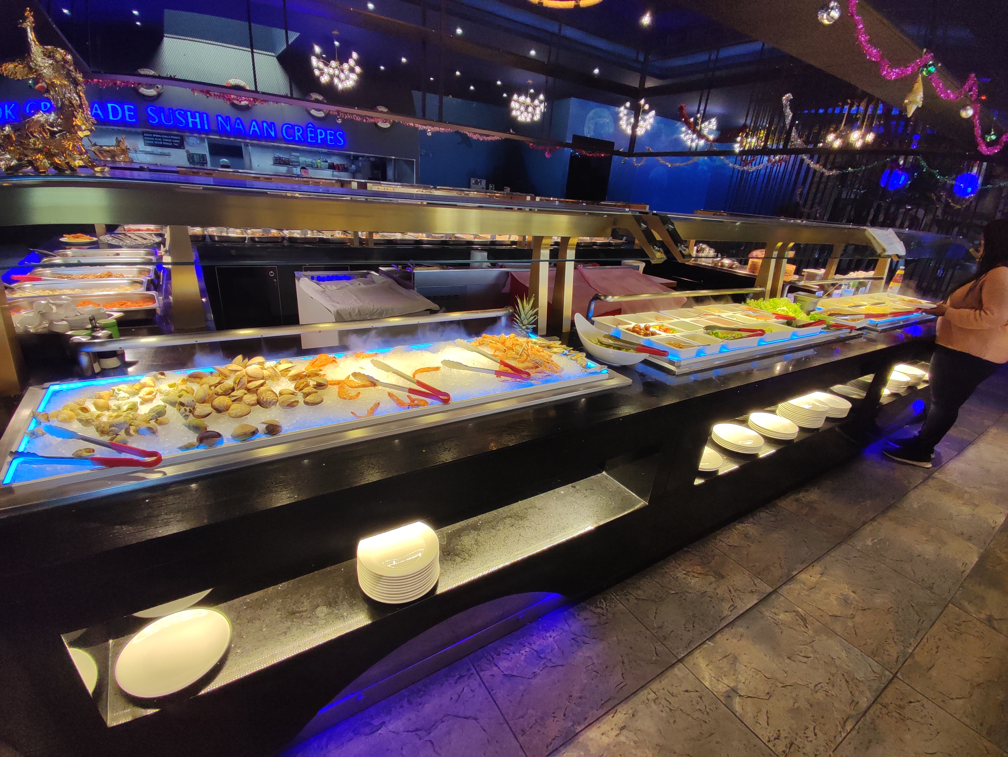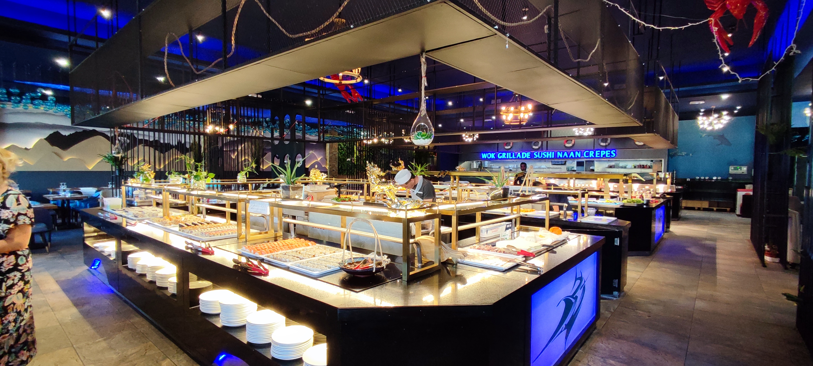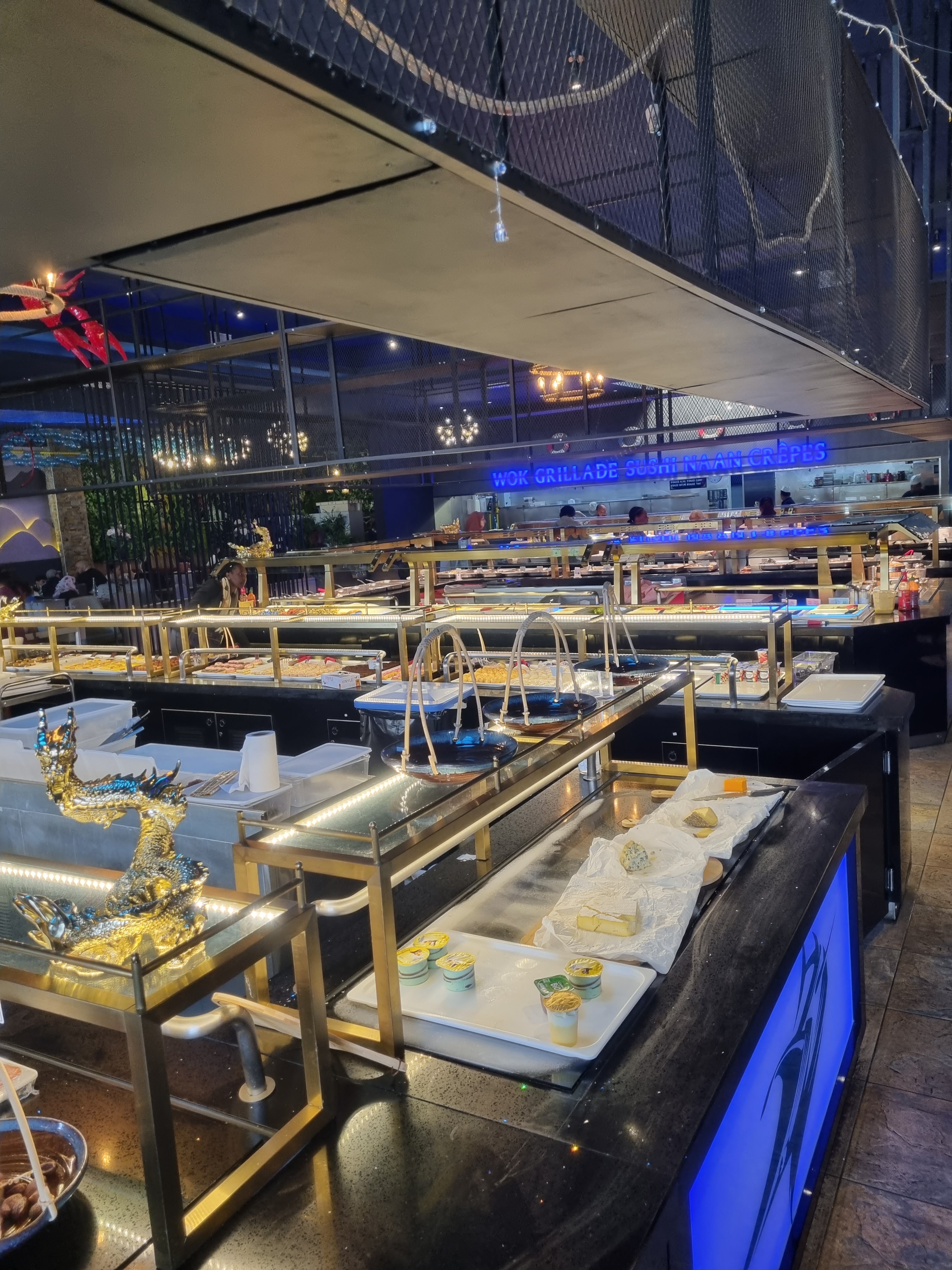 Nourriture sans gout , souvent trop salée impossible de finir le plat. Je n’y retournerais certainement pas. Il y a eu du choix c’est vrai mais franchement rien de ce que j’ai pu gouter n’était bon. Donc oui c’est grand, oui c’est pas mal niveau deco mais il ne faut pas regarder le gout. Et oui je confirme les autres avis qui disent que c’est du surgelé. en buffet à ce prix il ne faut pas s’attendre à de la grande cuisine, c’est sûr, mais bon peut être doser un peu le sel