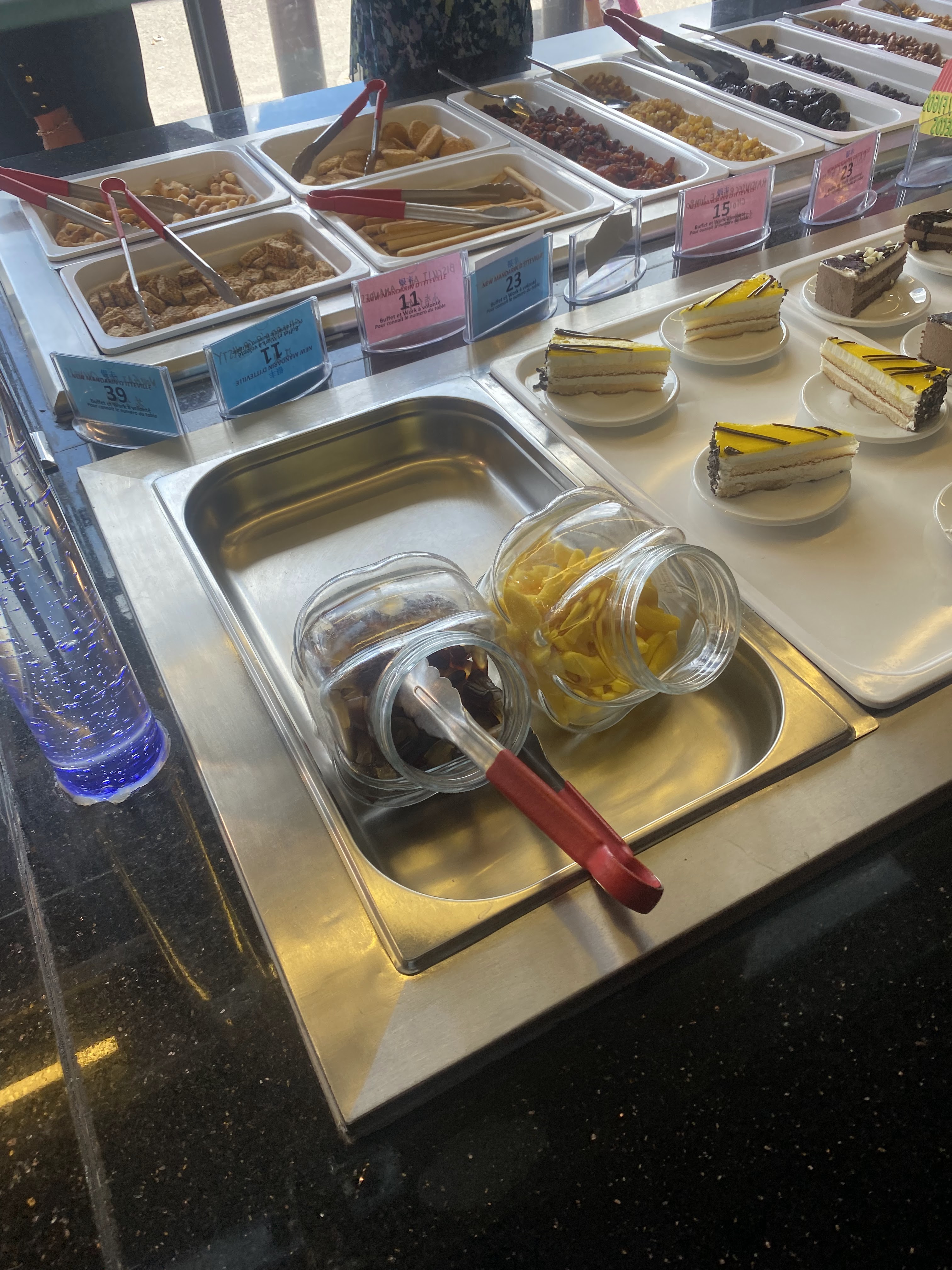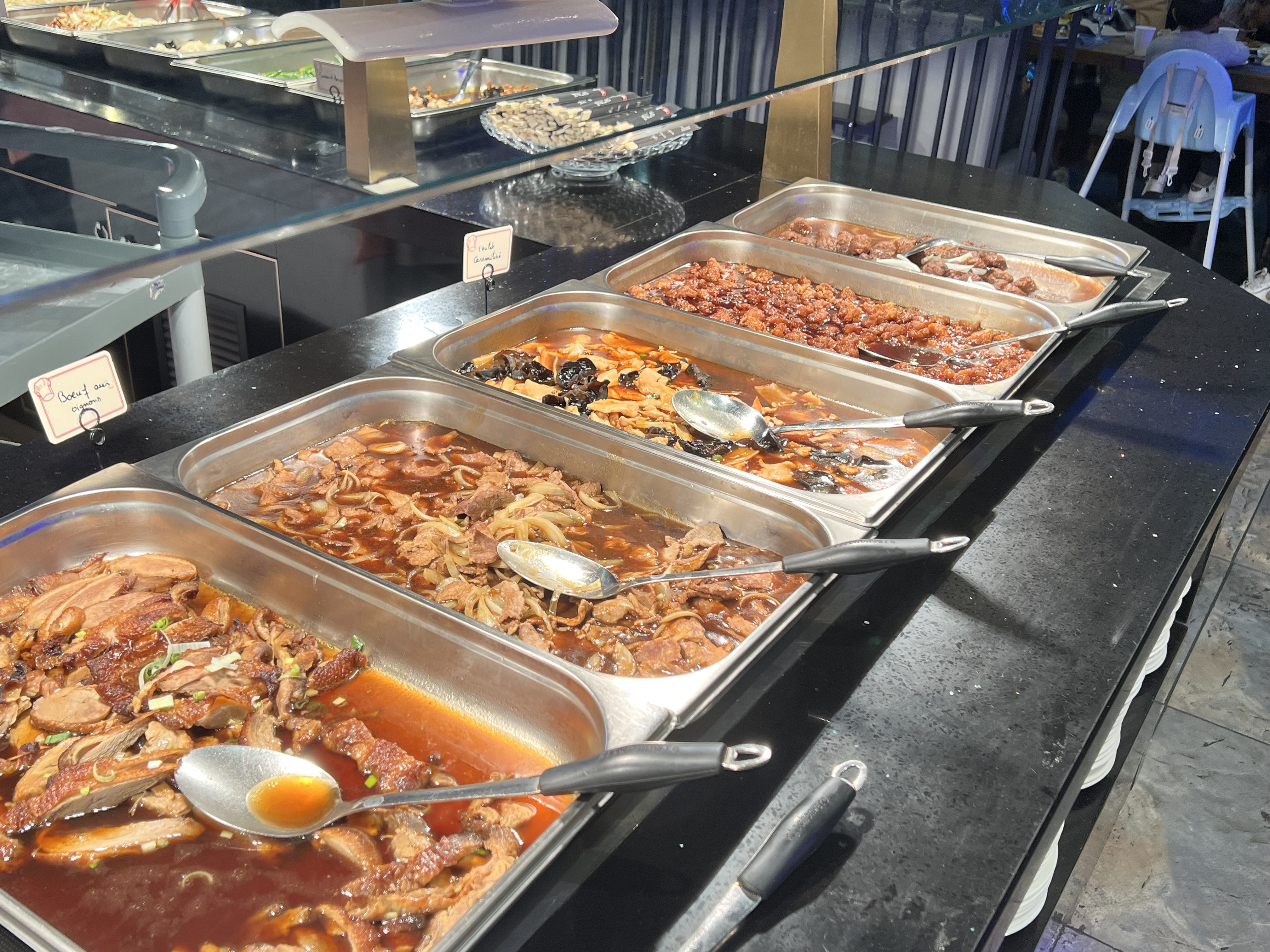Lieu extrêmement bruyant , le Buffet n’est pas réapprovisionné, service inexistant, et les desserts sont sans intérêt ! Ok venir au chinois pr manger un dessert c’est pas le But mais vu le Prix du buffet y’a un minimum à fournir de la qualité !!! À éviter il y a mieux