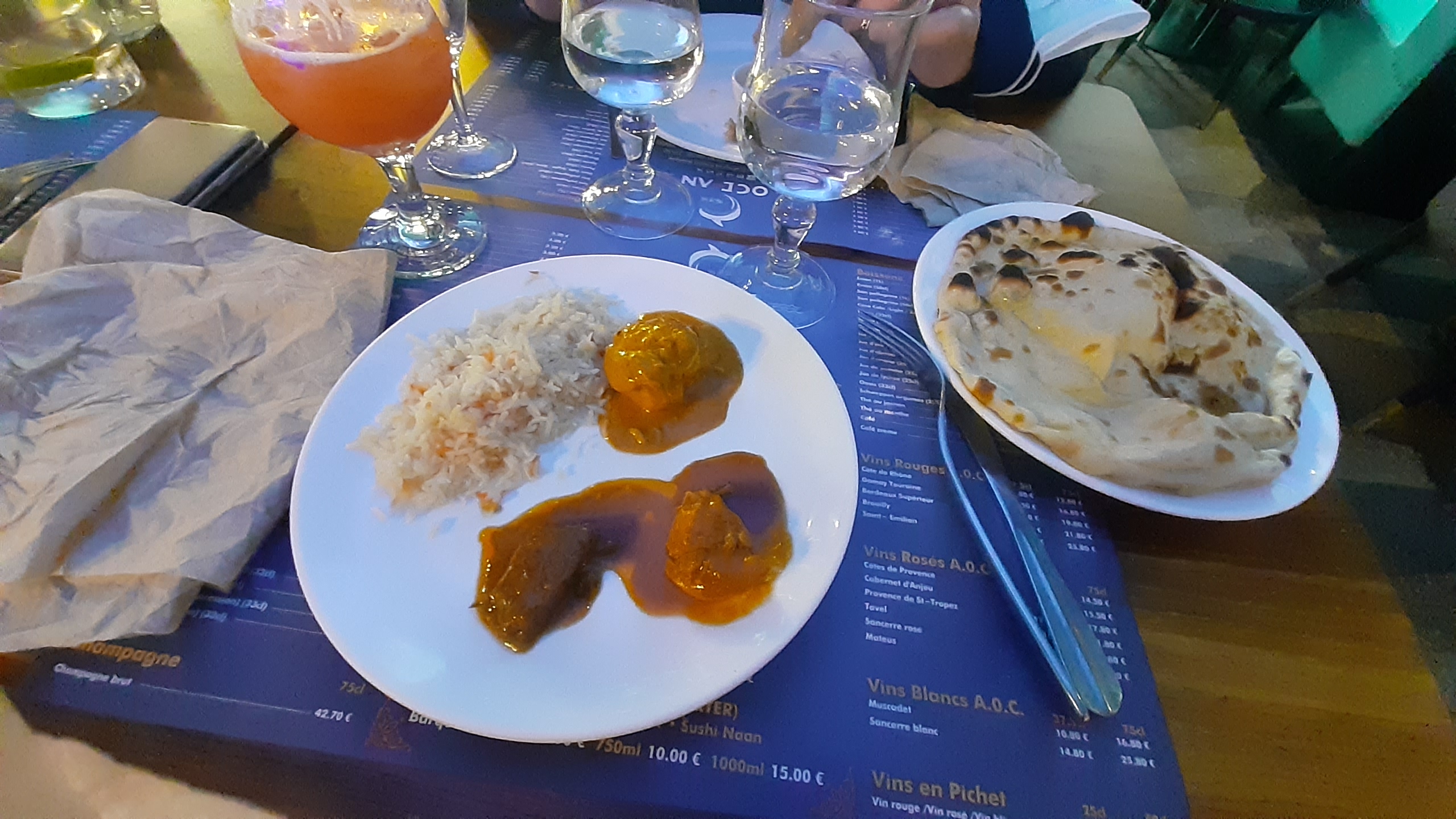 Je suis partie mangé avec des amis , l’ambiance à revoir et surtout le décor et les tables sont trop coller , Quasiment tout les plats sont surgelés y compris les desserts J’ai passez ma nuit à l’hôpital De plus côté nourriture indien rempli d’huile le riz aucun goût Payez 24.99€ pour mangez des trucs surgelés autant je les donnes ailleurs dans un bon restaurant