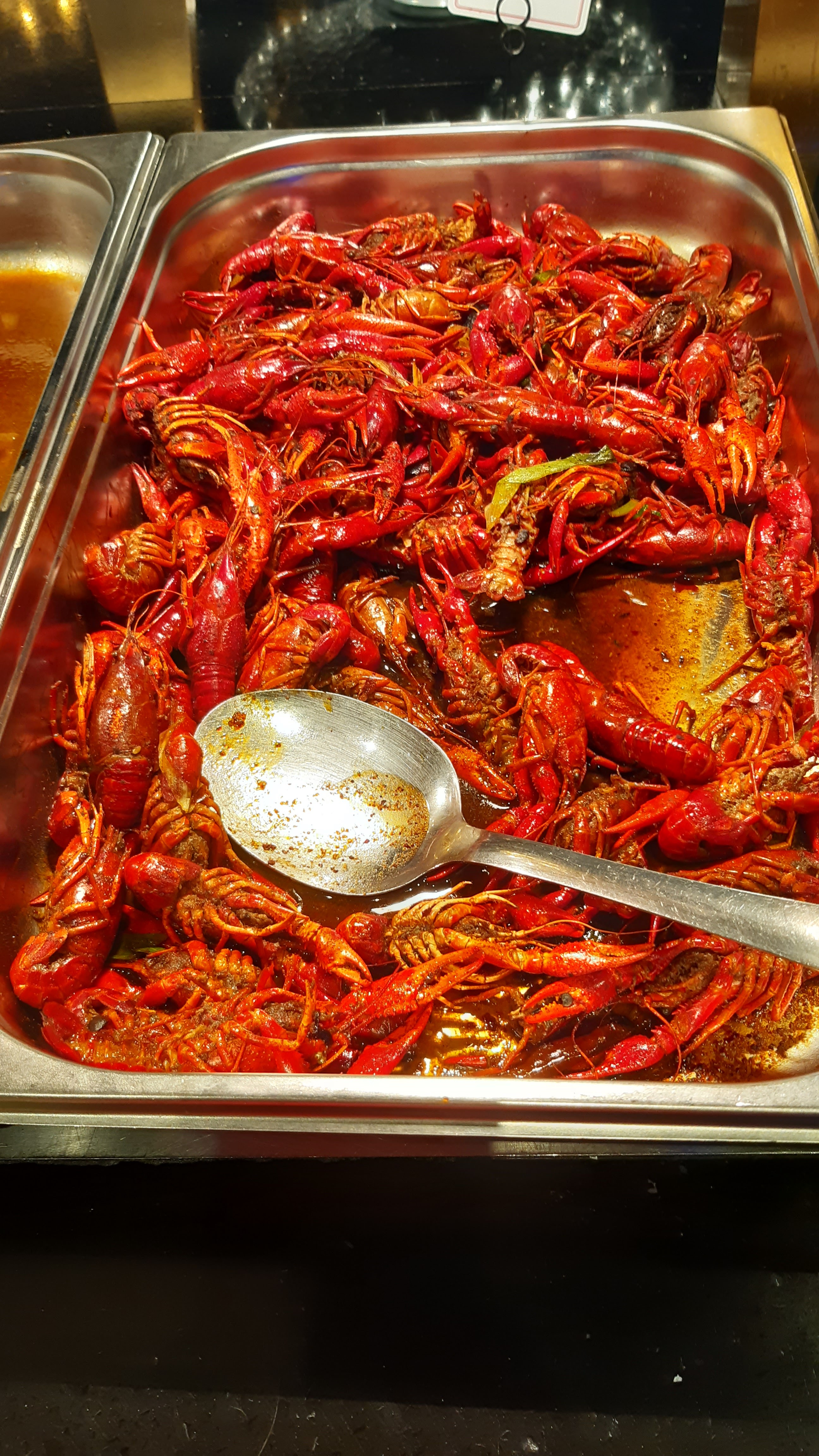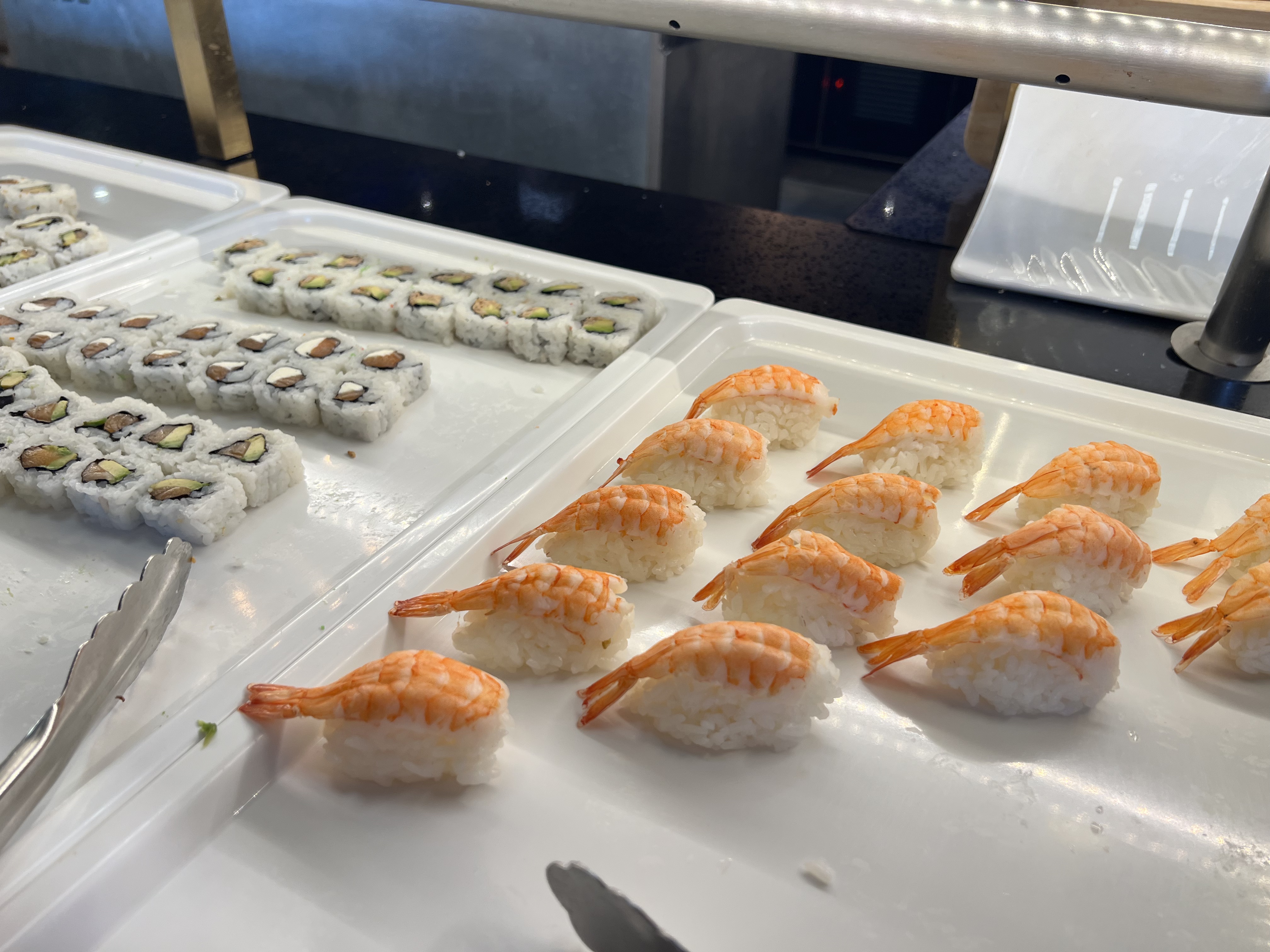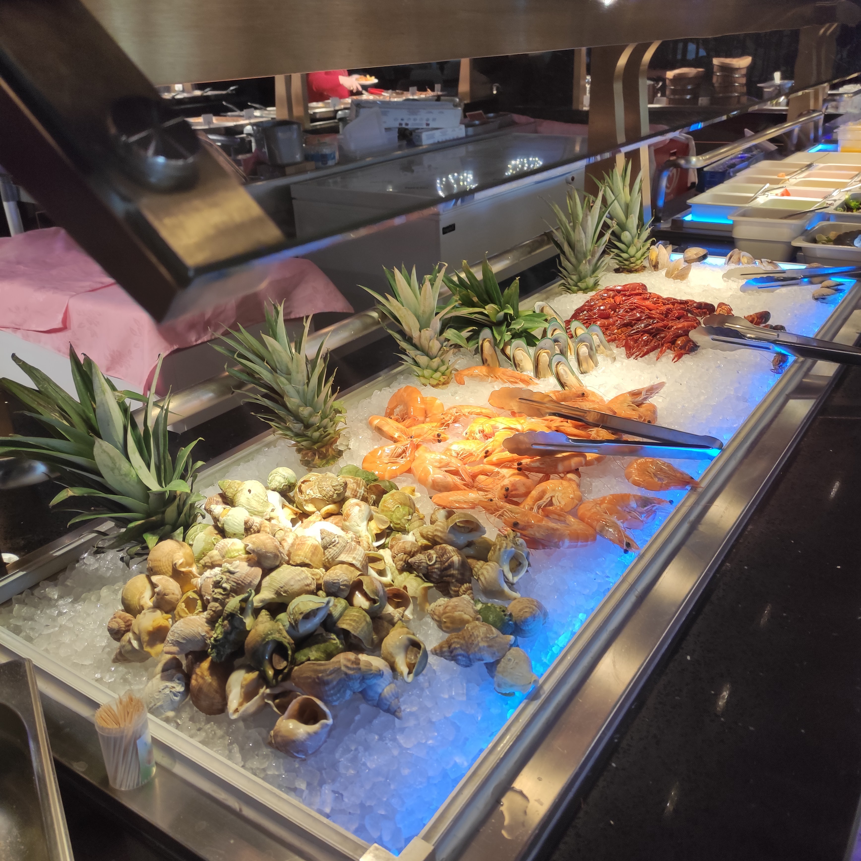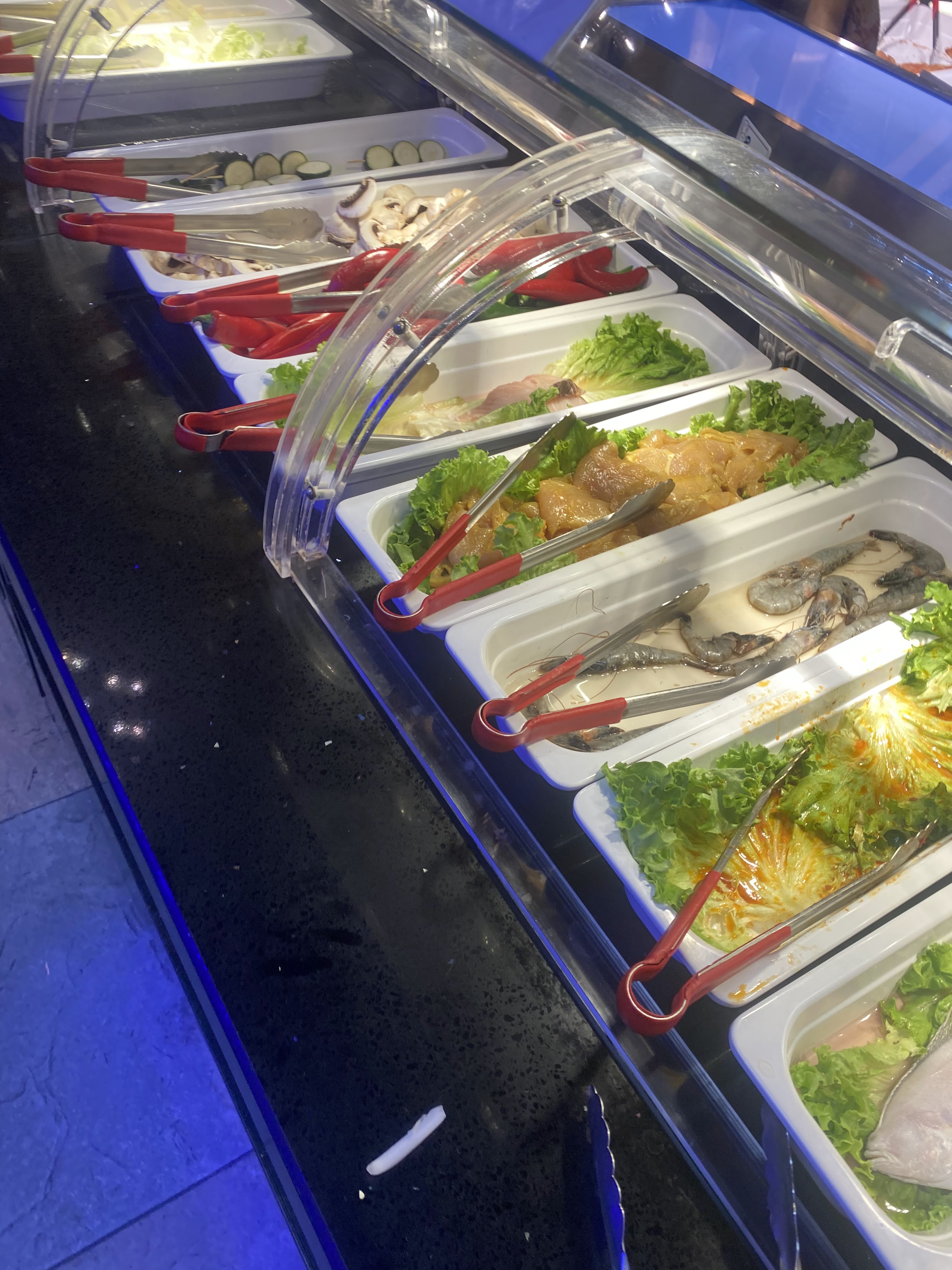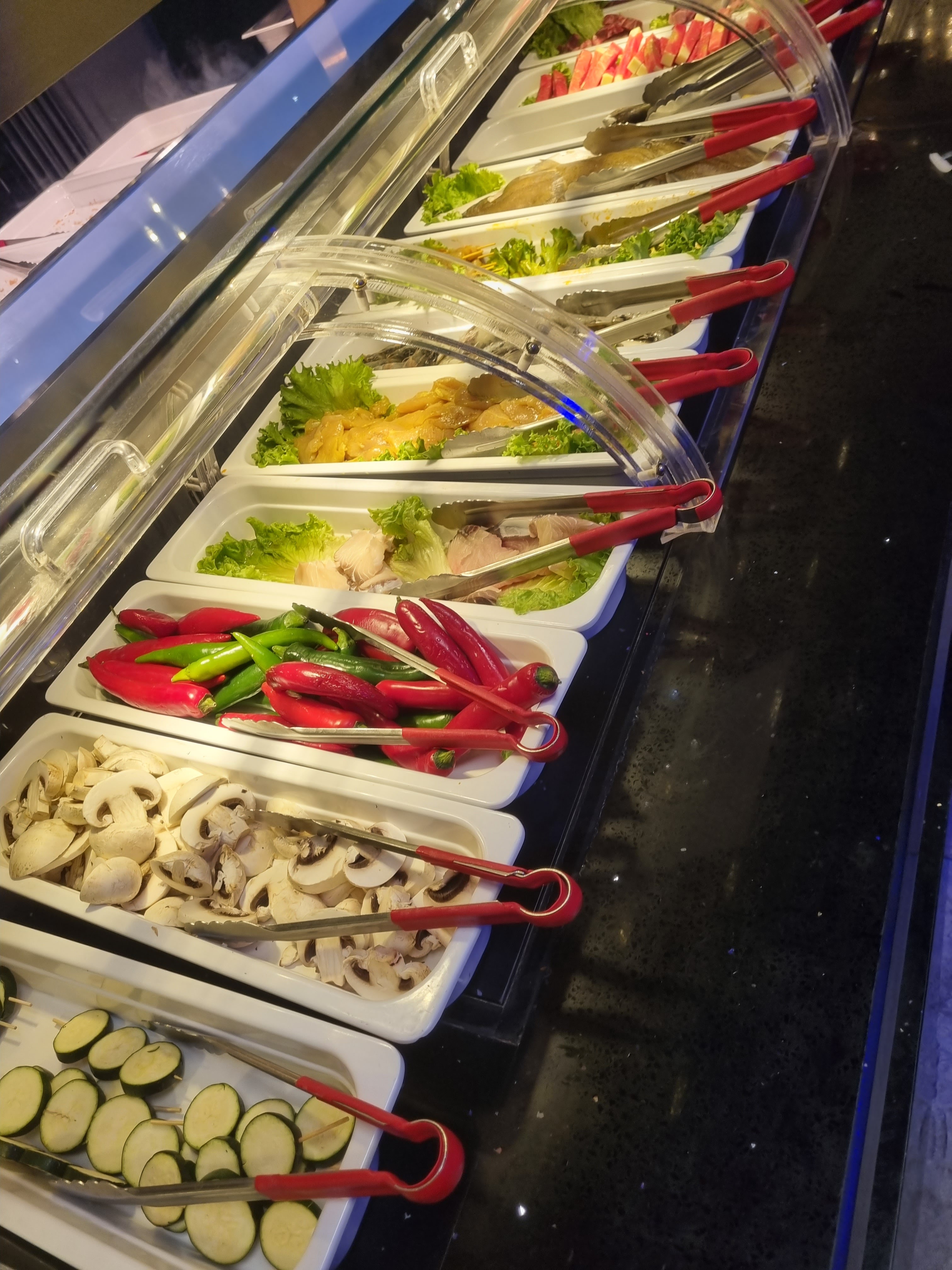 Faites très attention aux crevettes dans ce restau! Je suis tombée sur des crevettes avec un aspect vert , des tâches noires avec une odeur HORRIBLE ! Je l’ai signalé aux serveuses afin qu’elles retirent les autres crevettes du buffet mais elles n’ont pas pris la peine de le faire. C’est inadmissible et dangereux de laisser les clients consommer des produits avariés!!!