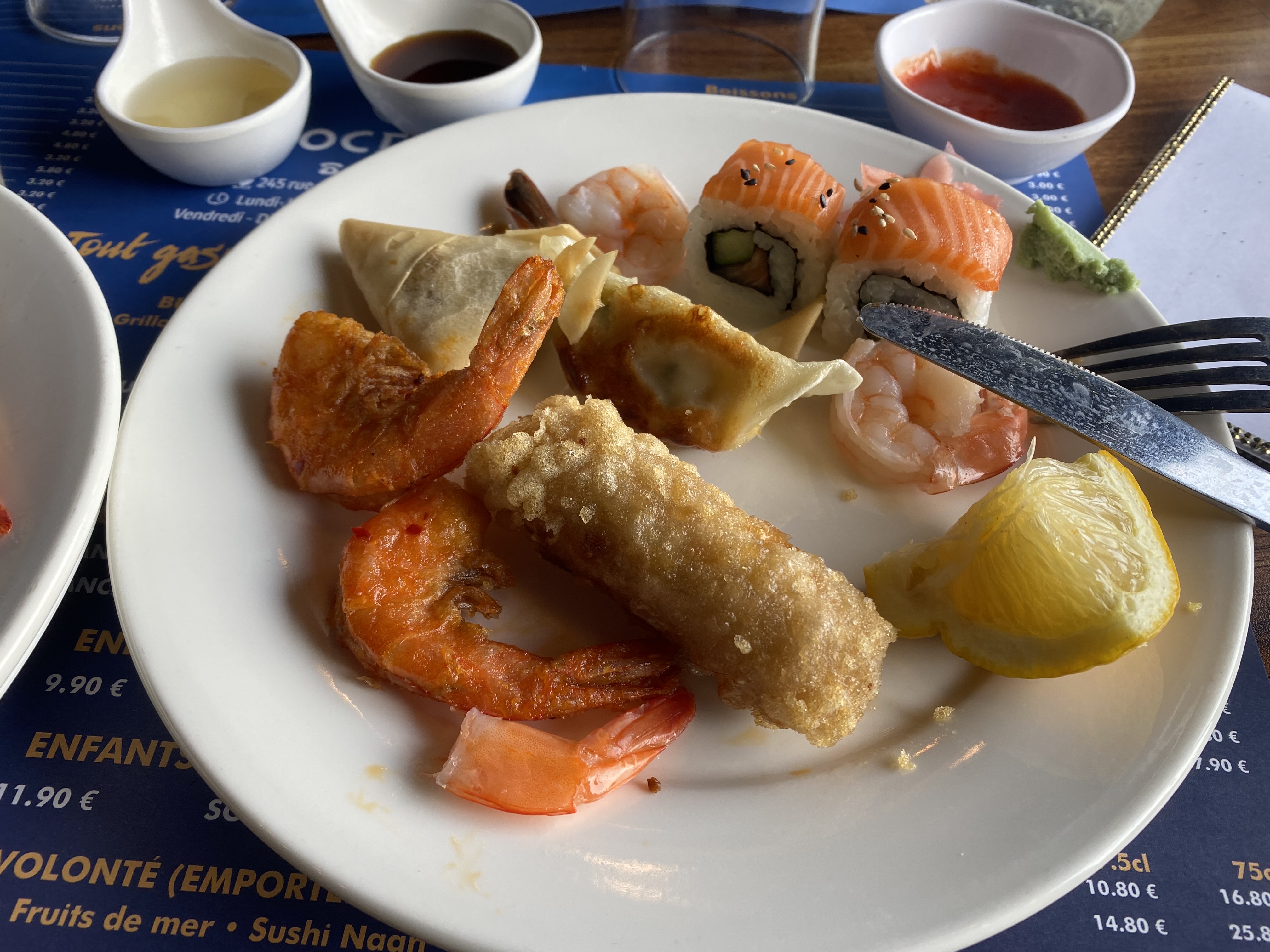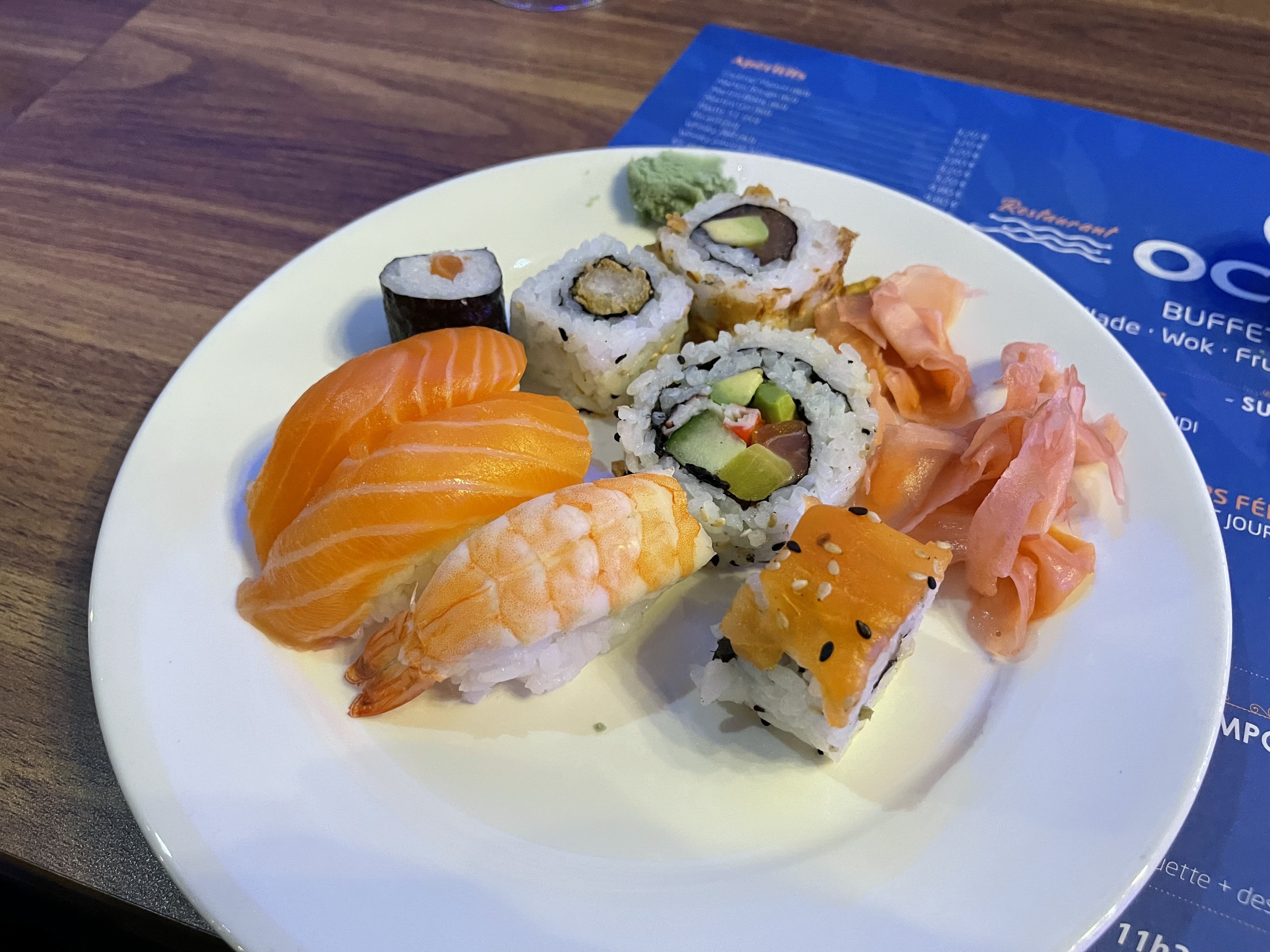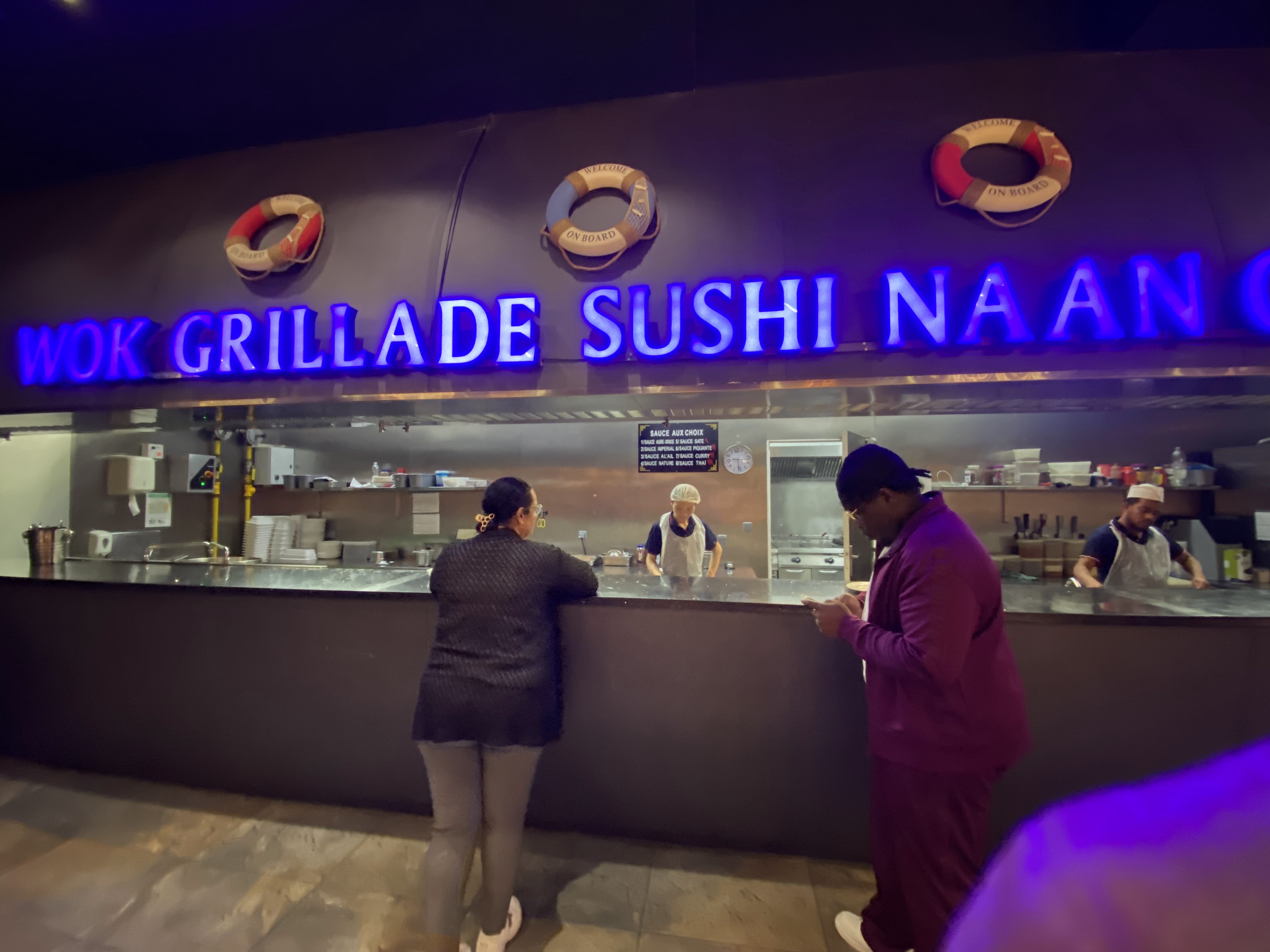 restaurant a volonté très sympathique. les serveurs sont très attentifs et vifs. les cuisiniers au wok sont compétents. l'ambiance maritime de la déco est géniale. les choix sont vraiment divers et variés j'aime beaucoup. seul bémol, les sushis et makis se vident rapidement, donc venez aux heures d'ouverture !