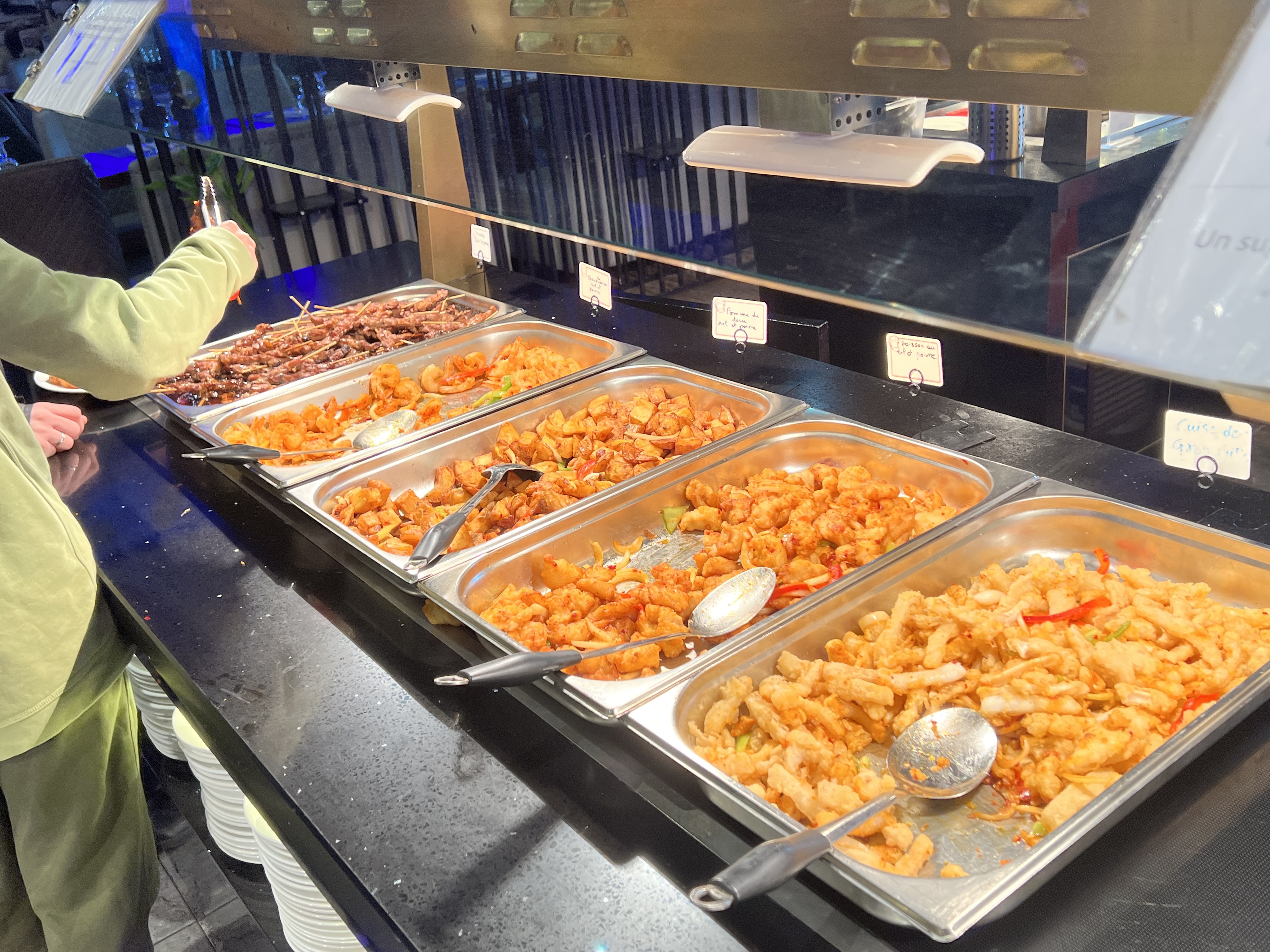 Bel établissement moderne, avec un buffet bien présenté. Les sushis étaient bons et le poulet sauce aigre doux était correct. En revanche les desserts sont des produits décongelés et vraiment indigestes.
