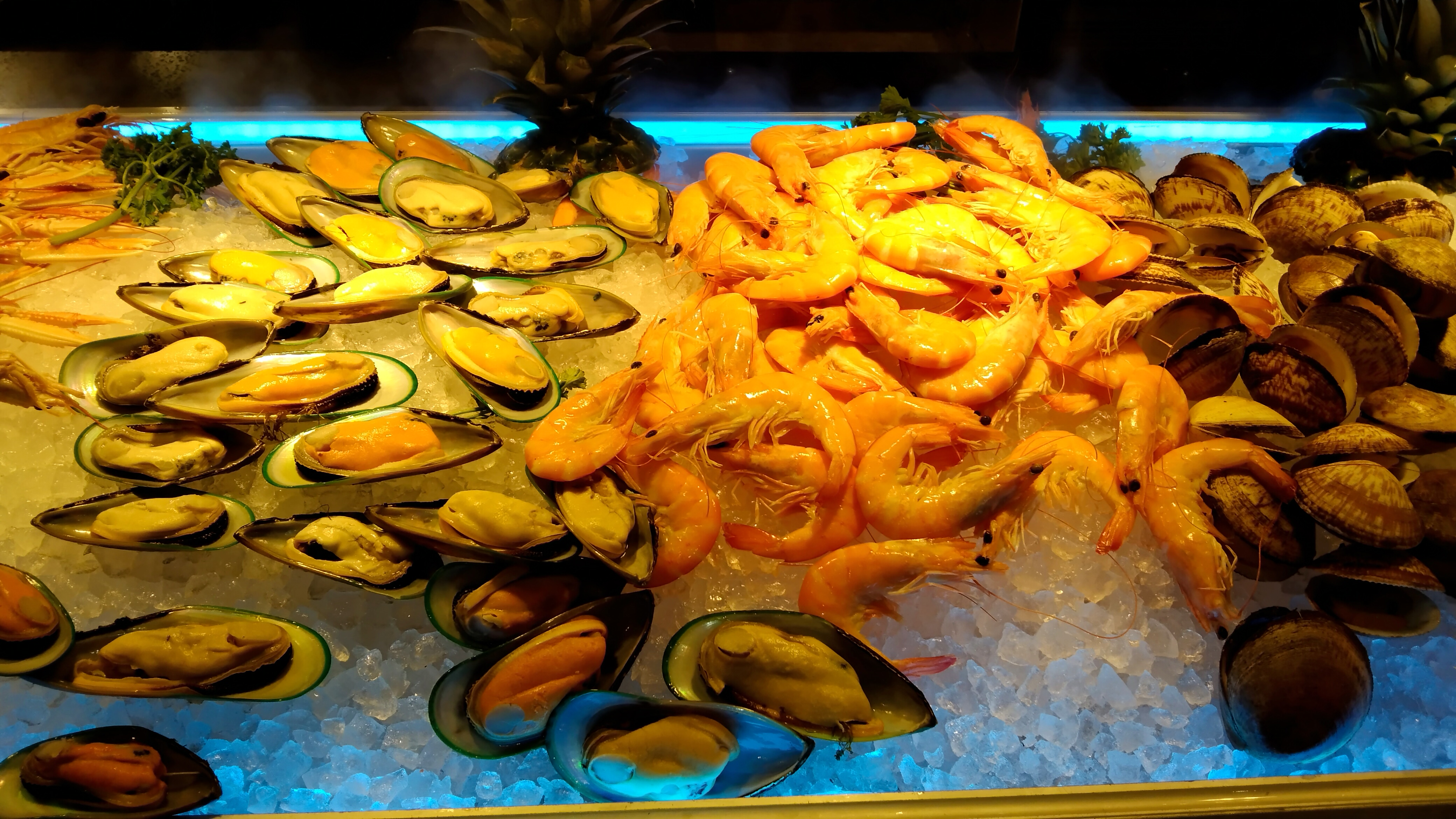 Les buffets sont à dévorer sans modération a commencer par les fruits de mer y compris des huîtres, les grillades, les desserts avec des fruits et un petit digestif servi généreusement par une serveuse souriante.