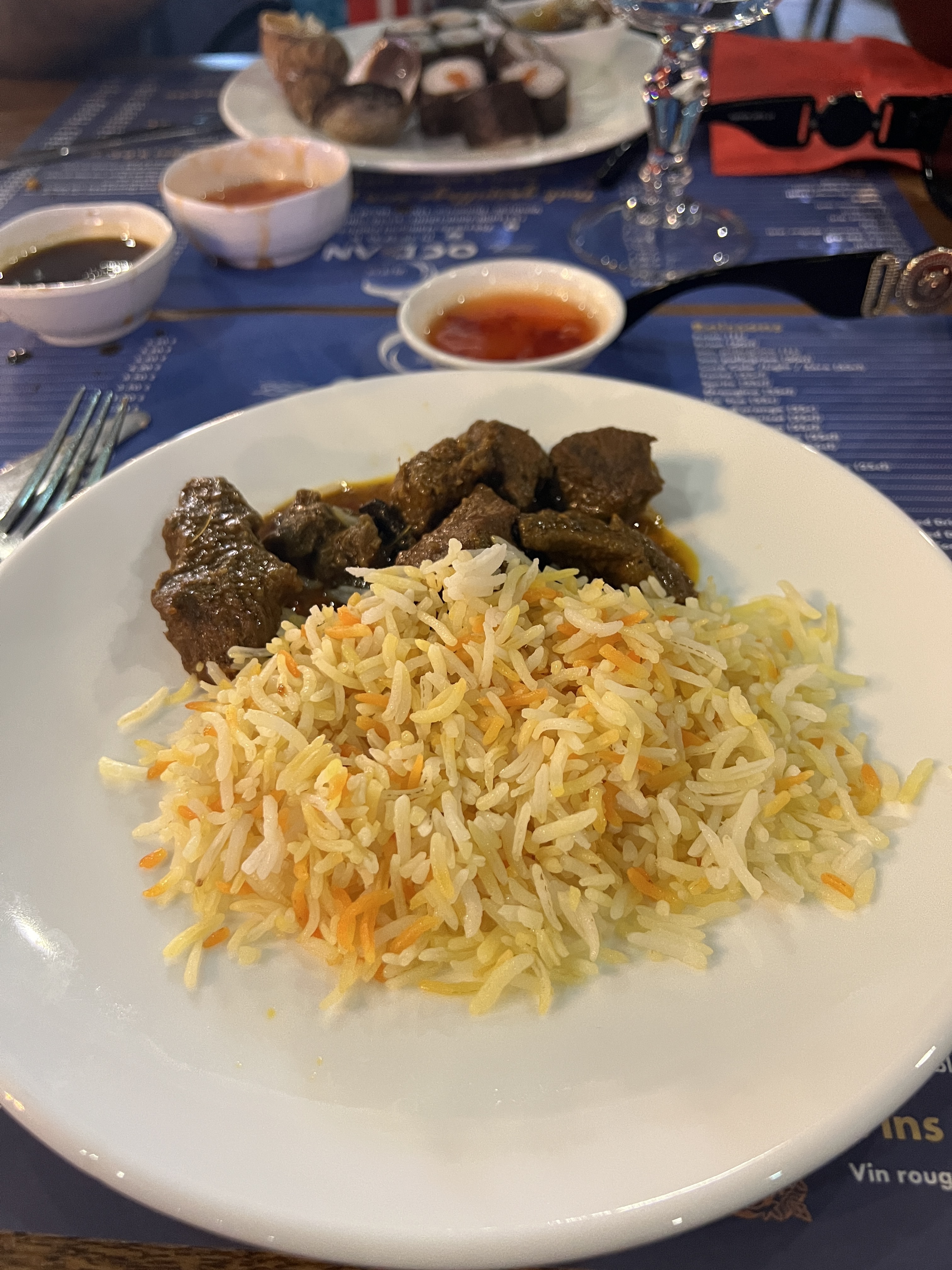 Bonne ambiance, joli restaurant, côté sushi c’est très bon et les bœufs fromages aussi, le reste manquait un peu de saveur et de chaleur. Point en plus pour les naan