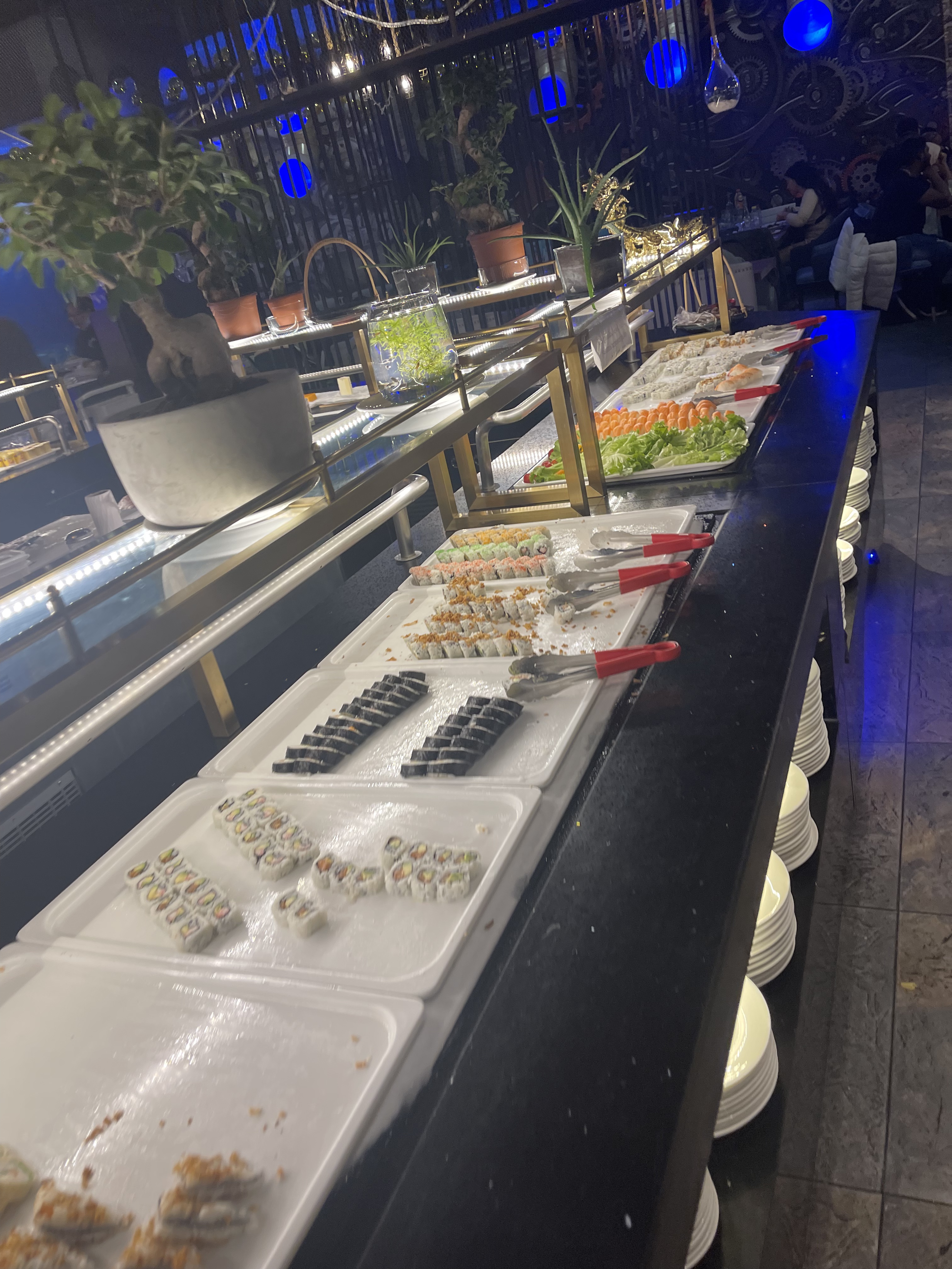 Exécrable y’avait un sushi avec du saumon pourri, l’employé qui fait les brochette nous a insulté. Aucun choix buffet à fuir !!!!