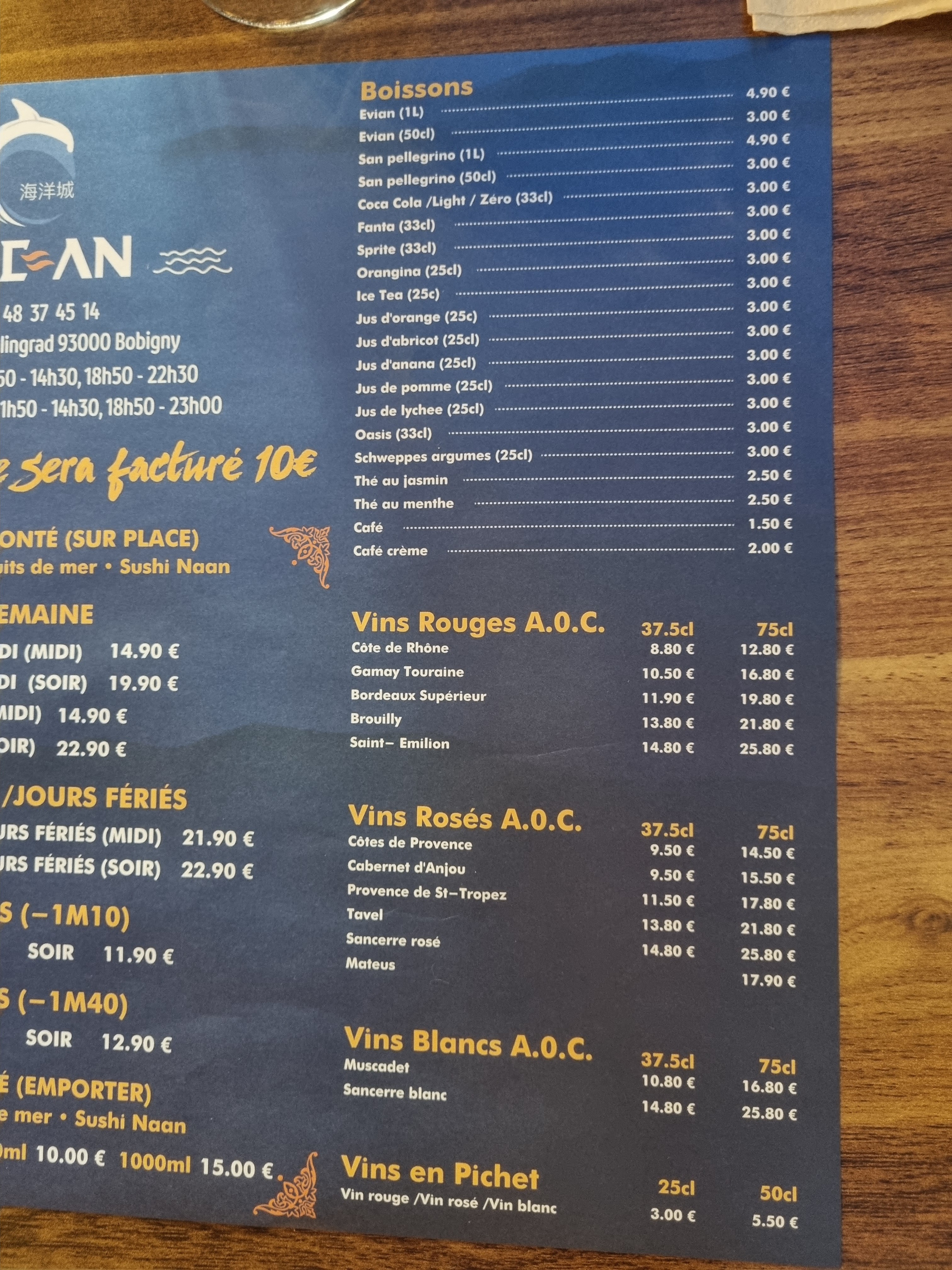 Une expérience déplorable au restaurant Wok L’Océan à Bobigny. L’hygiène est inexistante, les tables et les buffets sont sales. La qualité des produits est catastrophique : des plats tièdes, des aliments au goût douteux et visiblement pas frais. J’ai eu des nausées à peine sorti du restaurant. C’est tout simplement immangeable. À fuir absolument !