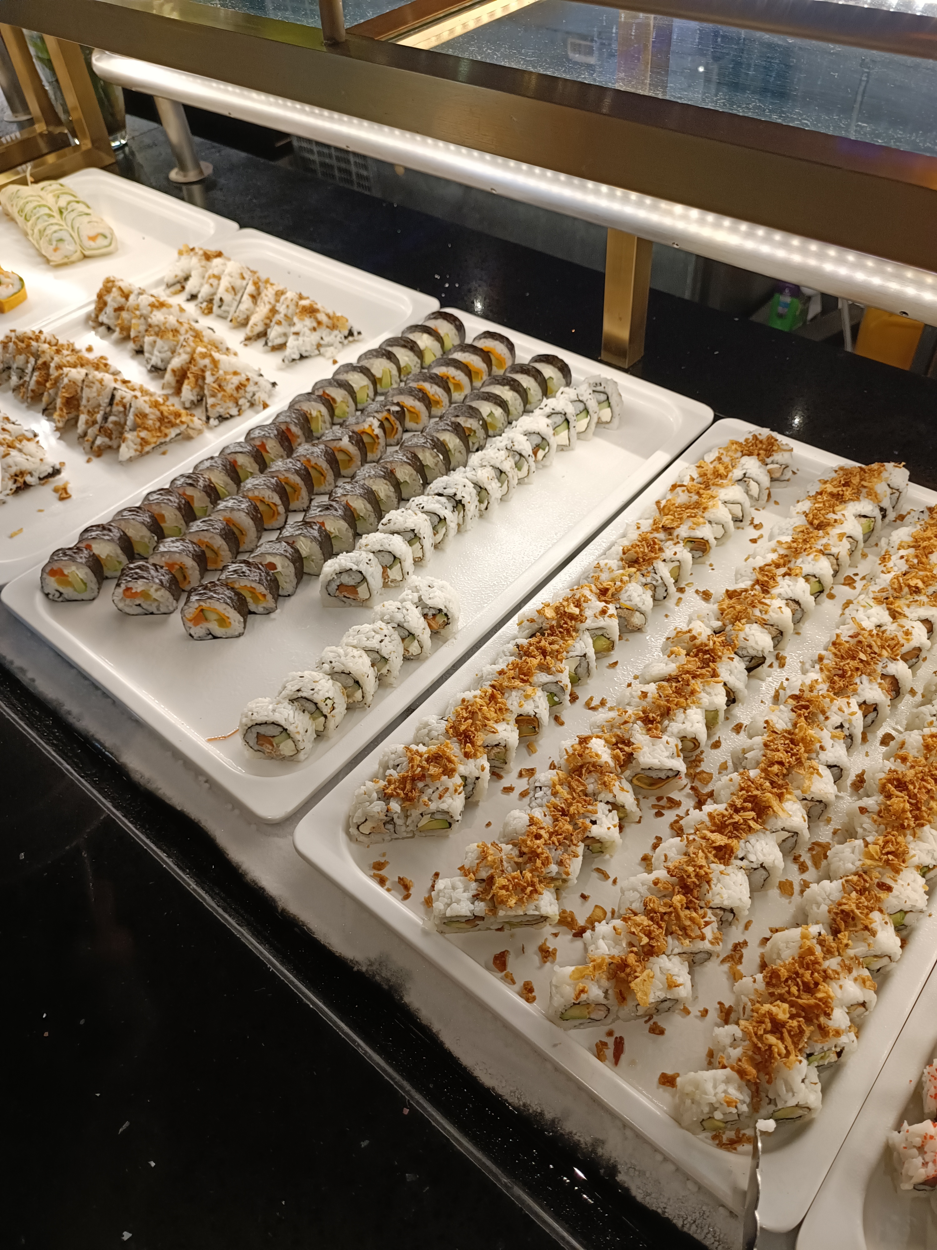 Je déconseille vivement ce restaurant. Le riz des sushis est ancien et dur, les huîtres ne sont pas fraîches, et ils ne réapprovisionnent pas les plats une fois terminés. Par exemple, les brownies, la mousse au chocolat et les macarons n’étaient plus disponibles, et aucun effort n’a été fait pour les remplacer. Une expérience décevante