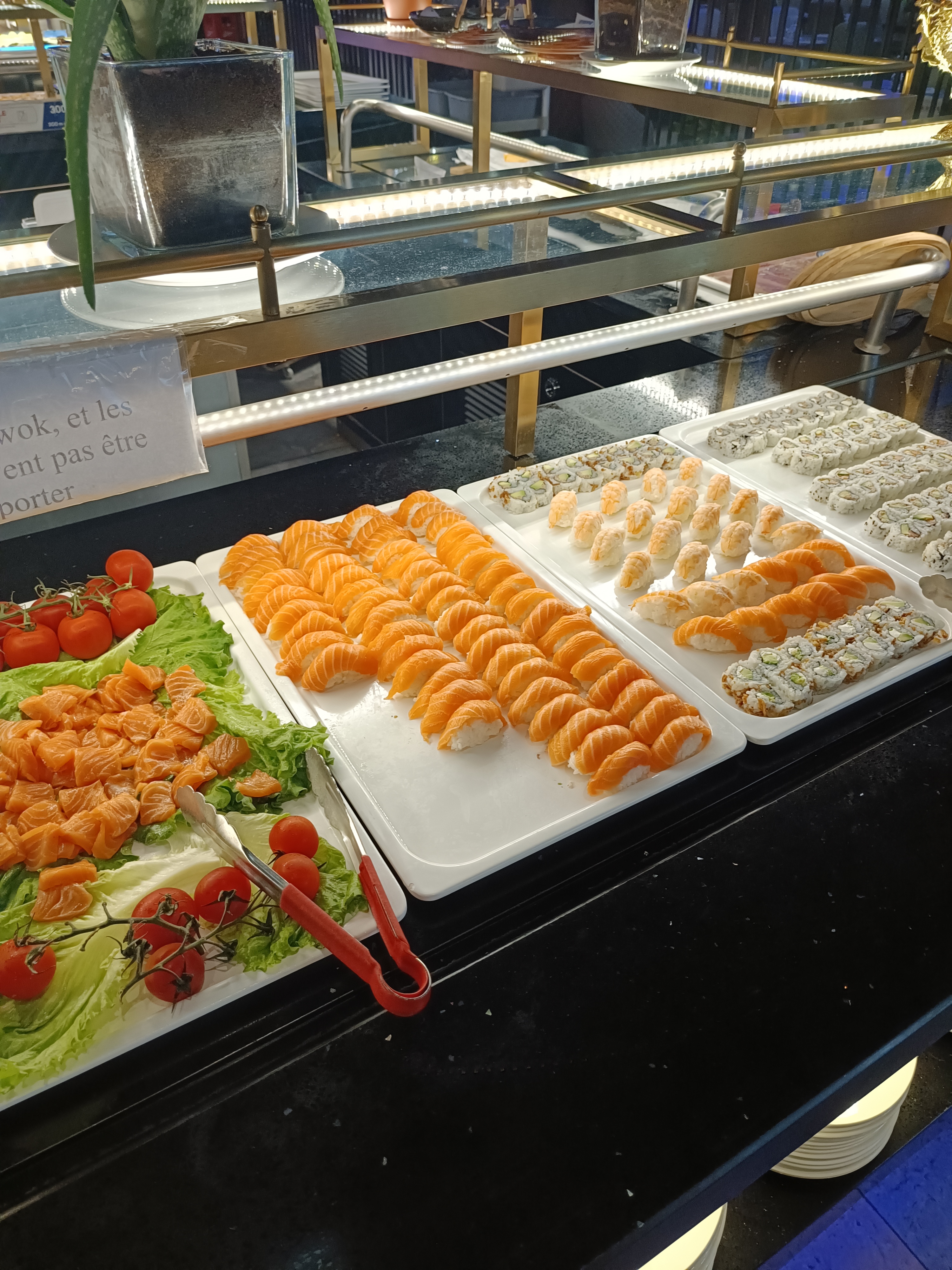 C’est vraiment parfait, le buffet est diversifié en saveurs, les sushis et les makis sont équivalent à des restaurant classique japonais, Nicolas le serveur m’a conseillé un sancerre qui était top également, on voit qu’ils ont fait attention au choix du vin également
