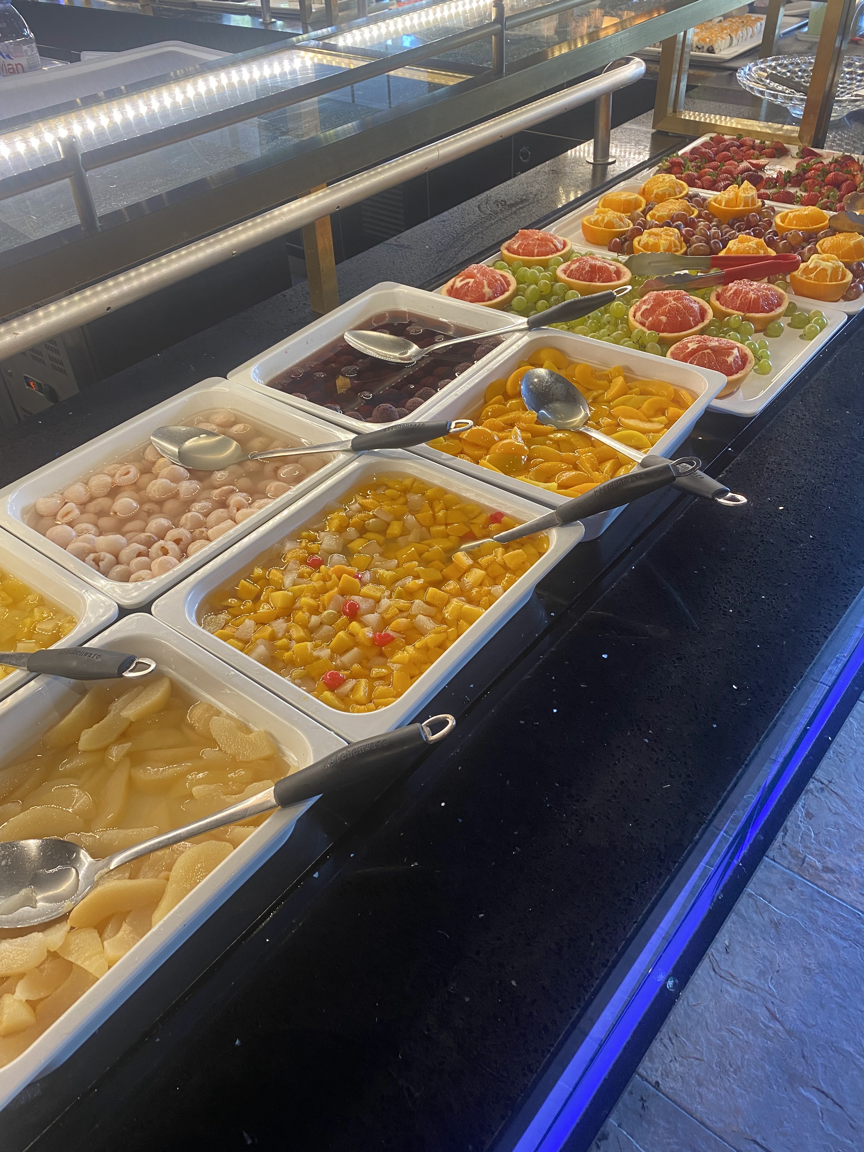 Les plats présentés sont peu par rapport au restaurant à volonté de Toulouse. Très déçu du peu de diversité des plats. Les plats sont froids, la plupart sont des produits congelés. Ananas des boites de conserve. Vraiment je ne recommande pas pour le prix. Très déçu