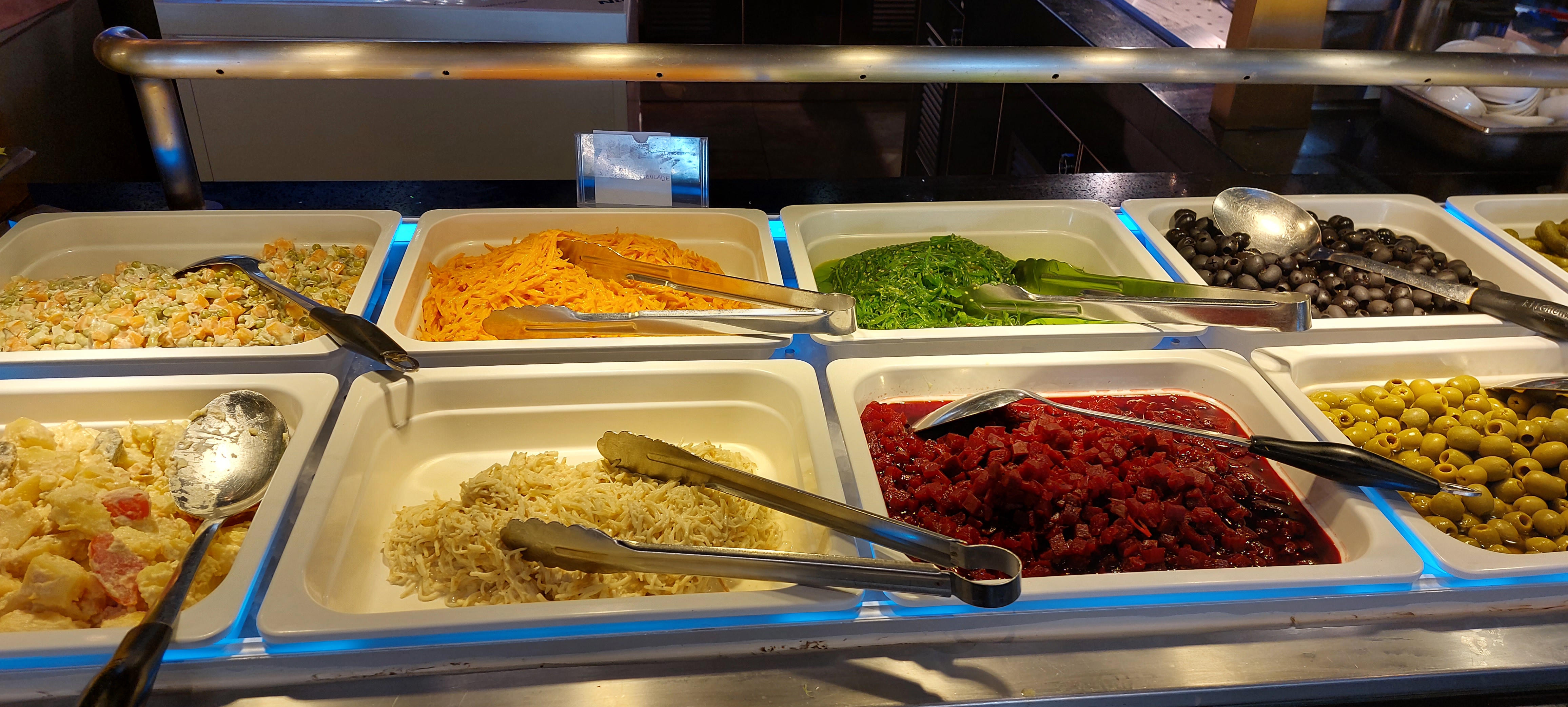 Large choix, buffet à volonté propre et bon
