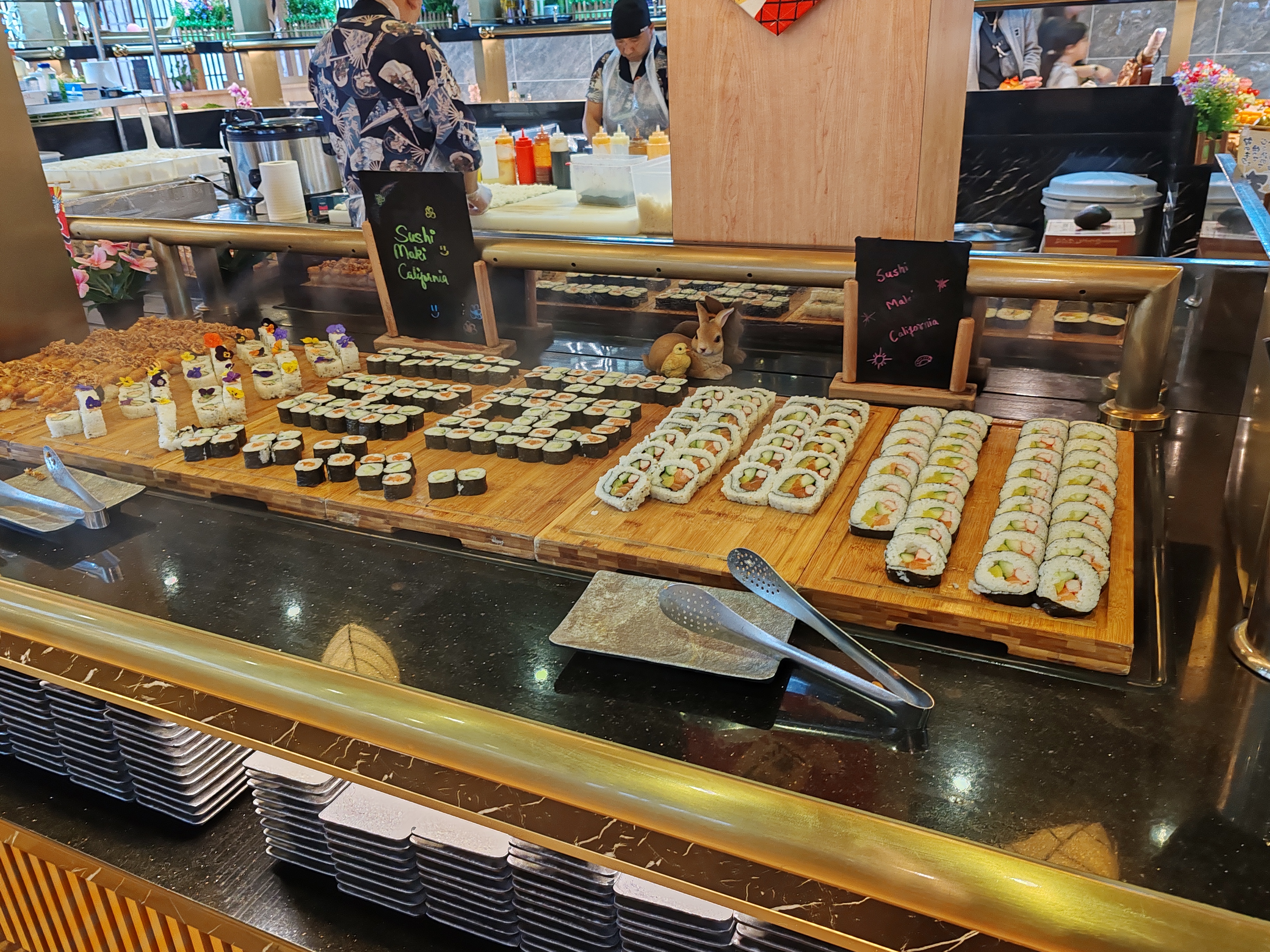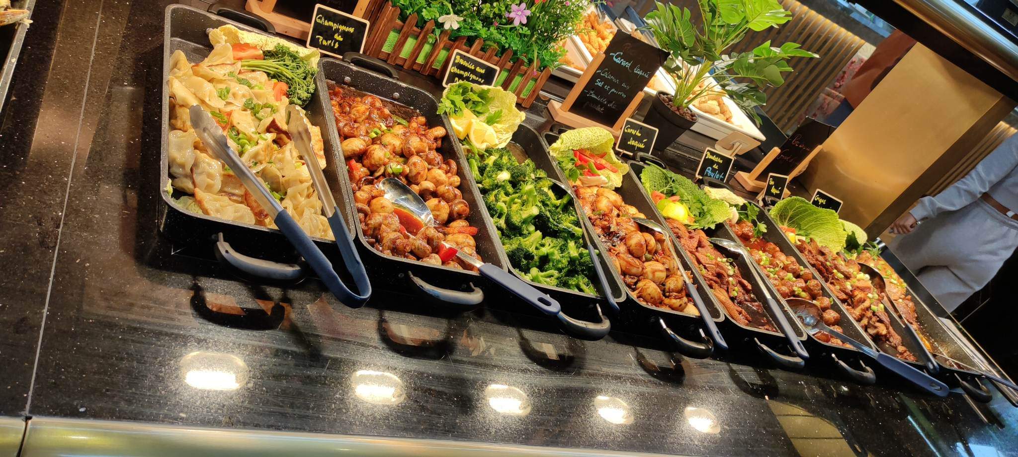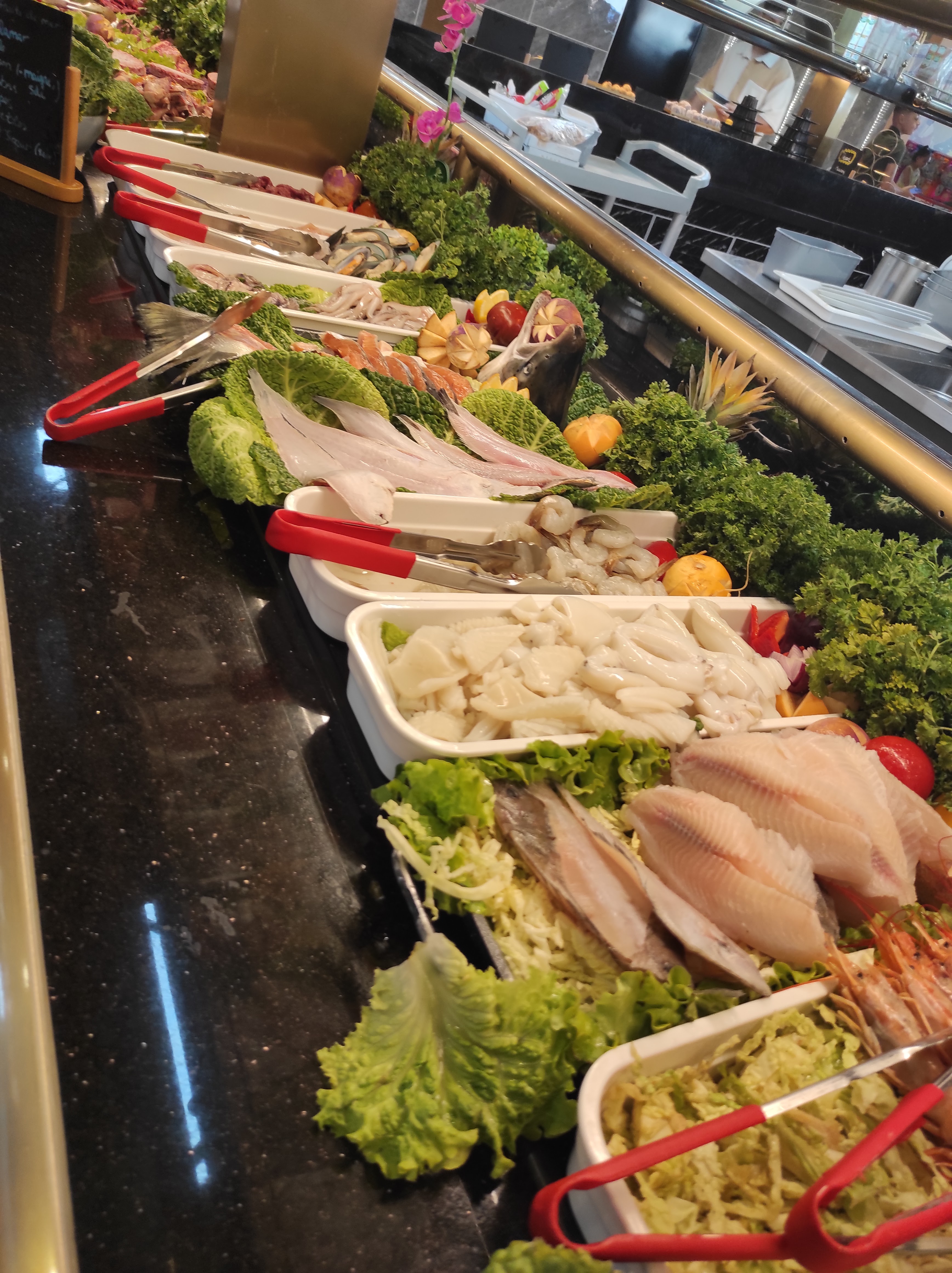 Je suis d’un avis mitigé. Il y a un immense buffet de sushis en tout genre des fruits de mer, charcuterie et salade composée tout est excellent. Une fraîcheur imbattable passins du côté des plats principaux,Ces derniers sont également très très bon. On va passez par le wok, ou un grand choix se propose . maintenant parlant des choses désagréables, il y a un immense buffet de pâtisserie qui sont à vu d’œil sont appétissant mais côté gustatives m’en pas ,ils ne sont pas bon du tout soit granules soit trois acides. Il faudrait revoir la carte des desserts et tout serait parfait. Maintenant parlons du personnel qui n’est pas souriant, ni avenant envers la clientèle.
