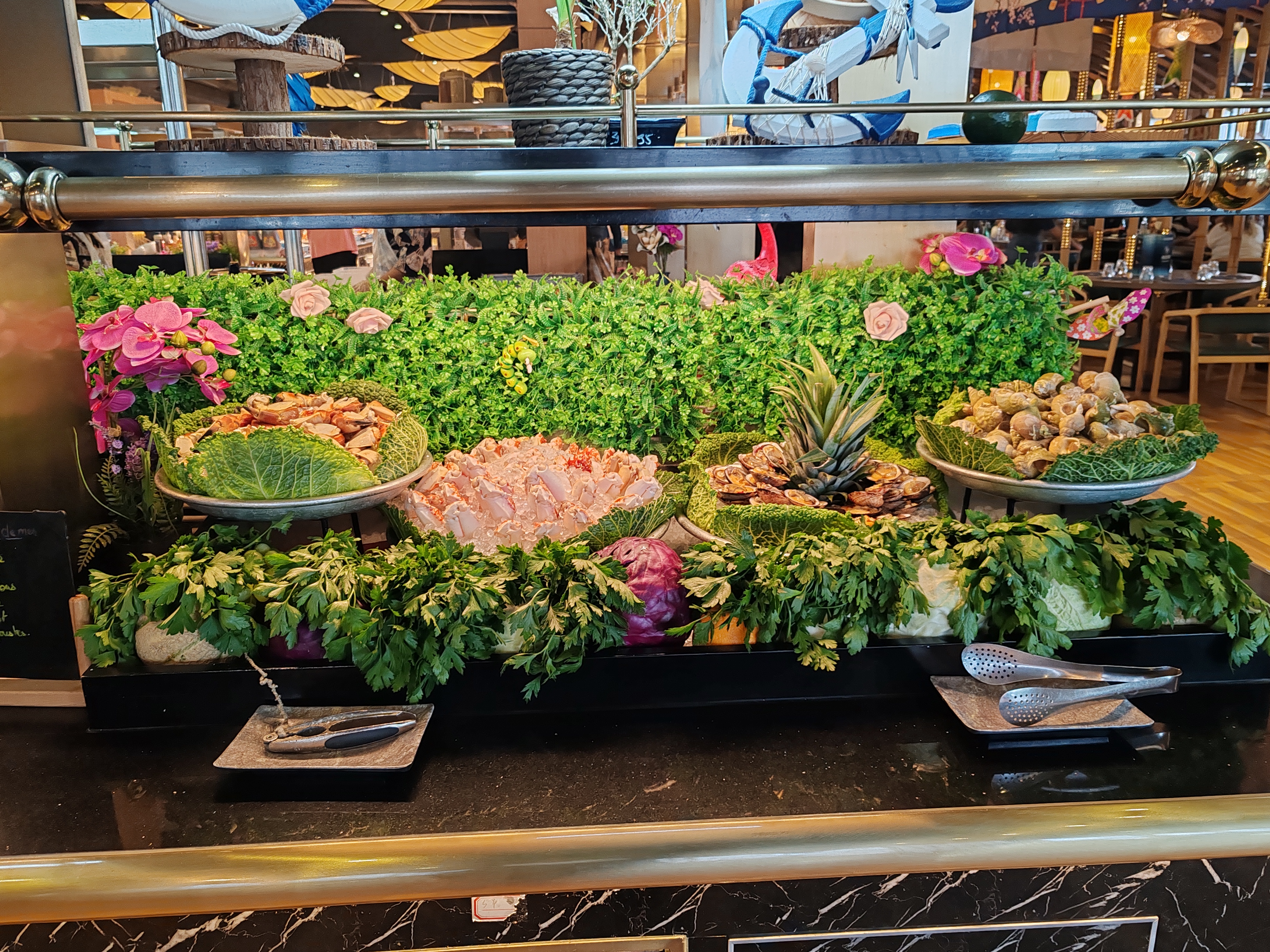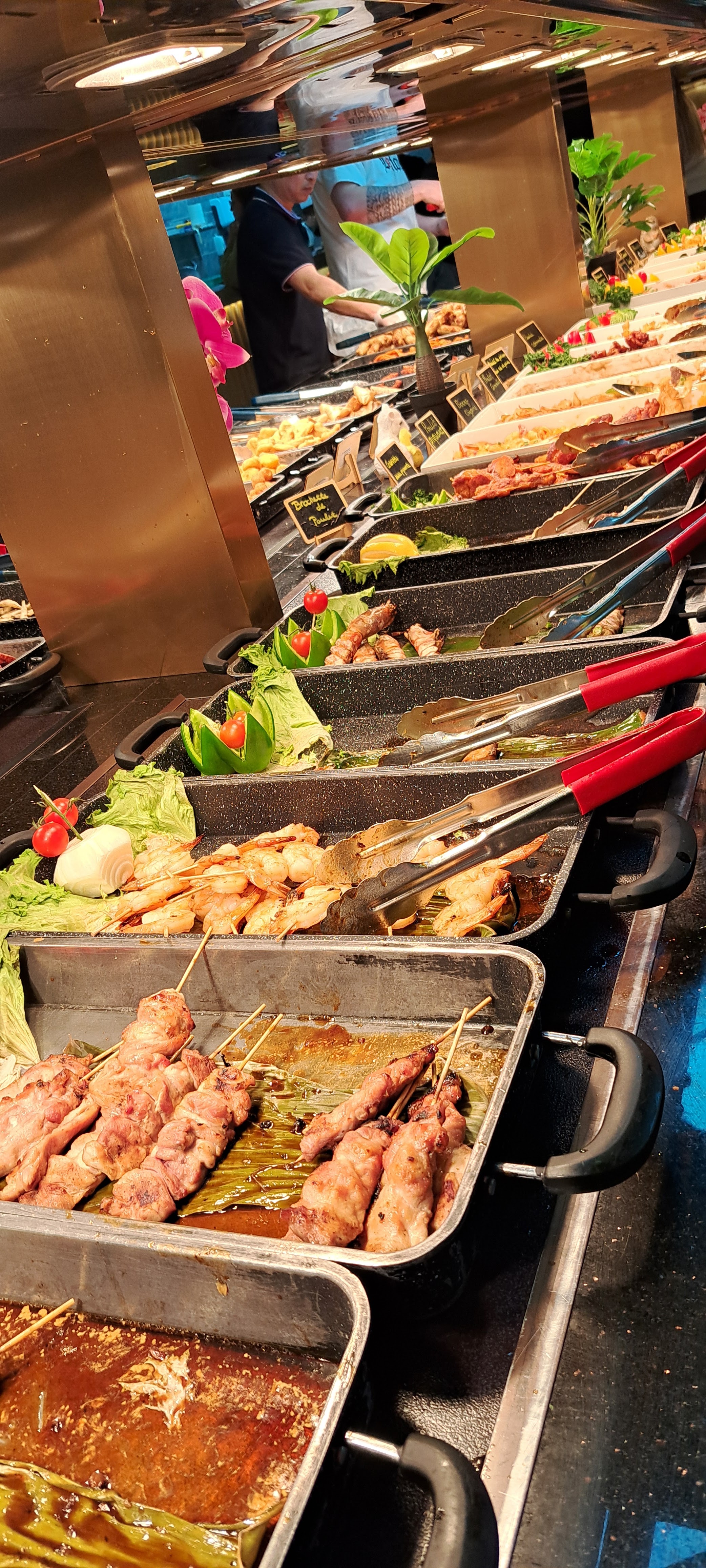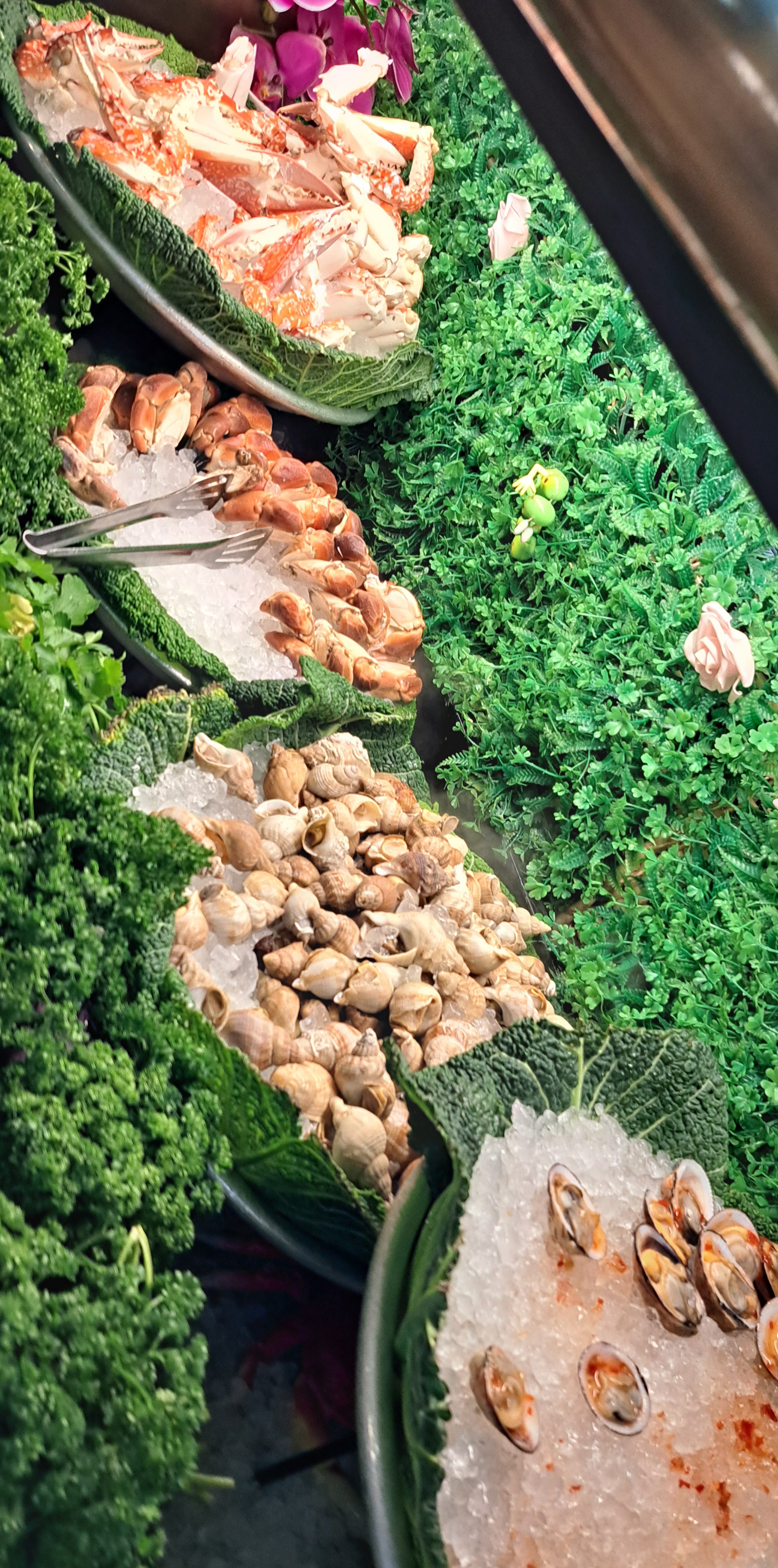 Je suis d’un avis mitigé. Il y a un immense buffet de sushis en tout genre des fruits de mer, charcuterie et salade composée tout est excellent. Une fraîcheur imbattable passins du côté des plats principaux,Ces derniers sont également très très bon. On va passez par le wok, ou un grand choix se propose . maintenant parlant des choses désagréables, il y a un immense buffet de pâtisserie qui sont à vu d’œil sont appétissant mais côté gustatives m’en pas ,ils ne sont pas bon du tout soit granules soit trois acides. Il faudrait revoir la carte des desserts et tout serait parfait. Maintenant parlons du personnel qui n’est pas souriant, ni avenant envers la clientèle.