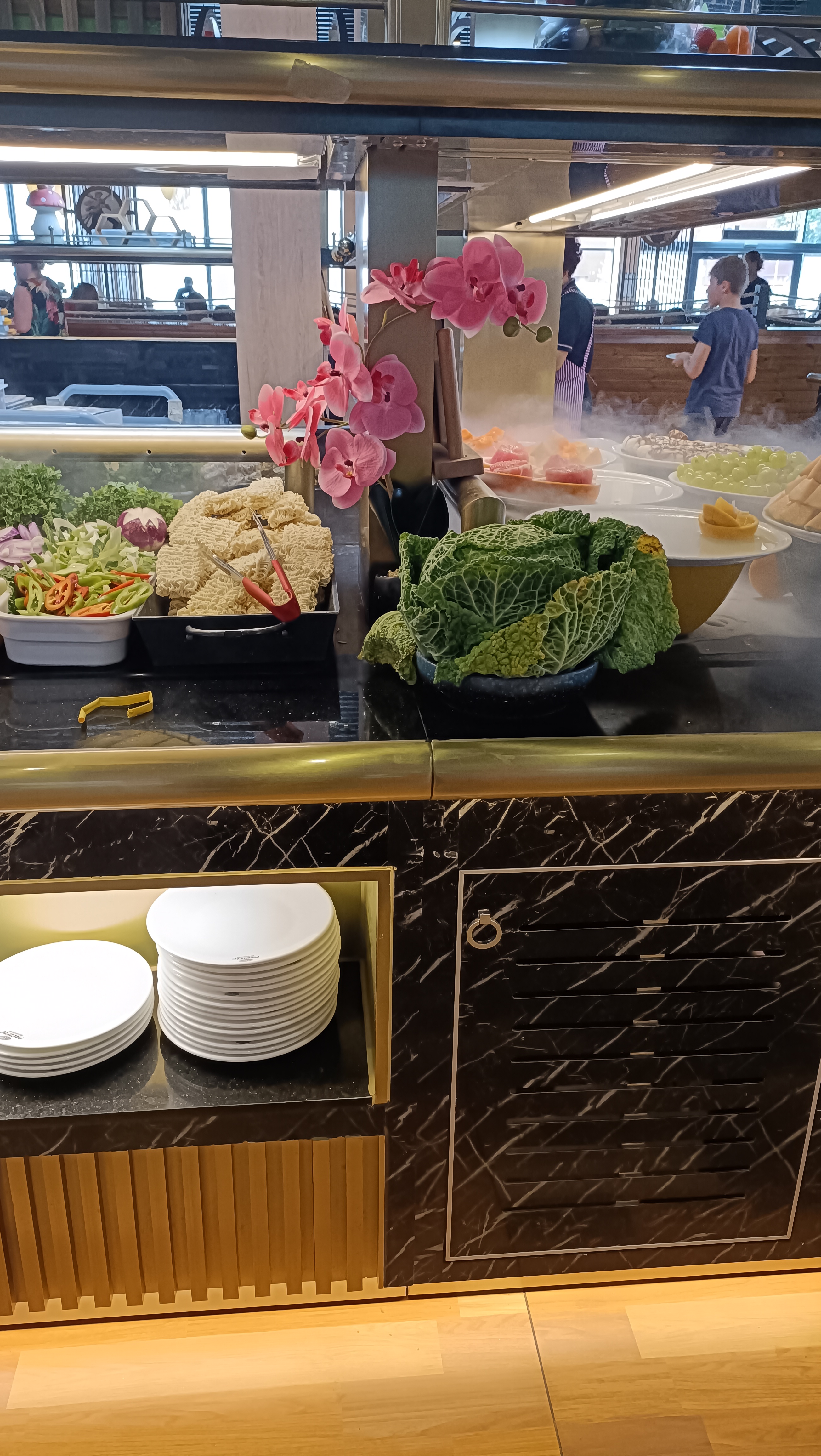 Endroit très propre, large de choix. Très chic et très bon. Cependant veuillez à etiquettez chaque compartiment car la plupart on demander ce que c'était... et gaspillage interdit donc attention . ( supplément) .. Au Lotus bleu il n'y a pas ce soucis donc plus de liberté pour goûter.. Cela ne m'empêchera pas de revenir ☺️