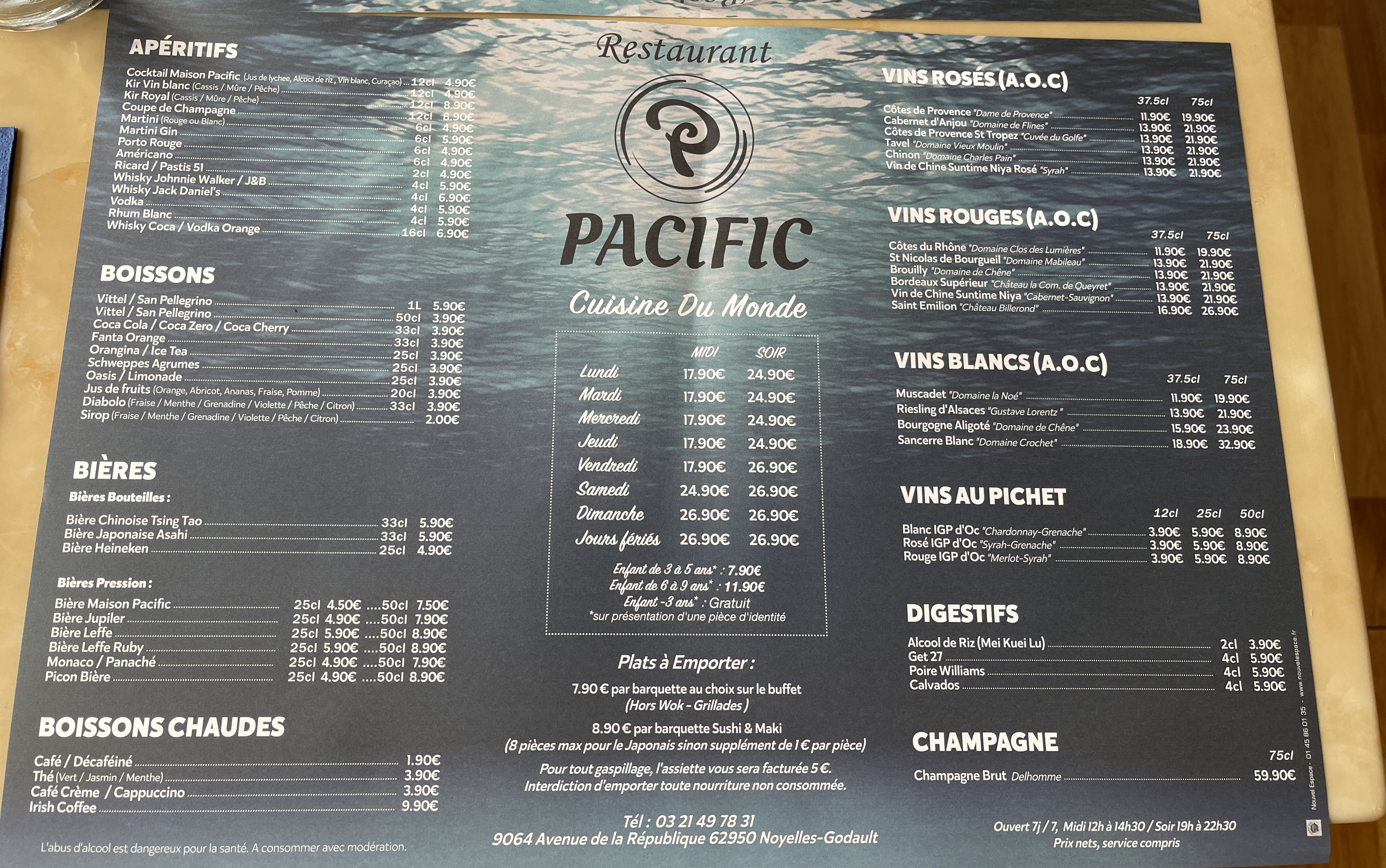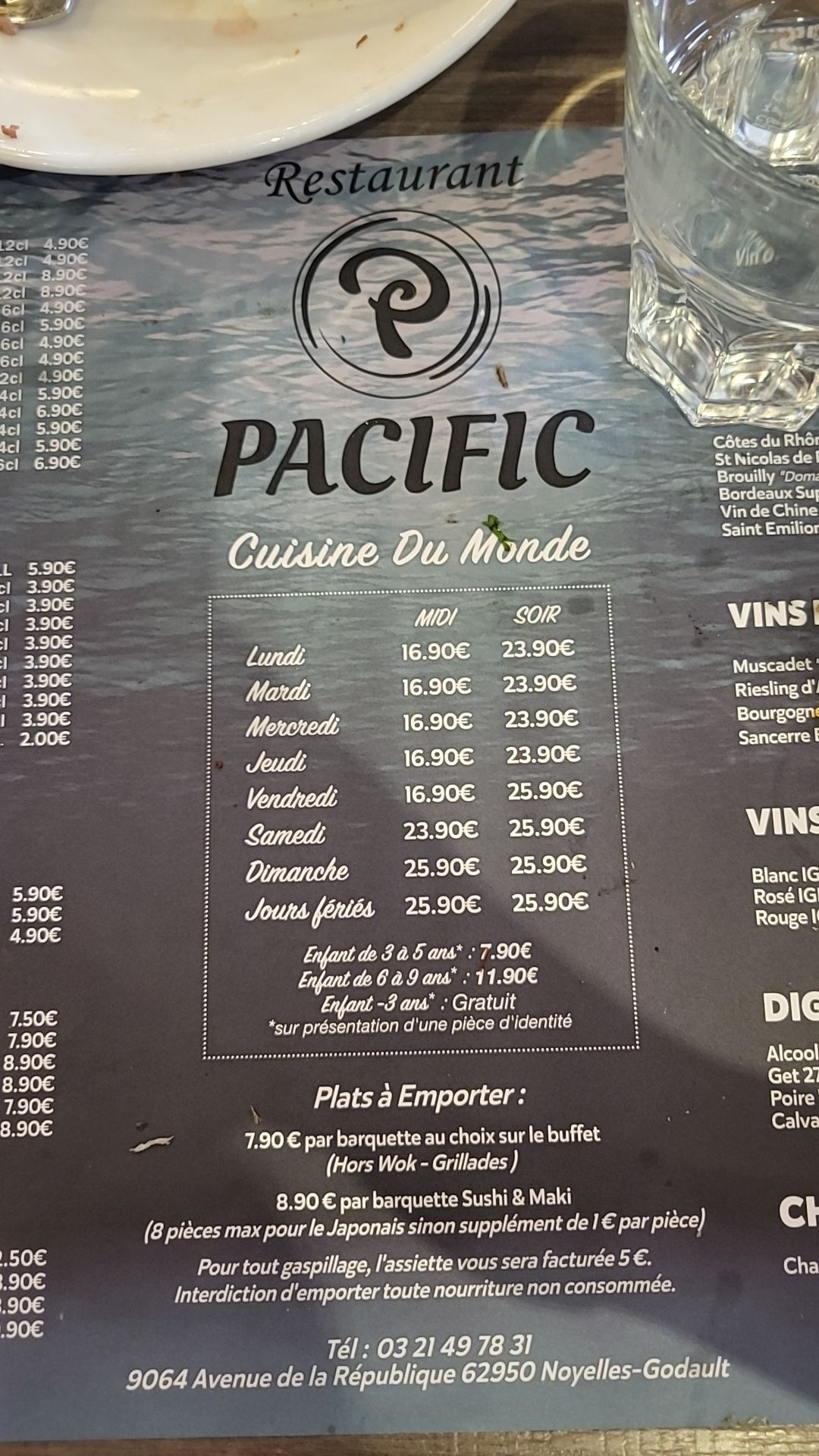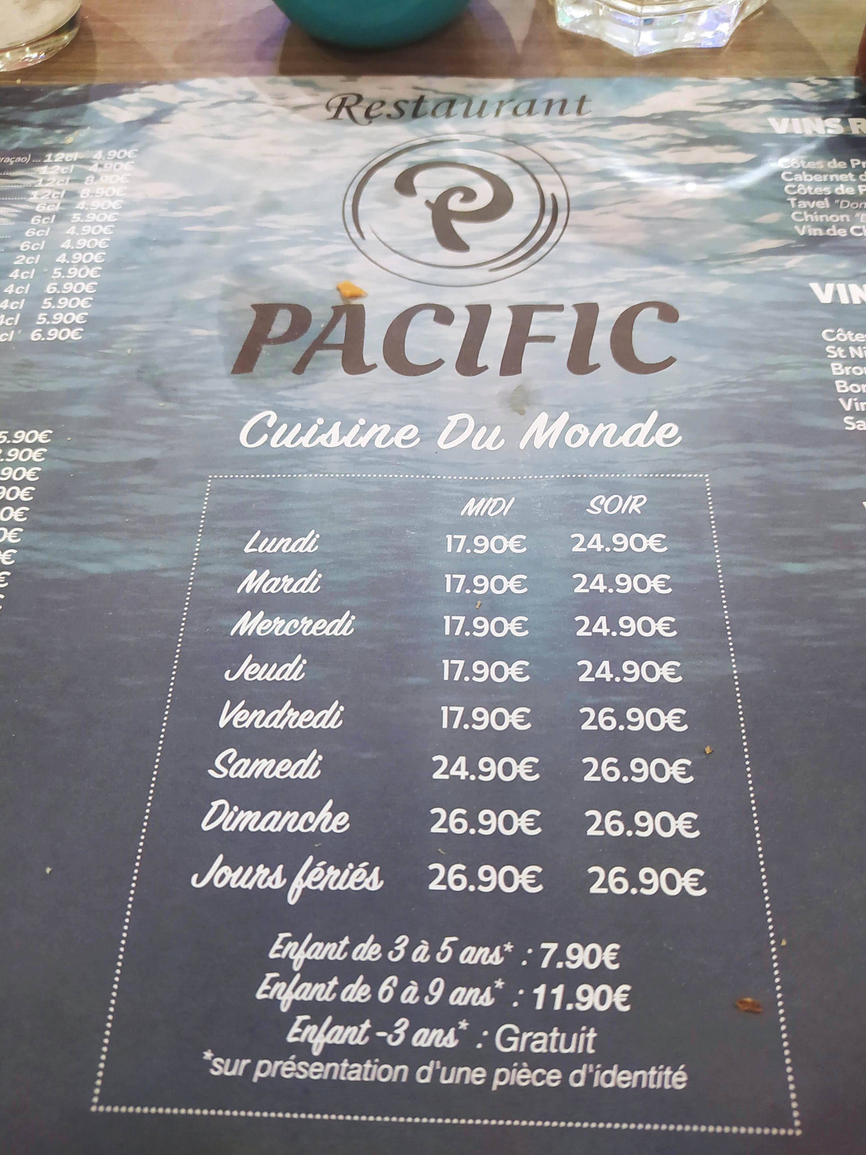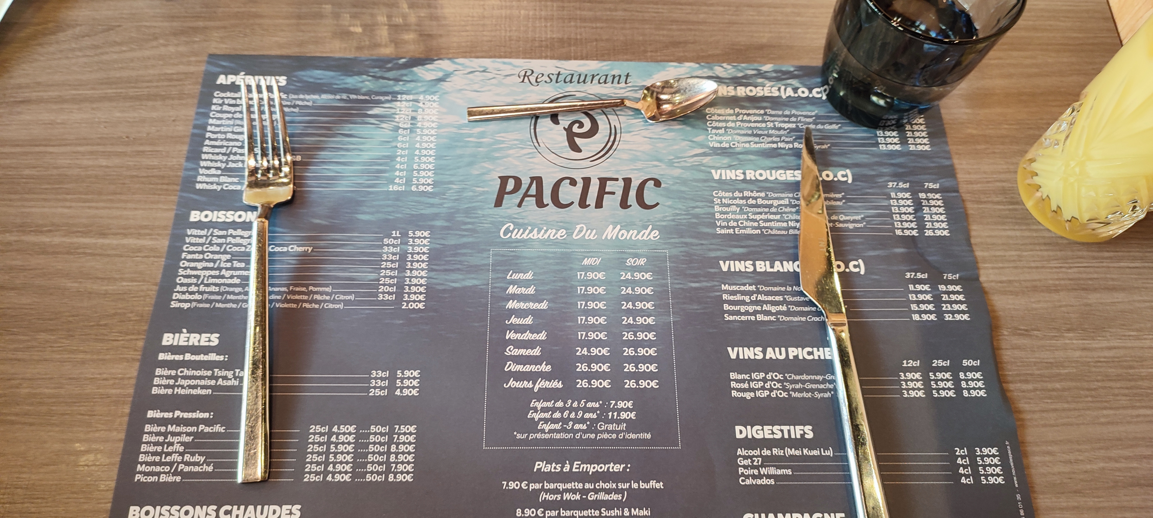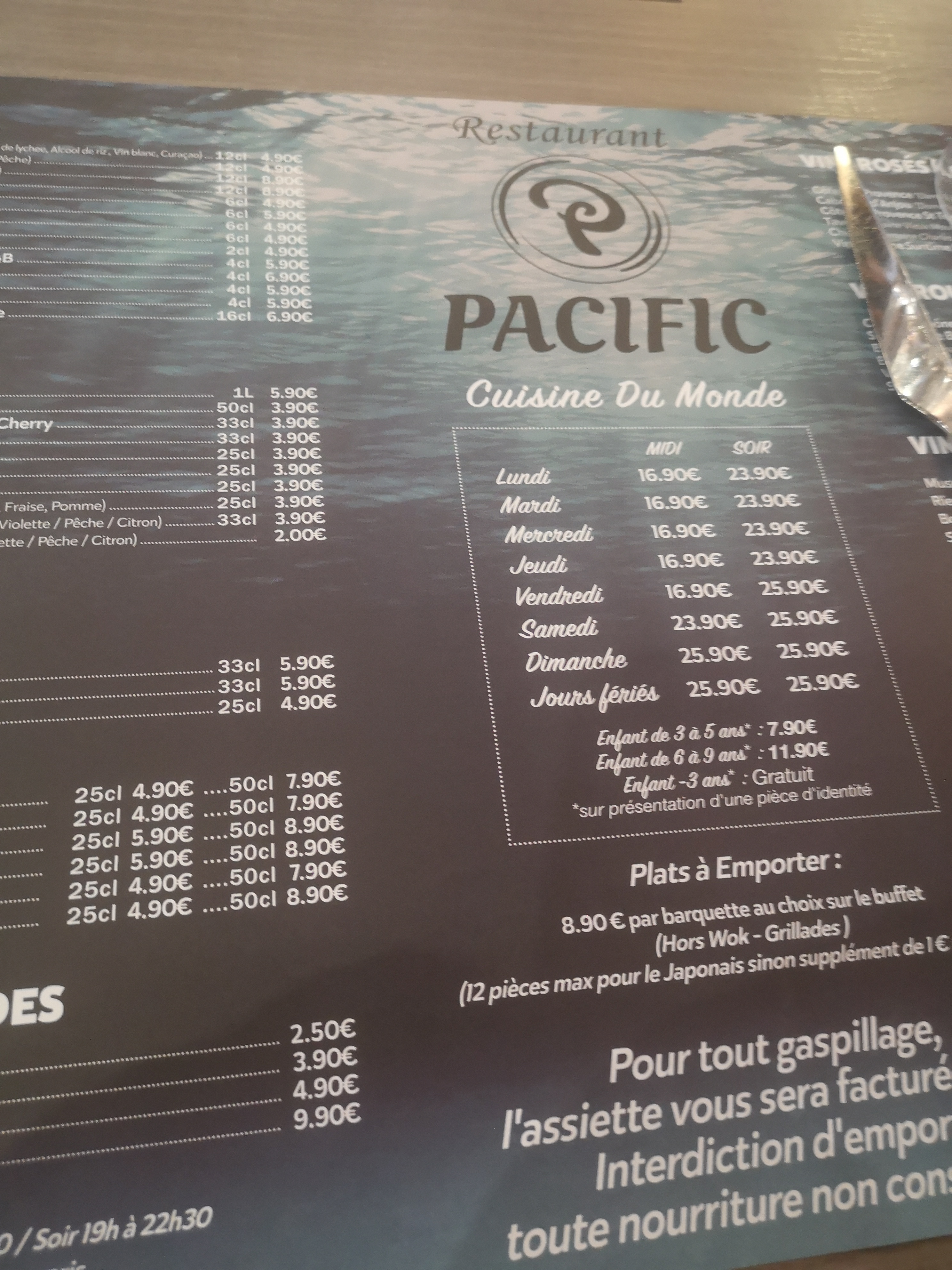 Restaurant Pacific un Océan de Mets à Volonté. En quelques mots du choix. Un buffet approvisionné couramment, qualité et quantité au rendez vous. Un lieu à visiter uniquement pour les gourmands.