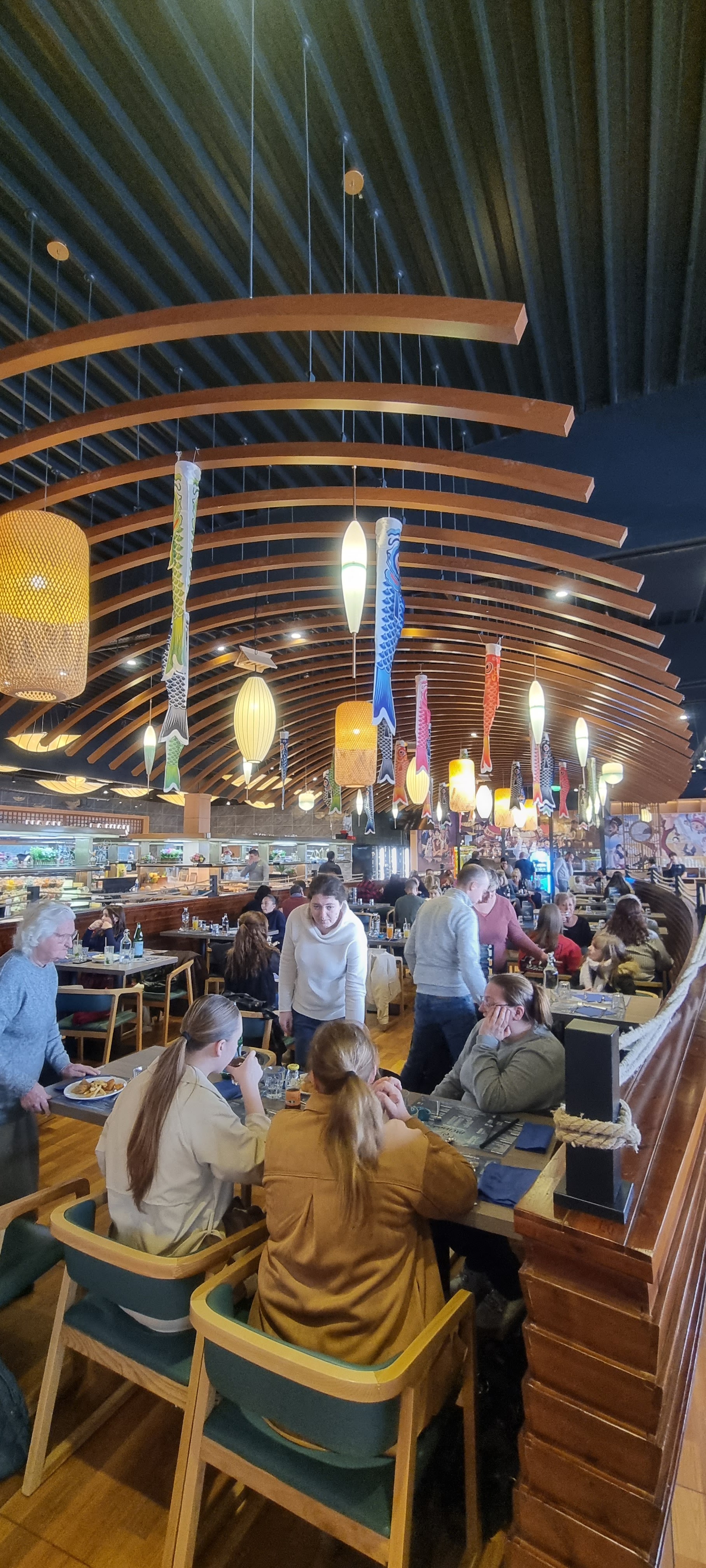 Buffet à volonté XXL ! Si vous aimez avoir le choix, vous serez ravis ! Pour en avoir testé 5/6 c'est le plus grand jusqu'à présent ! - 🍙Maki et sushis de toutes sortes, bons et bien faits ! - 🎣 Large choix de poissons et crustacés (cru ou cuits) - 🍰🍬le plus grand coin dessert que j'ai jamais vu, gâteaux très bons -Naan, Cheese naan (indien) et crêpes sucrées faites maisons, du jamais vu en restaurant asiatique. - 🌾 Nouilles de blé ET de riz ! top pour les personnes intolérantes au gluten ! - Du choix en plat cuisinés, en salades froides, en tout en fait 😂 Je me suis régalée, la décoration très bien réalisée avec beaucoup de goût, des coins cabane un peu excentré de chaque côté, pour plus d'intimité qui ont l'air top ! Quelques bémols tout de même : - Il manque des panneaux sur certains plats donc on ne sait pas trop ce que c'est - Les jeux enfants qui ont l'air tous payant ? ça manque d'un parcours avec des toboggans etc - Les tables vraiment trop serrées ! j'ai eu l'impression de manger avec le bébé de la voisine de table ce soir !! - Les chauffe plats un peu plus chaud, car le temps de faire le tour de l'immense buffet et de se rasseoir, c'est tiède. Si vous aimez manger de tout, de goûter à tout, n'hésitez pas, après vous n'êtes pas dans un restaurant fait maison, comme dans tout les buffets asiatique donc oui il y a du surgelé etc, ca peut être bruyant, surtout le week-end je suppose, déjà un mercredi soir, énormément de monde ! Oui certains plats partent vite, mais laissez leur le temps d'en remettre !
