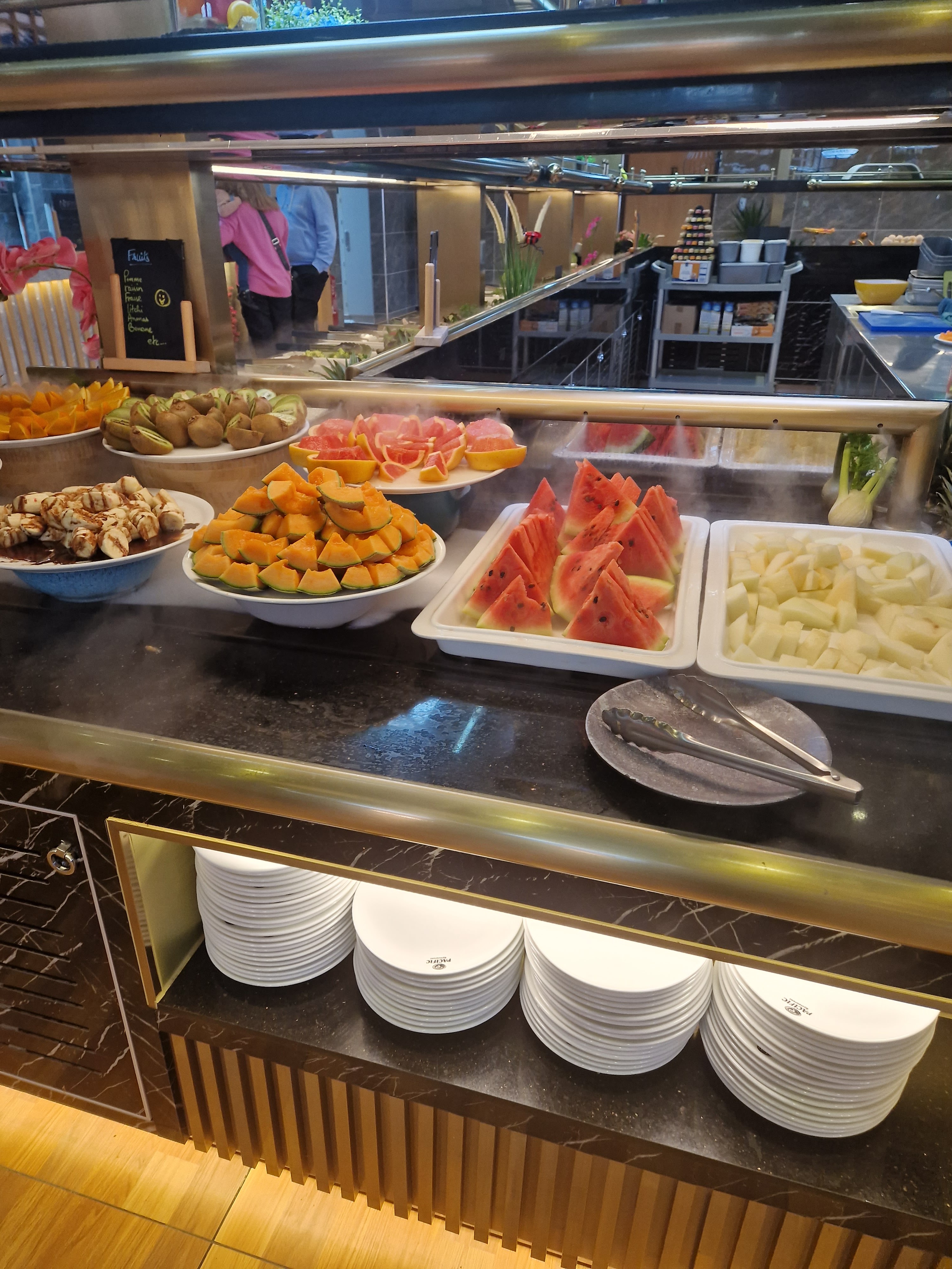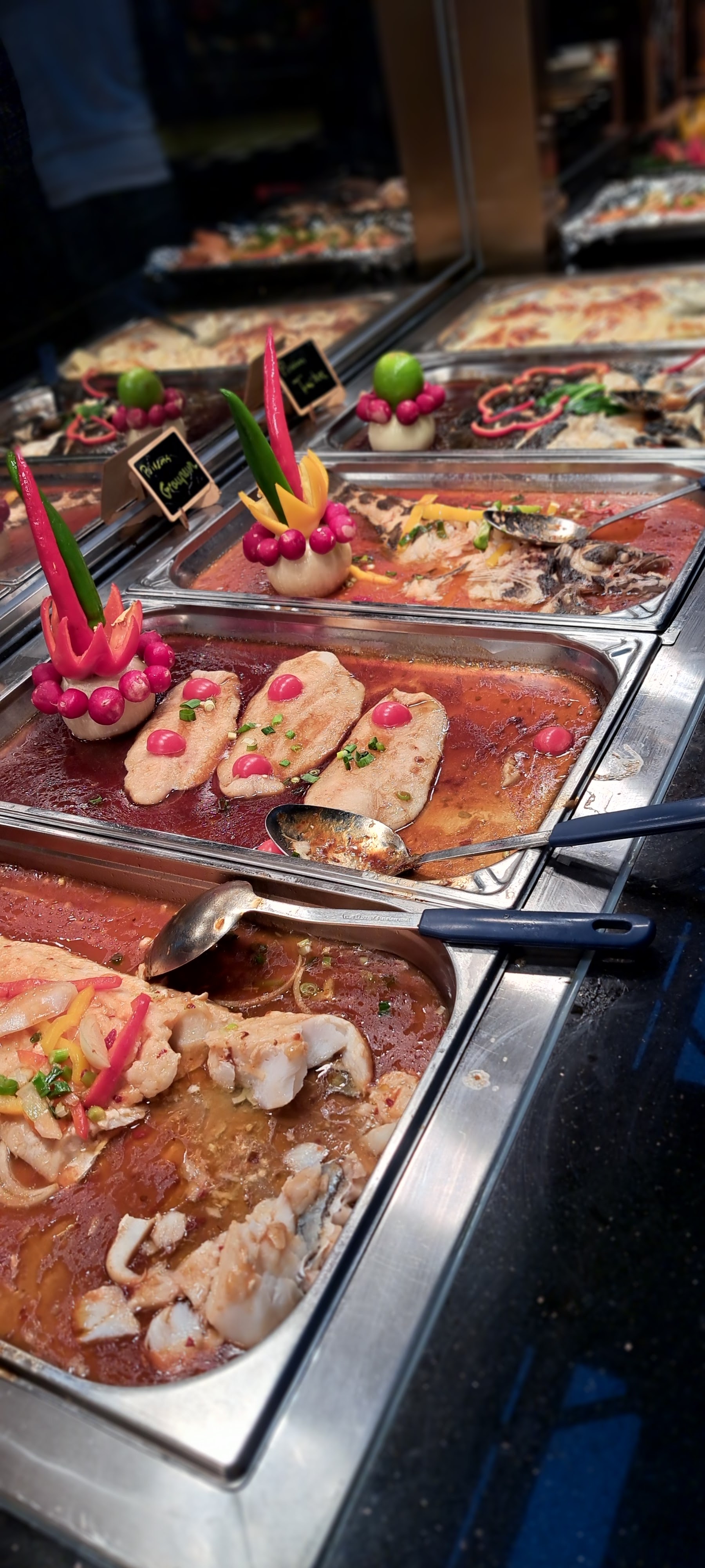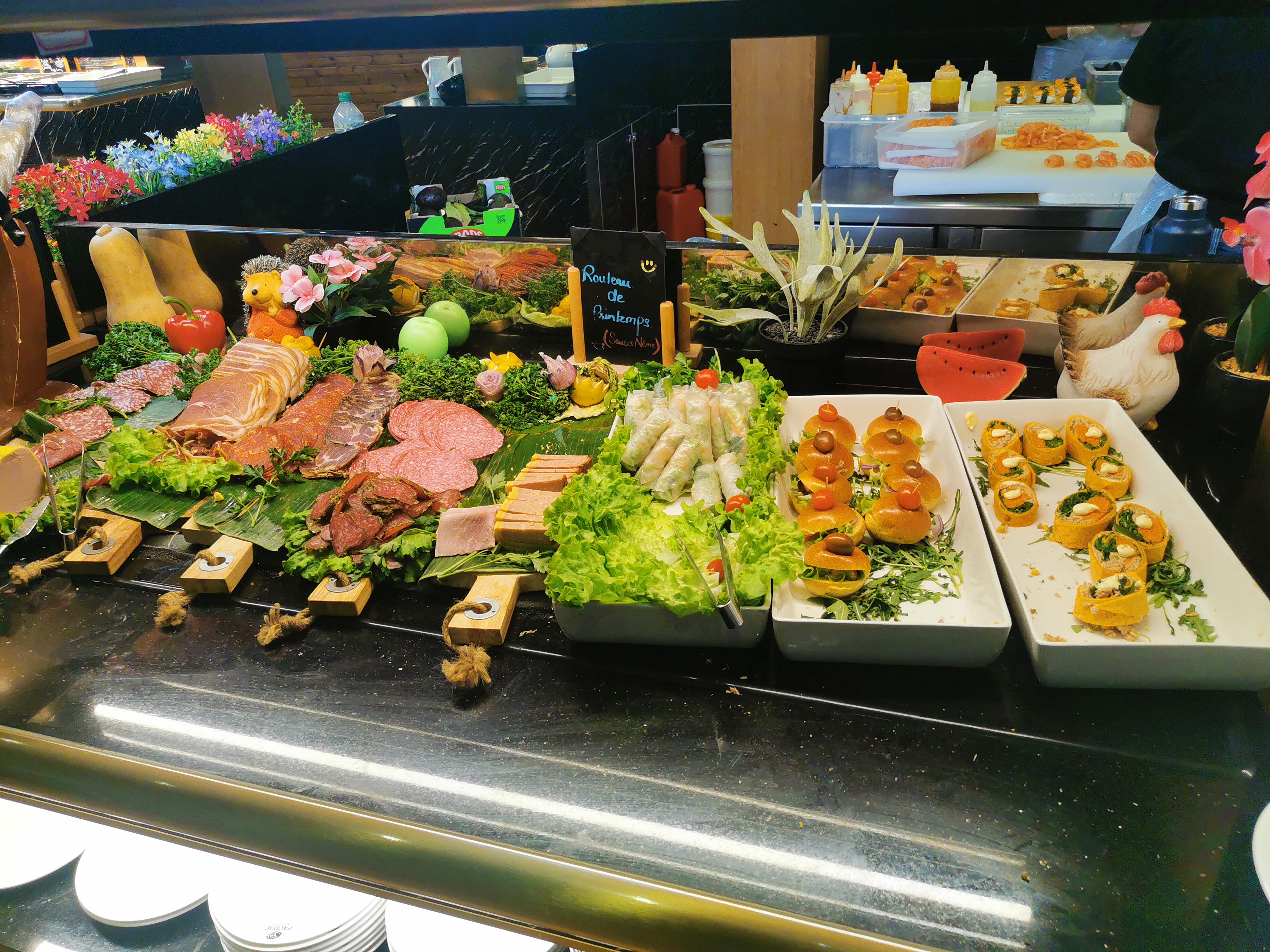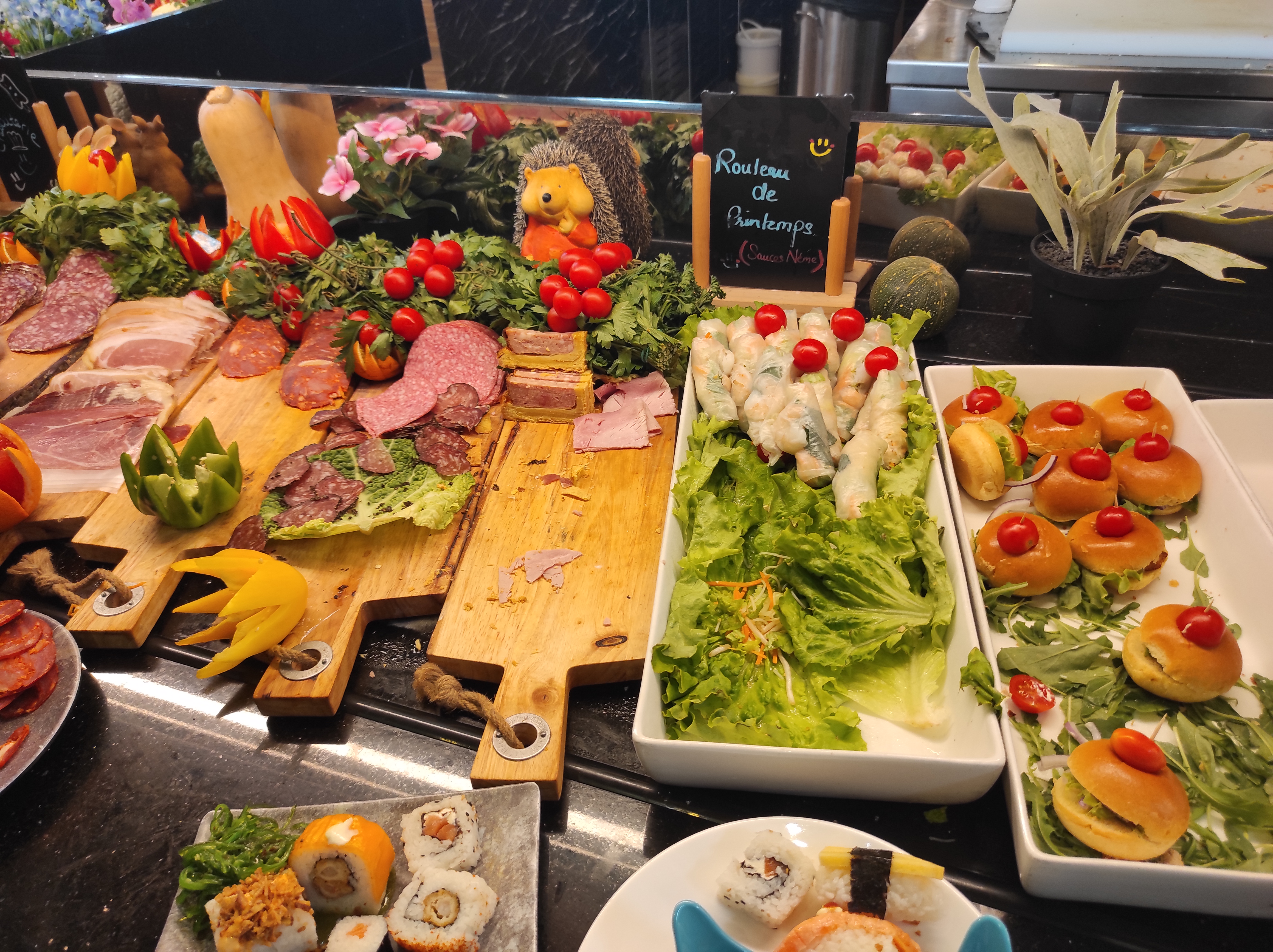 Grande variété de buffets réapprovisionnés au fur et à mesure. Beaucoup de choix . Le visuel est aussi très agréable à regarder. Un personnel très serviable et souriant. Les produits sont de qualité.
