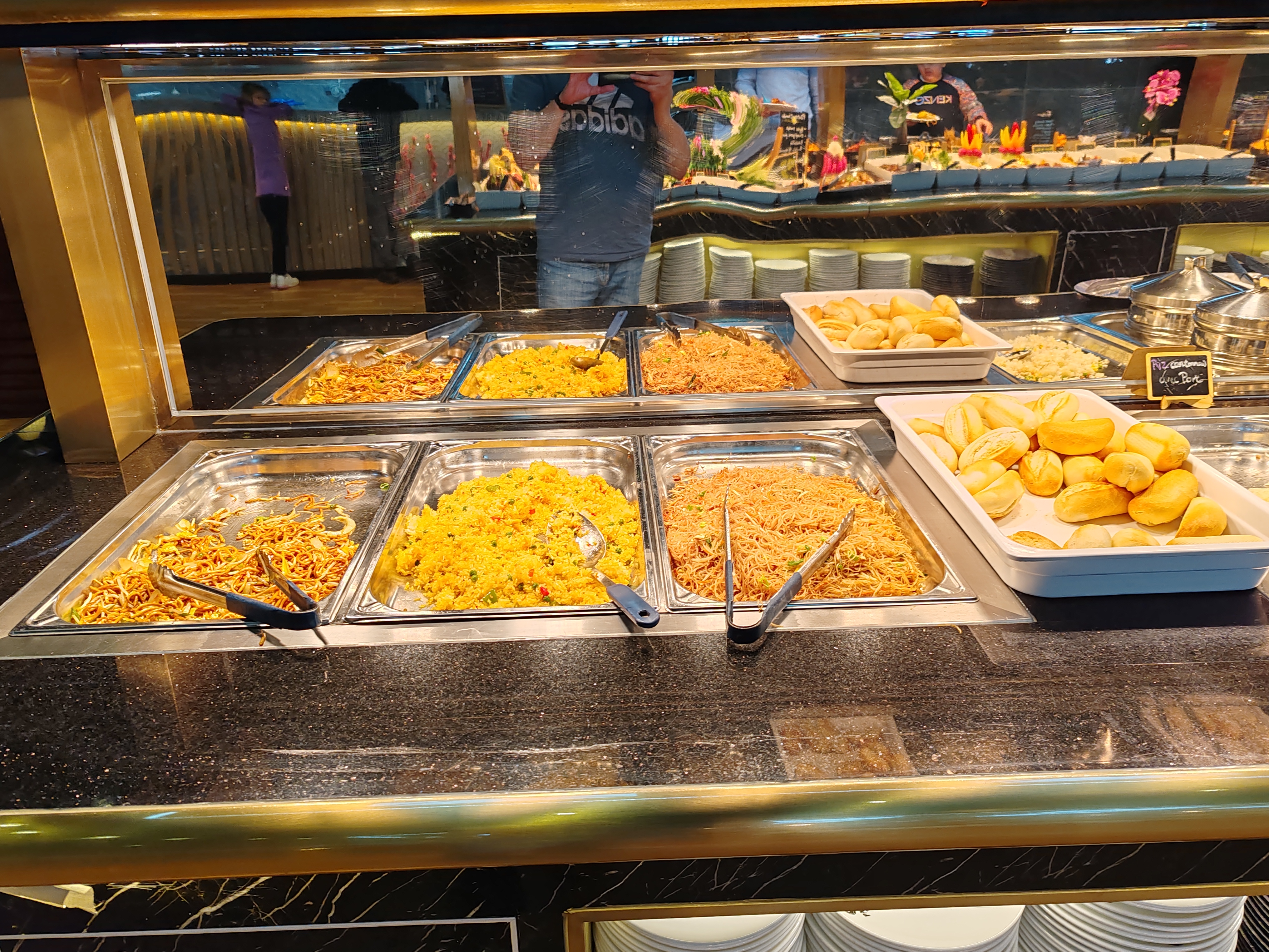 Très difficile de trouver mieux, waw énorme choix , rien a voir avec la concurrence autour , vous pouvez déguster du bar du turbo et d autres poissons aussi excellent , des nann maison cuit dans un four traditionnel devant vous , un large choix de dessert ,et des crêpes cuites a la demande face a vous , je recommande fortement